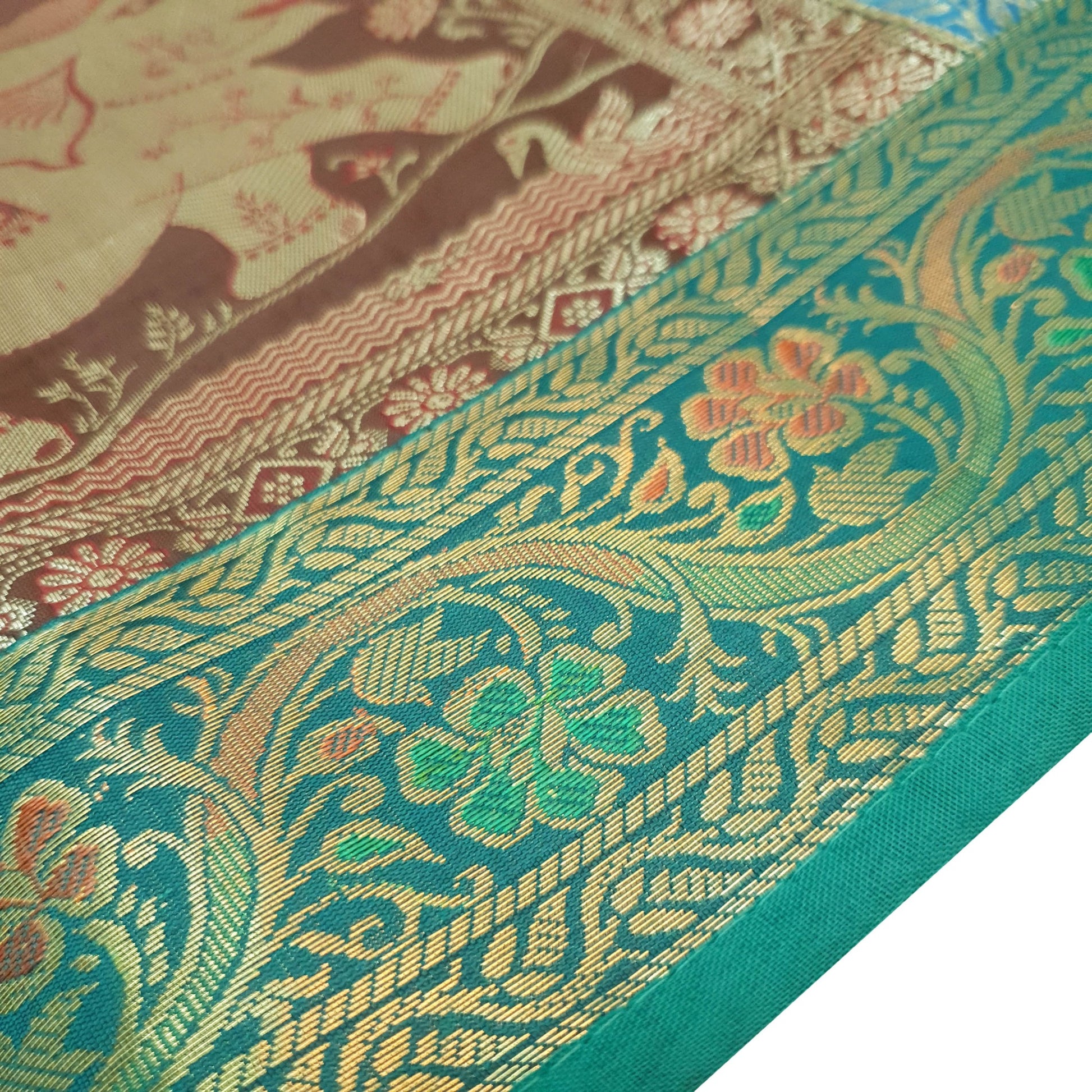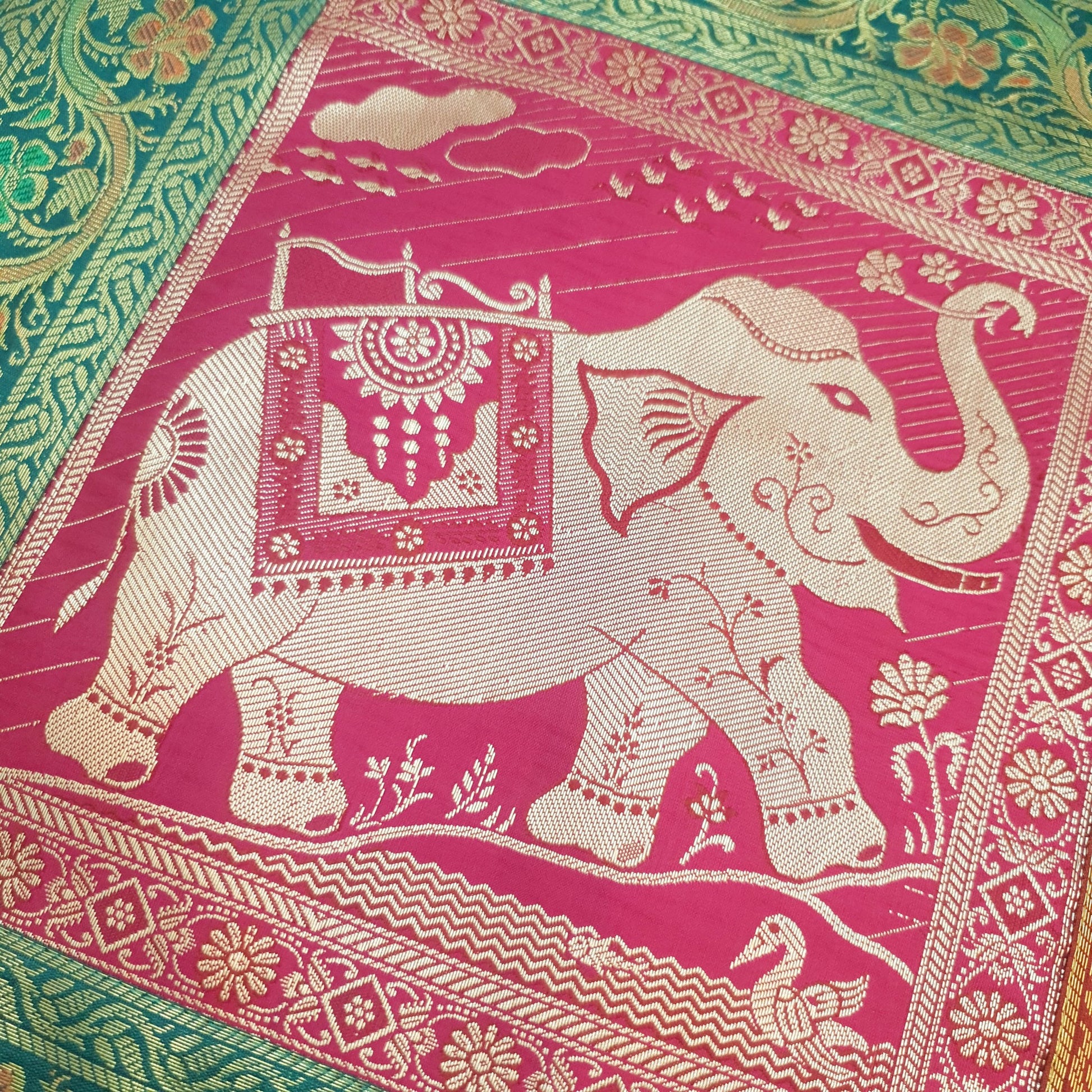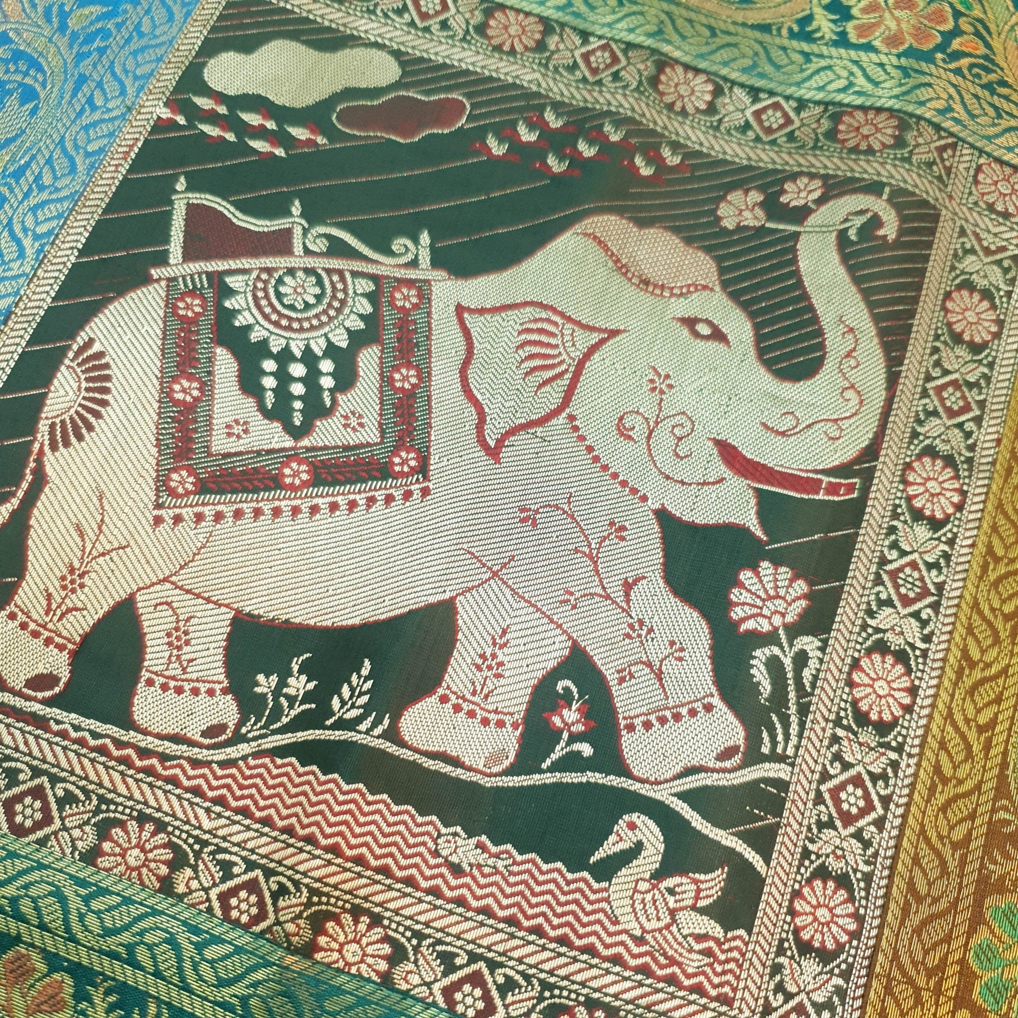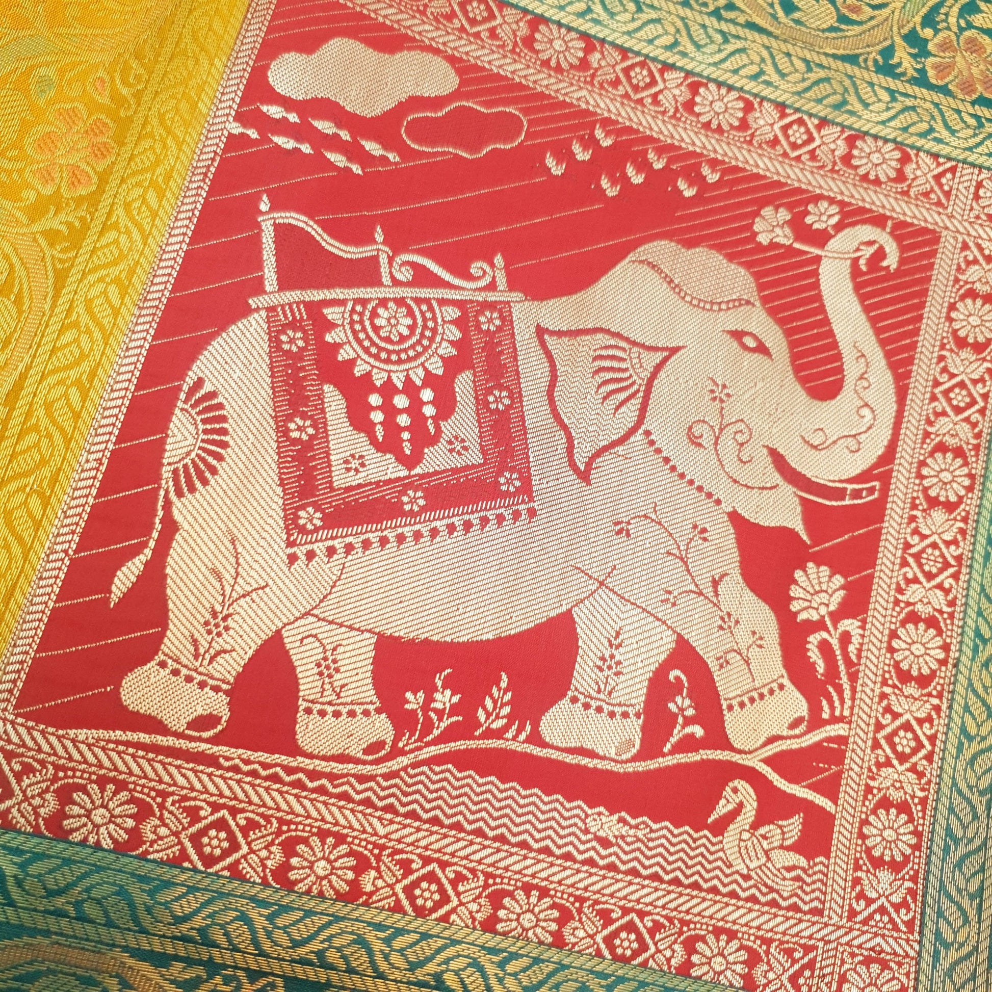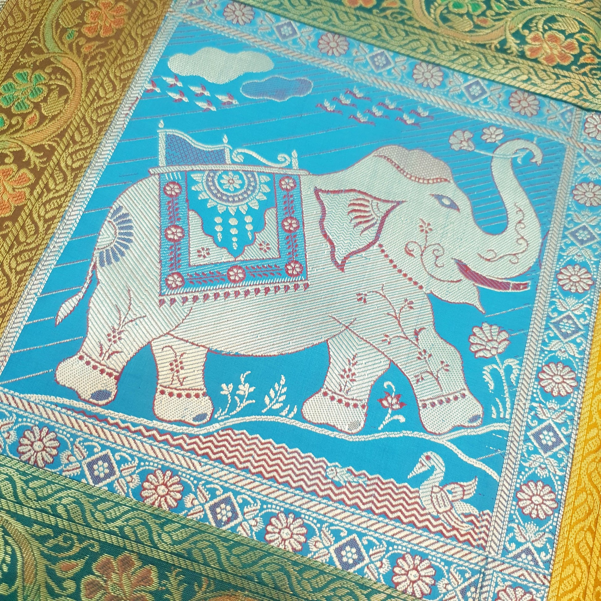 Dining Table Runner Zari Brocade Elephant Woven Banarasi Cover Multi Color