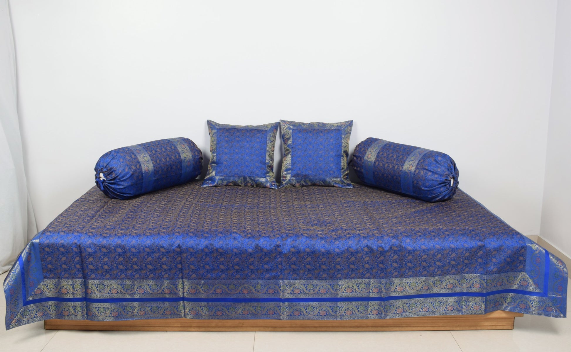 Banarasi Vastra Presents Diwan Set of 5 Piece in Banarasi Silk Fabric with Woven Zari Brocade Patch work in Below Dimensions: