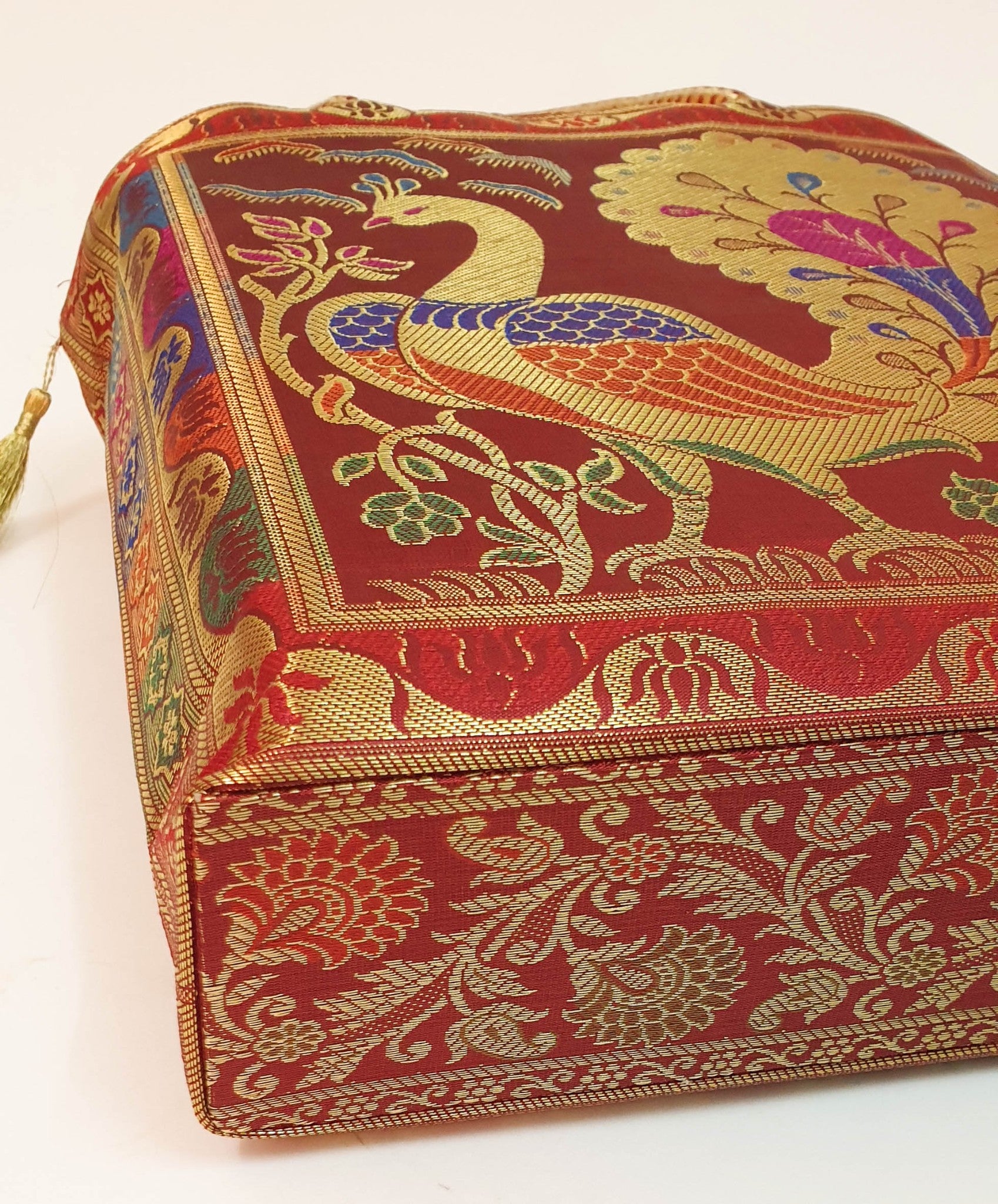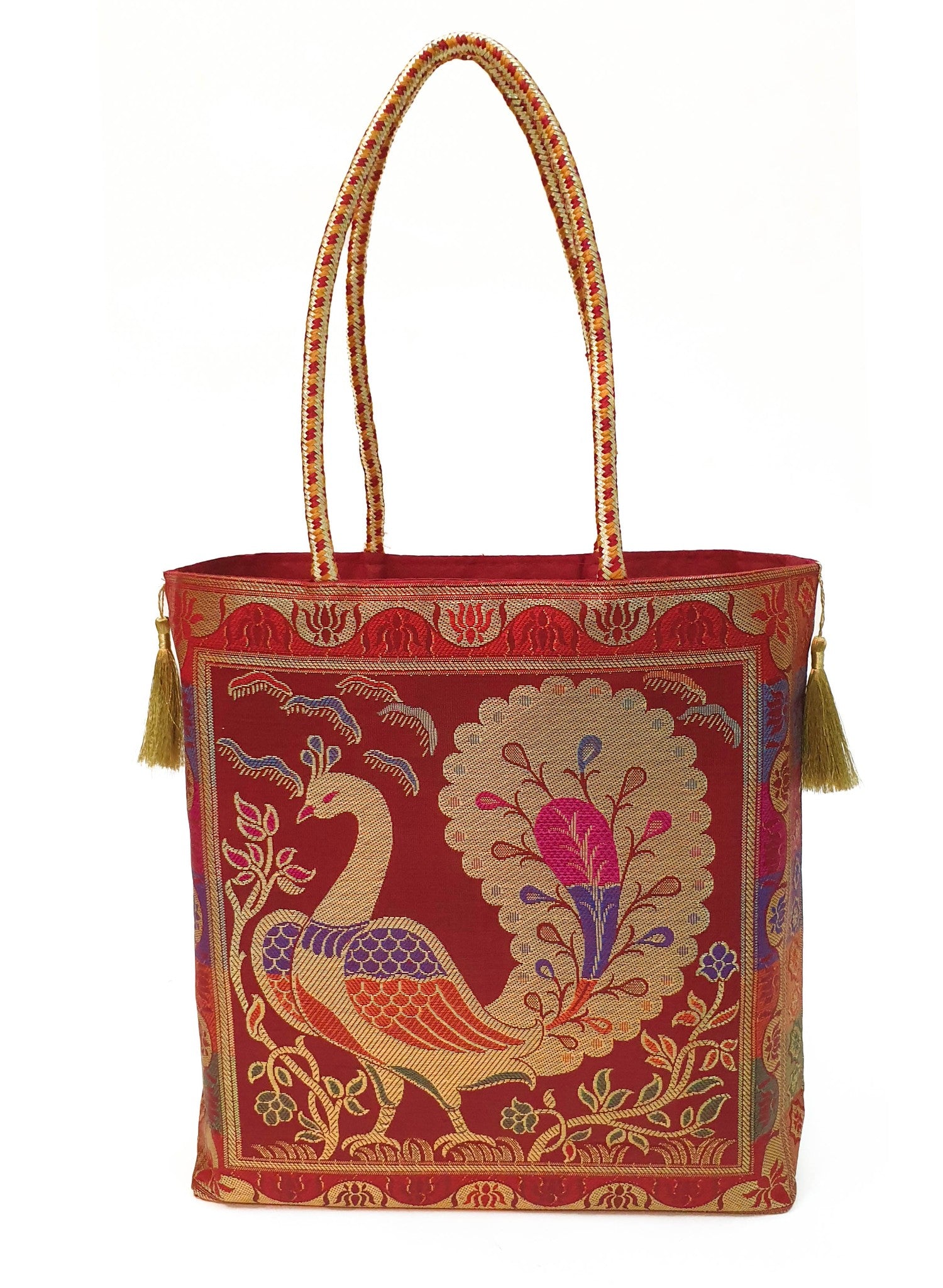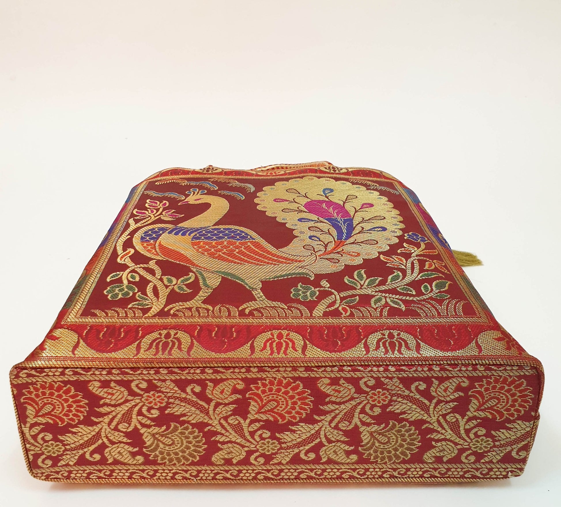 Ethnic Maroon Handbag Peacock Woven Zari Brocade Fabric Wedding Shoulder Bag