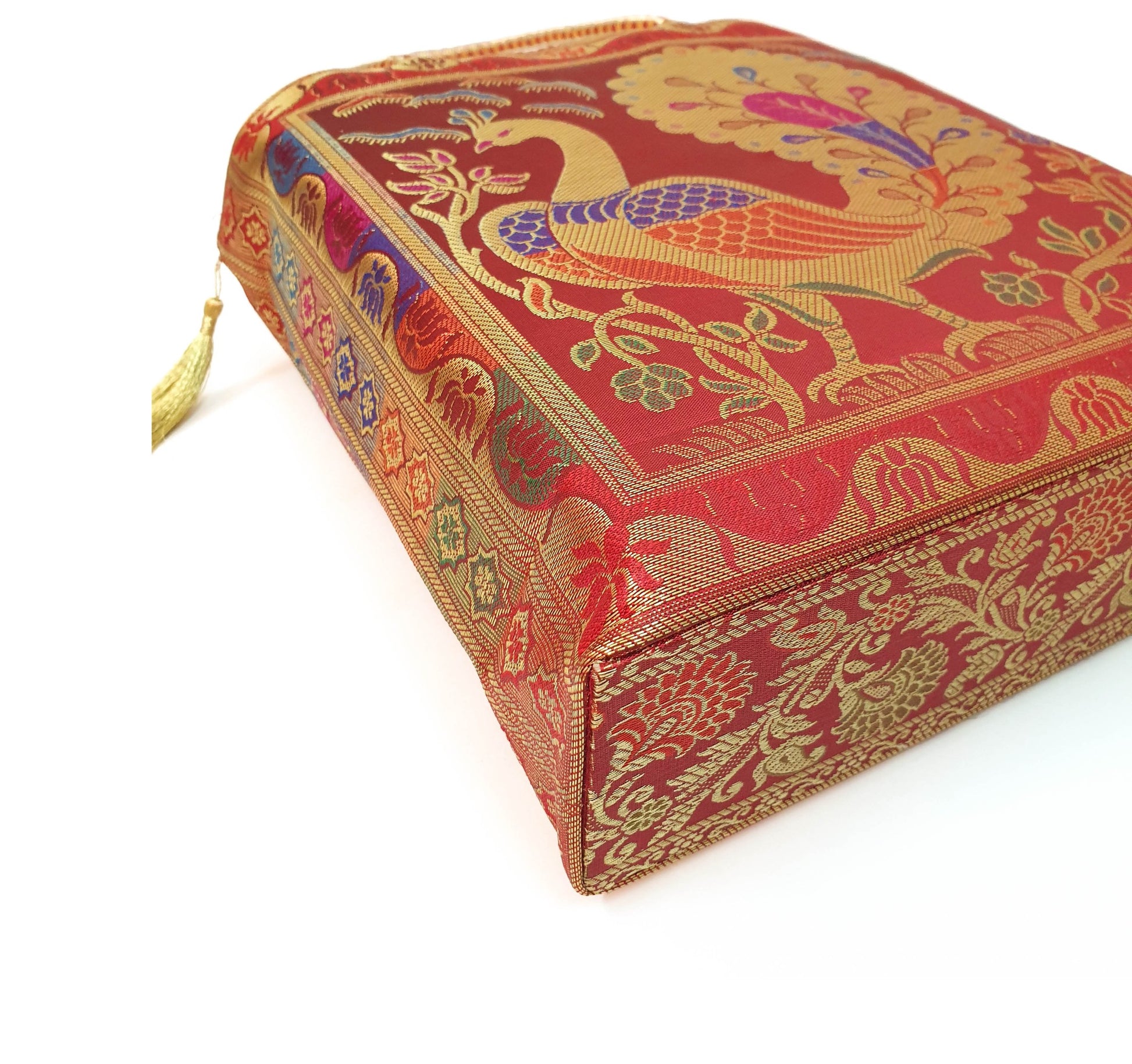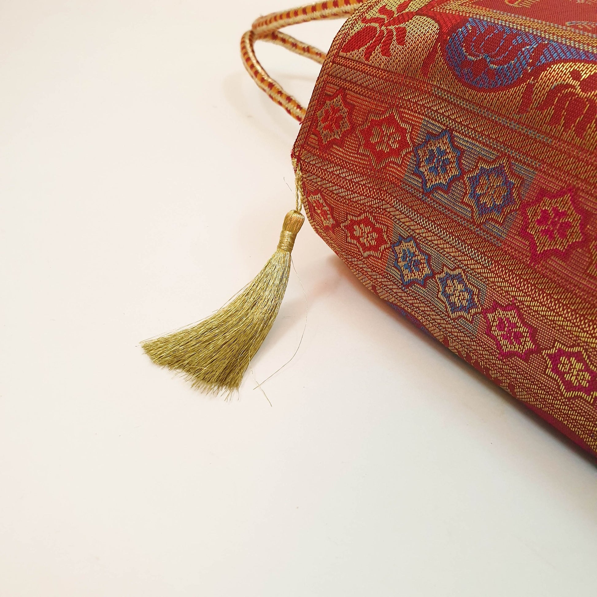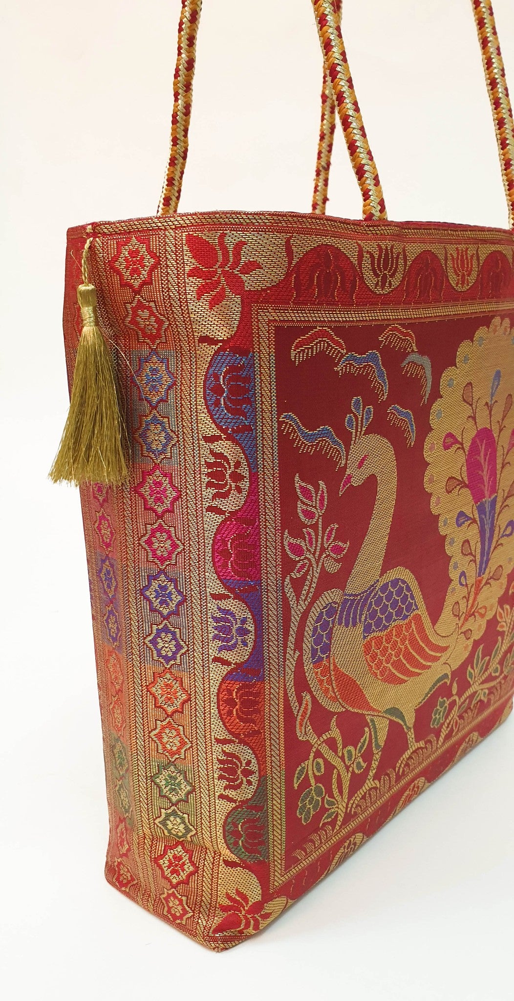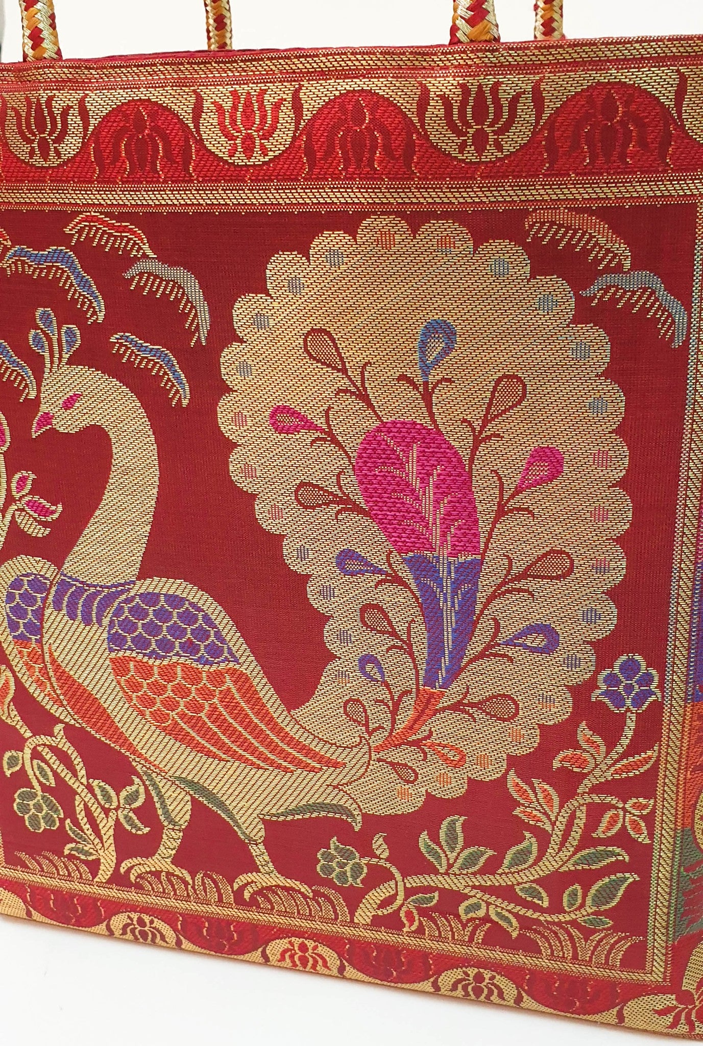 Ethnic Maroon Handbag Peacock Woven Zari Brocade Fabric Wedding Shoulder Bag