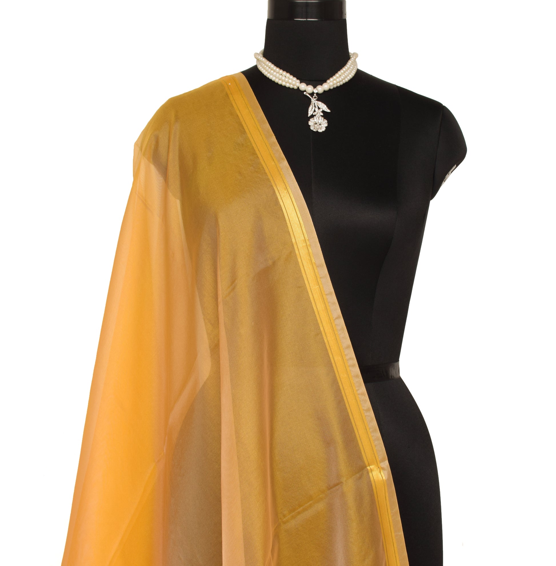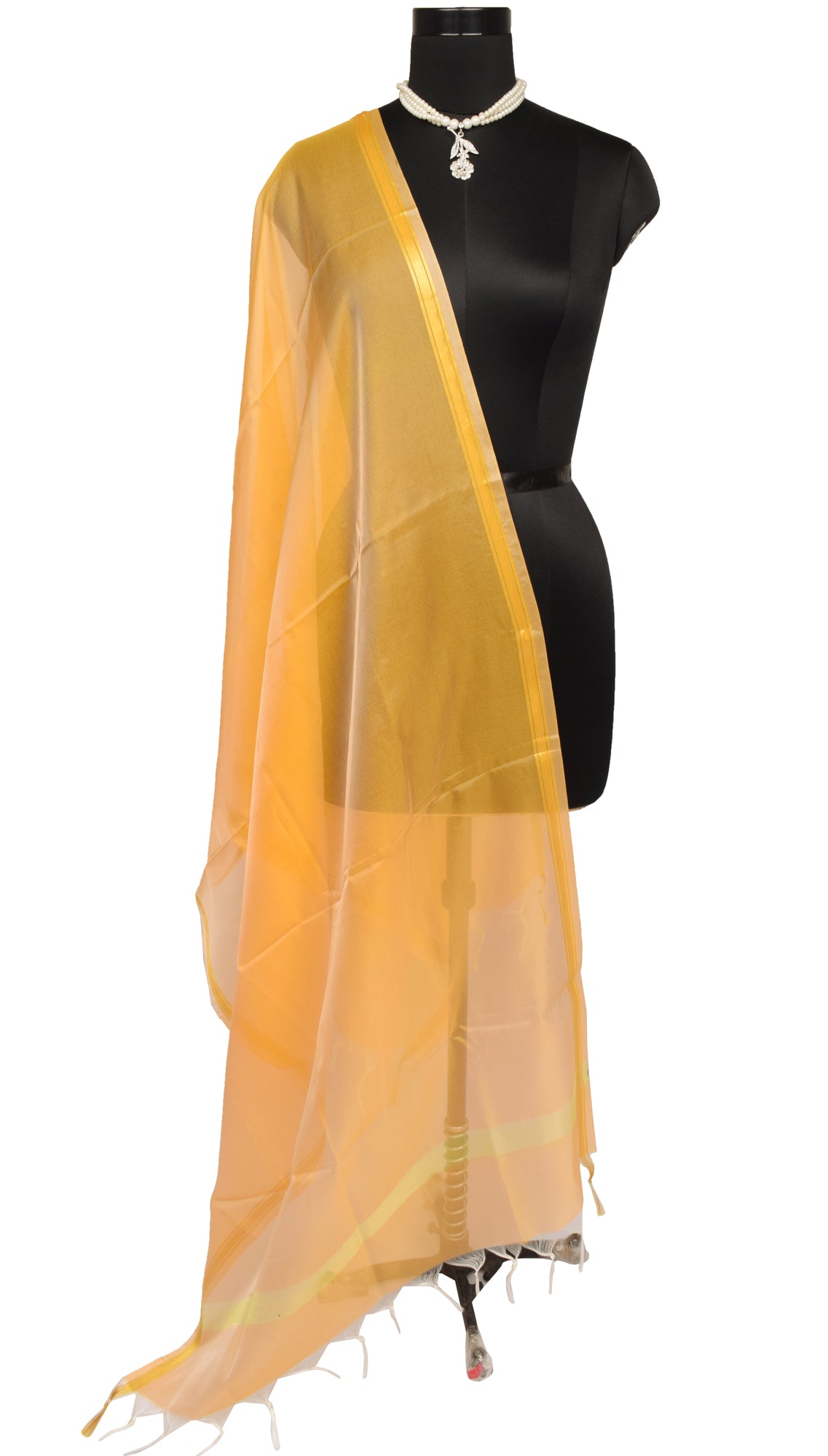 Golden Banarasi Dupatta Indian Art Silk Woven Zari Brocade Long Stole Scarves