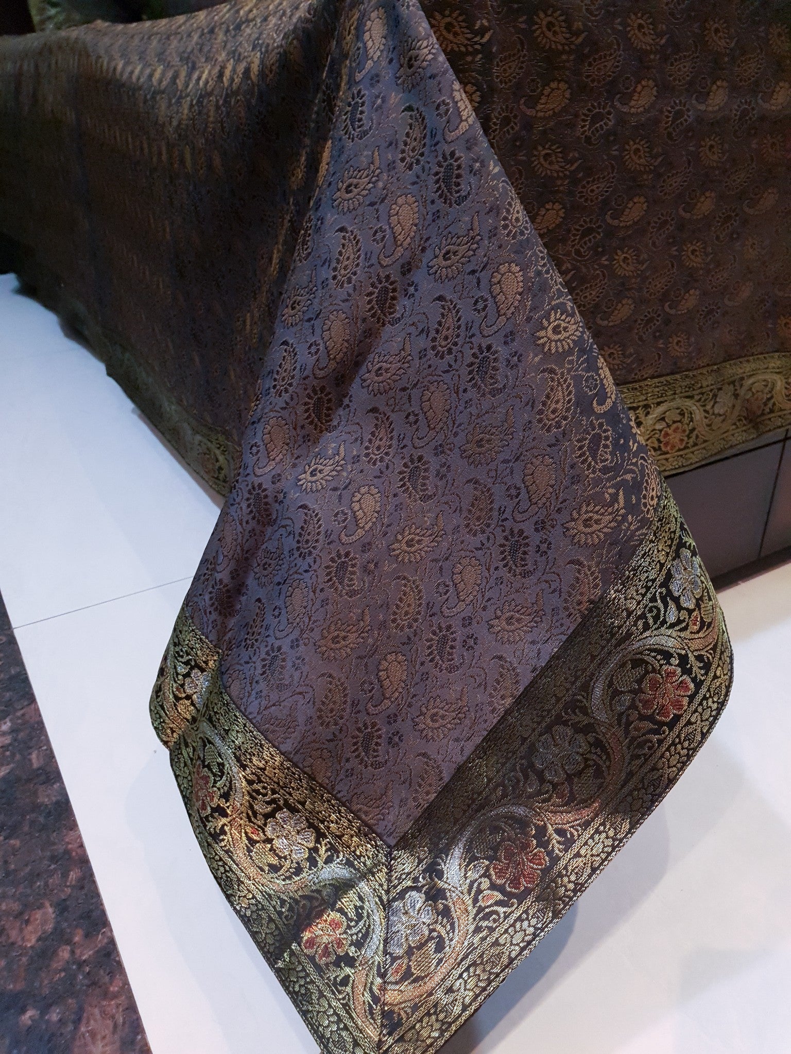 Banarasi Vastra Presents Bed Cover Set of 5 Piece in Banarasi Silk Fabric with Woven Zari Brocade Patch work in Below Dimensions: