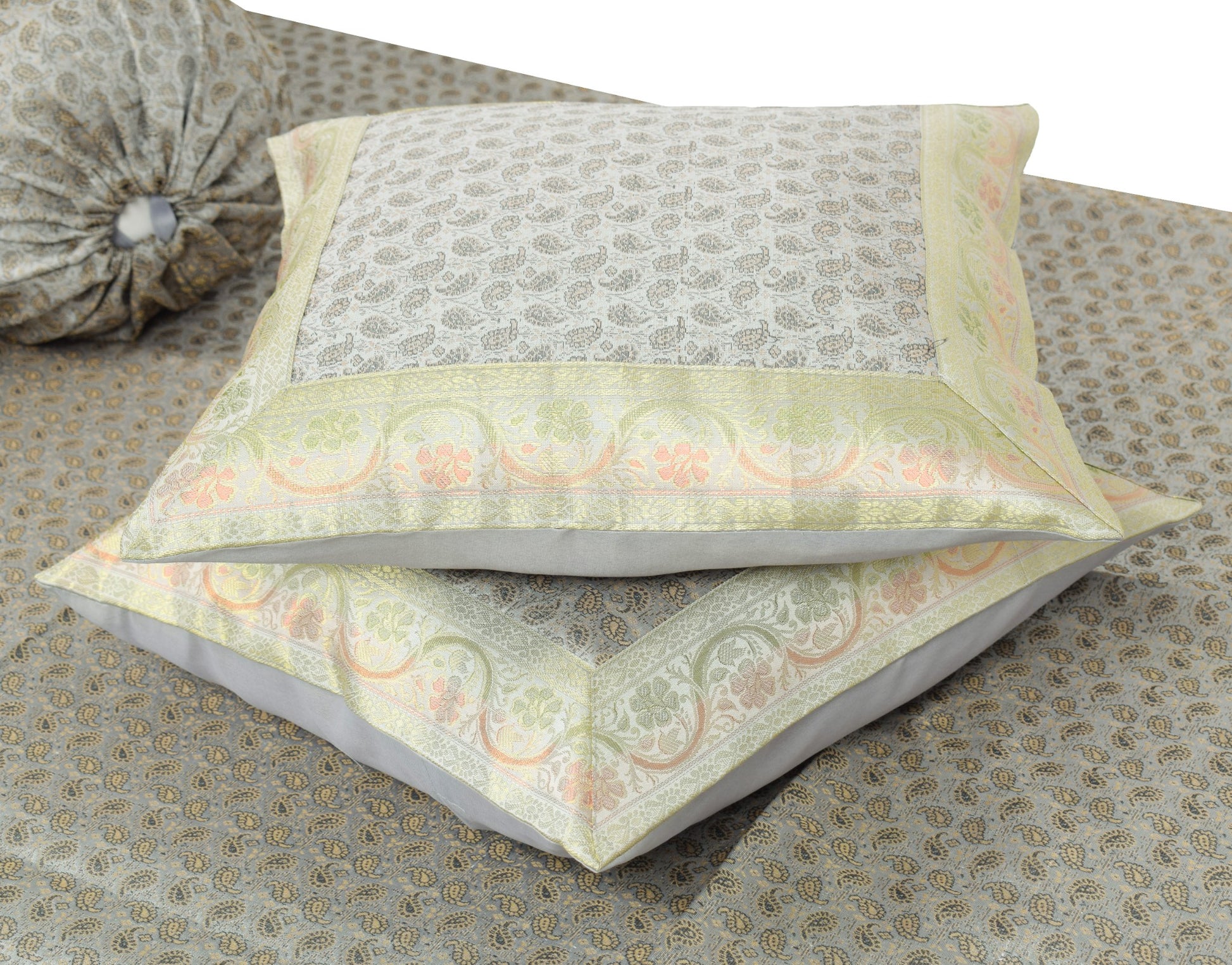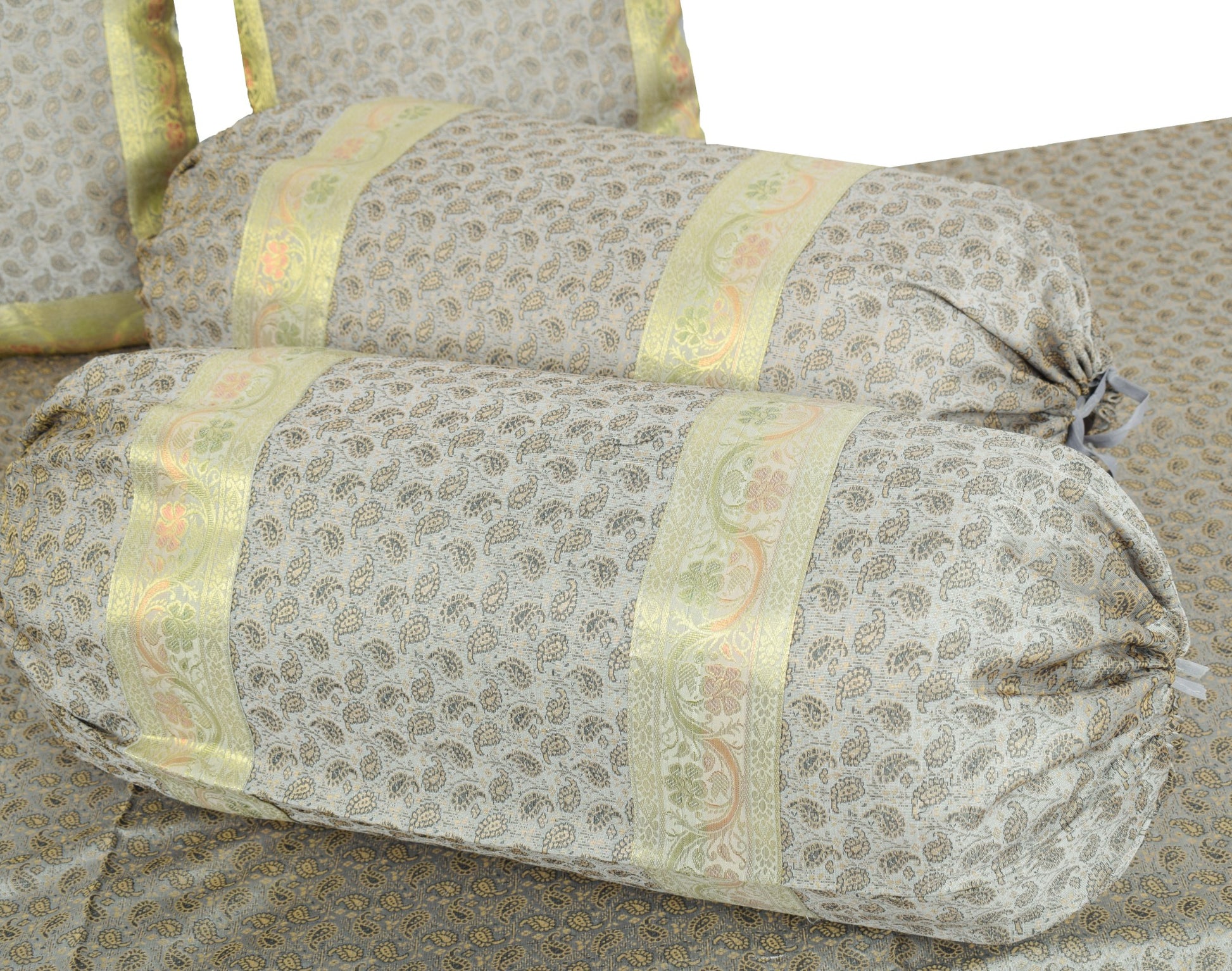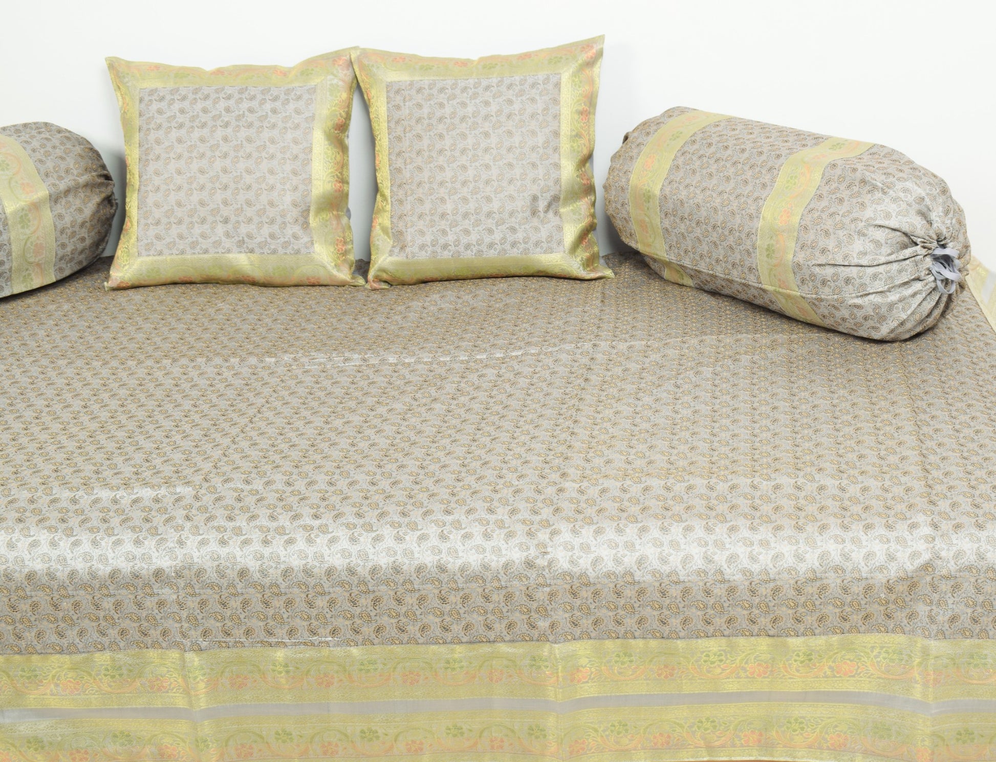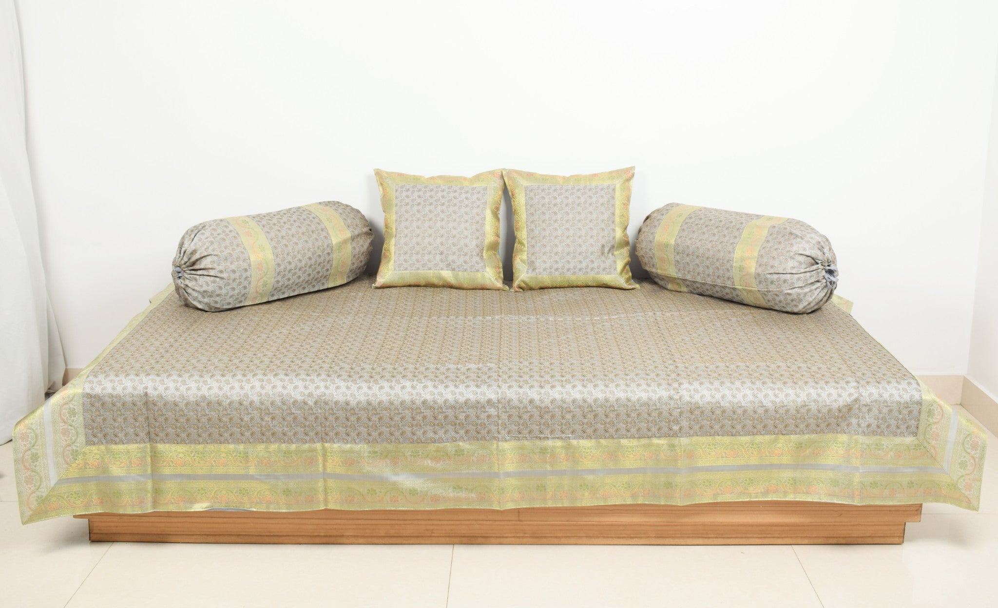 Gray Grace – Banarasi Silk Zari Brocade Diwan Set with Cushions & Bolster Cover