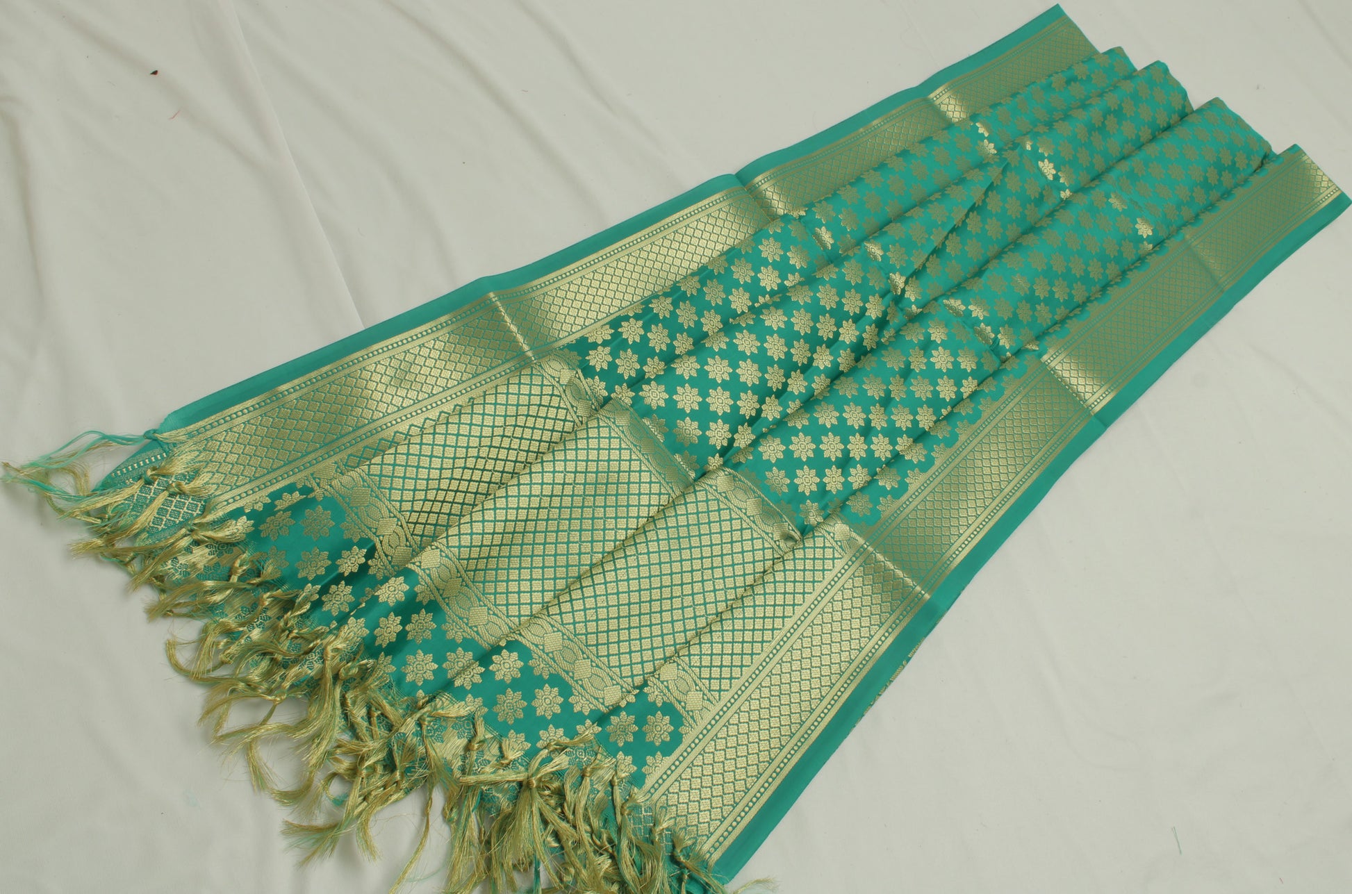 Green Banarasi Dupatta Indian Art Silk Woven Zari Brocade Long Stole Scarves
