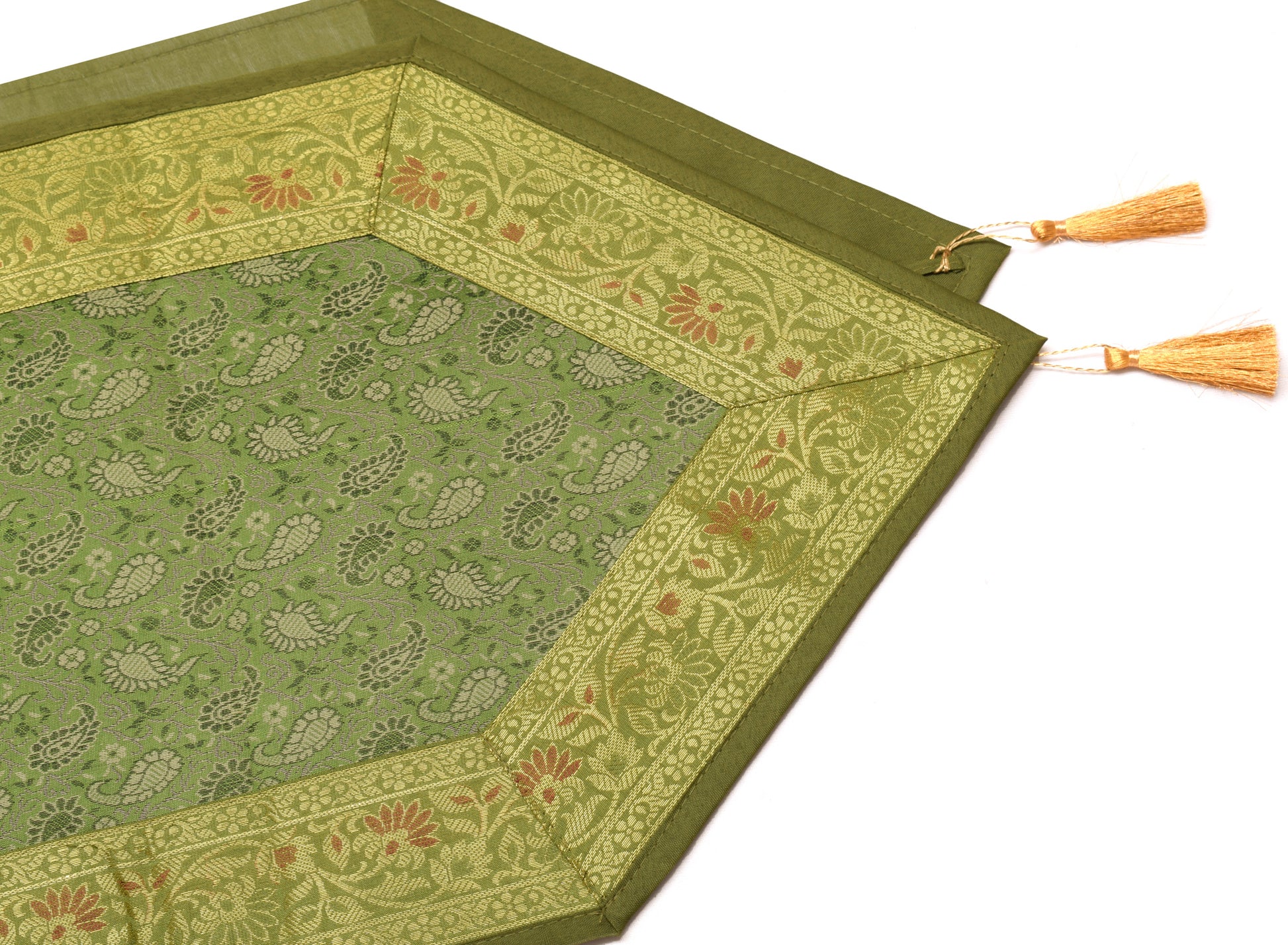 Table Runner Dining Decor Green Indian Banarasi Silk Brocade Paisley Cloth