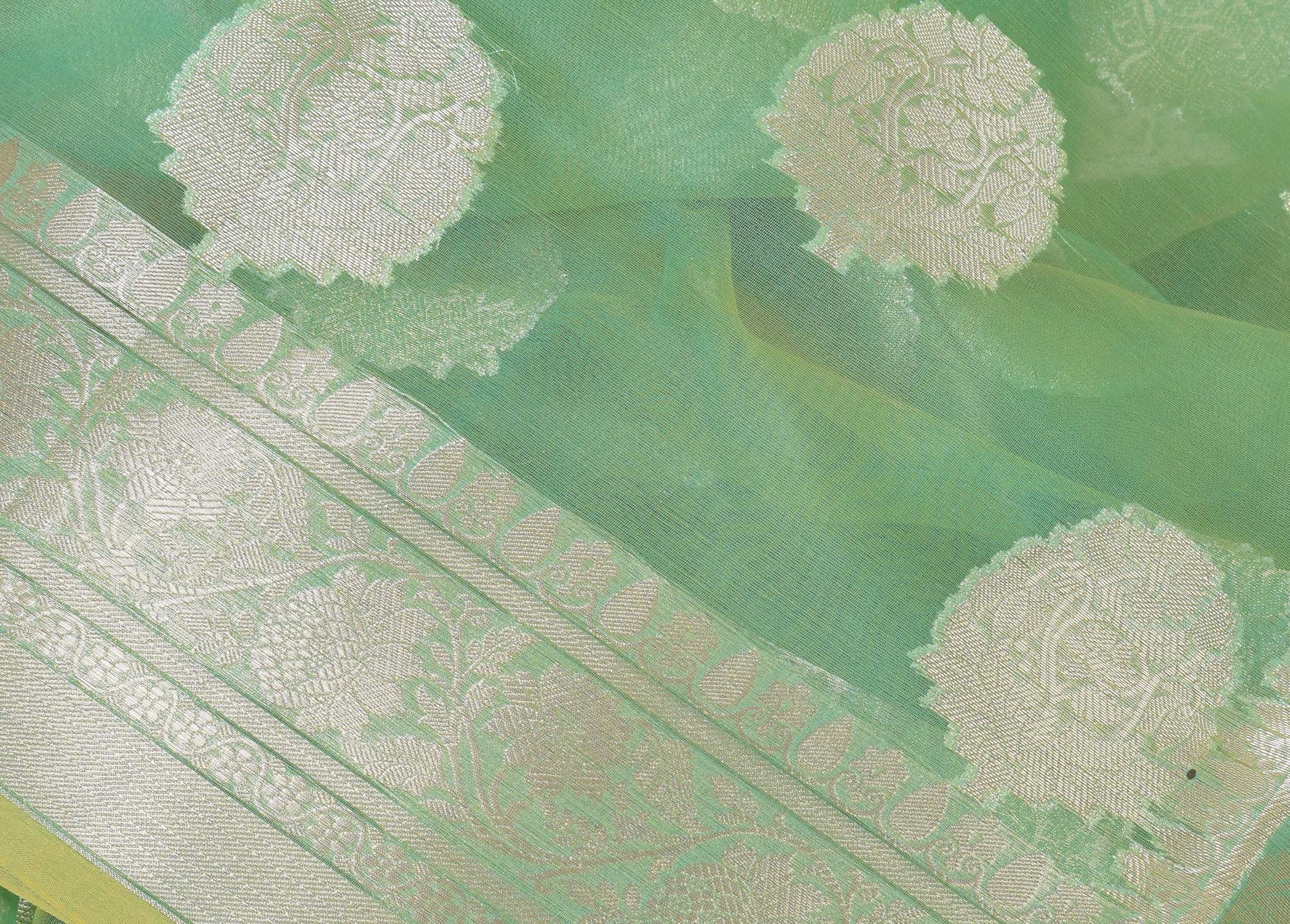 Green Shades Banarasi Organza Saree with Zari Woven Buta Rich Pallu & Border