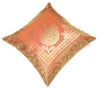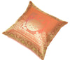 Indian 16x16" Rust Banarasi Silk Cushion Cover Featuring Zari Brocade Paisley