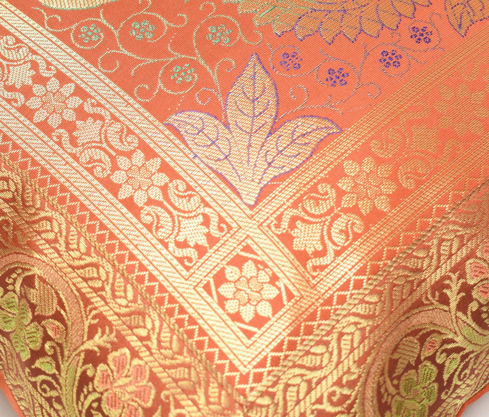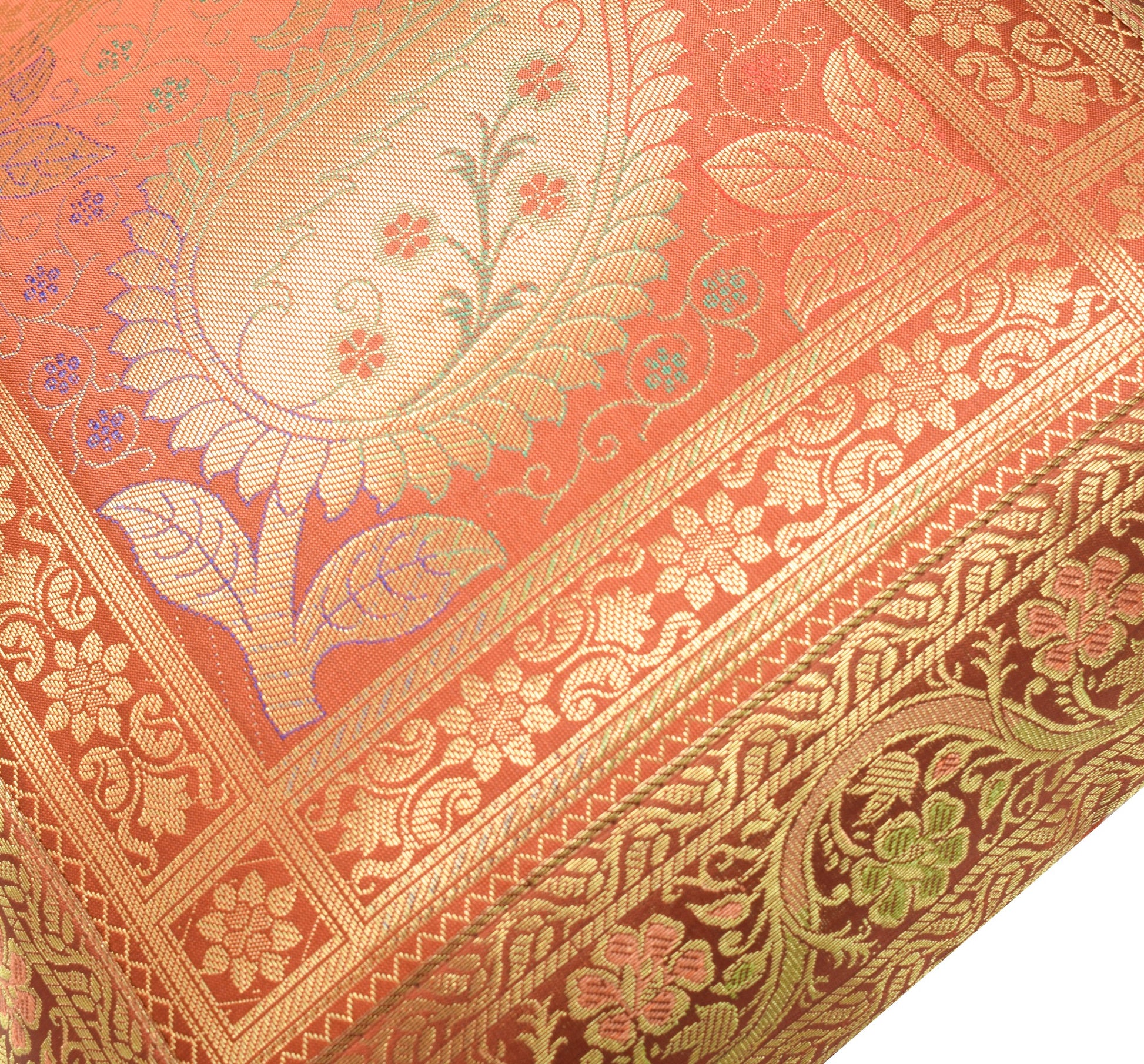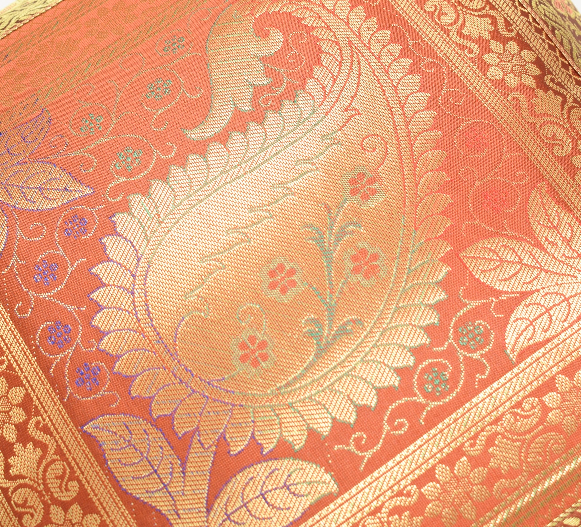Banarasi Vastra Presents Indian Art Silk Woven Zari Brocade Banarasi Cushion Pillow Cover in Paisley Pattern in the centre Part of the cover with all 4 Side Floral Zari Woven Border. this Cover comes with Matching color Back lining fabric with Hidden Zip which allow you to insert the Cushion Pillow. The base color of the cover is Rust.