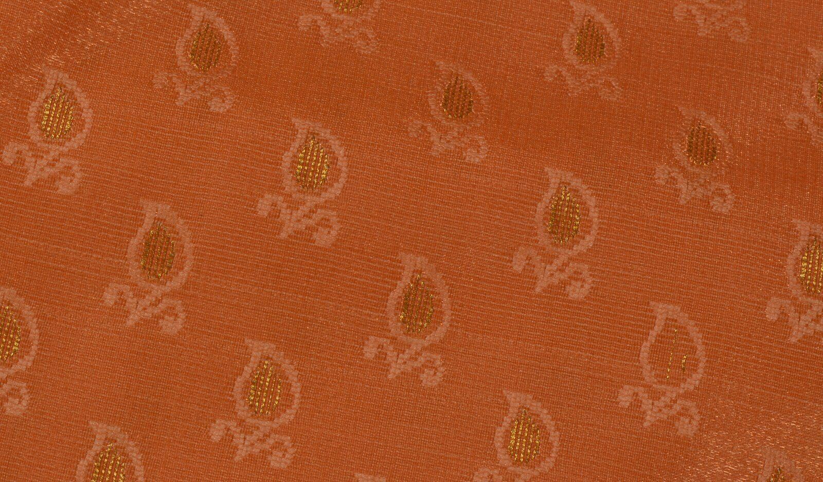 Indian Art Silk Sari Woven Zari & Self Brocade Wedding Saree Fabric Orangish Pea