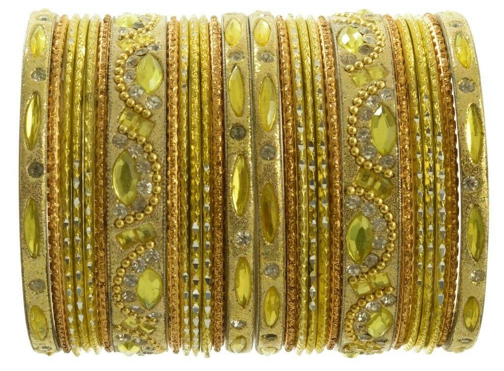 Indian Bangles Set of 26 Ethnic Bracelets Bridal Churi Kangan Lemon 2-8