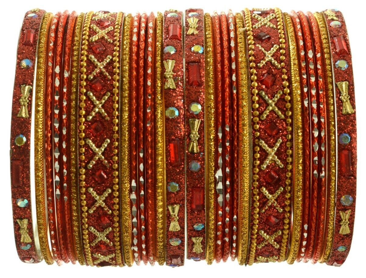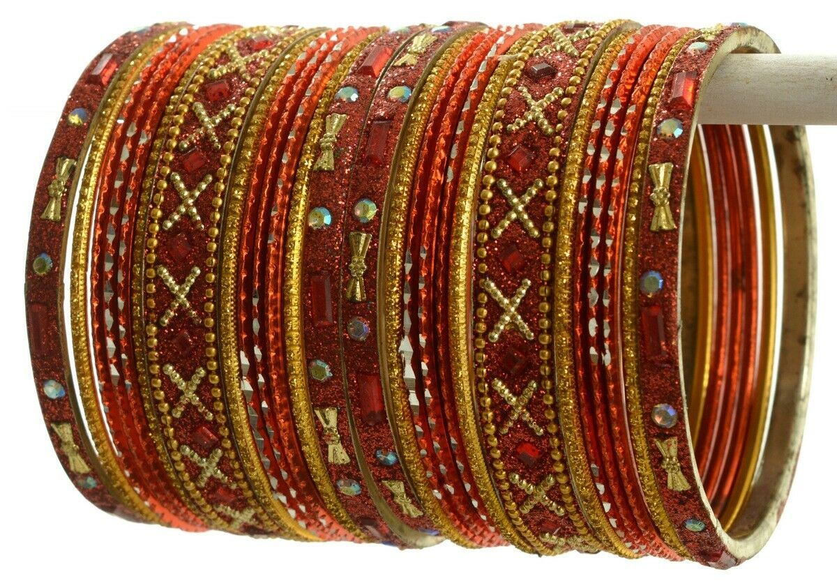 Indian Bangles Set of 26 Ethnic Bracelets Traditional Churi Kangan Orange 2-8
