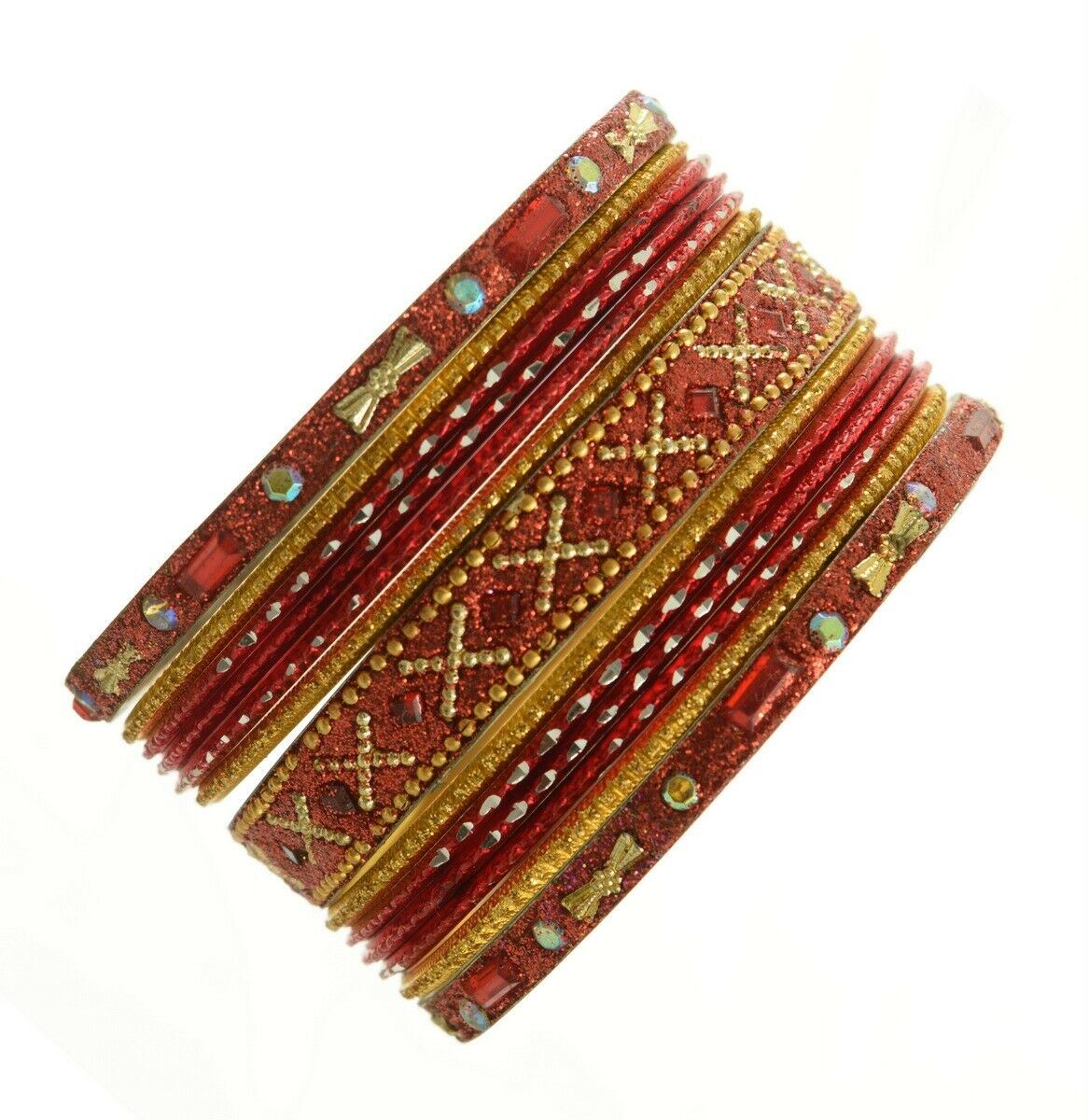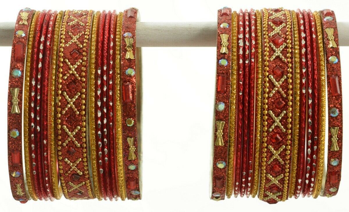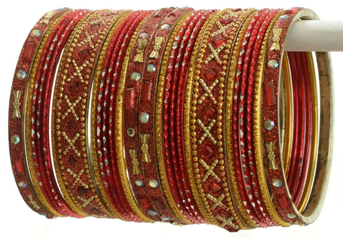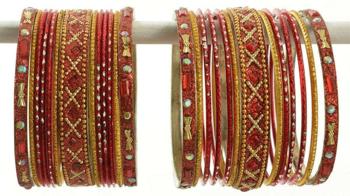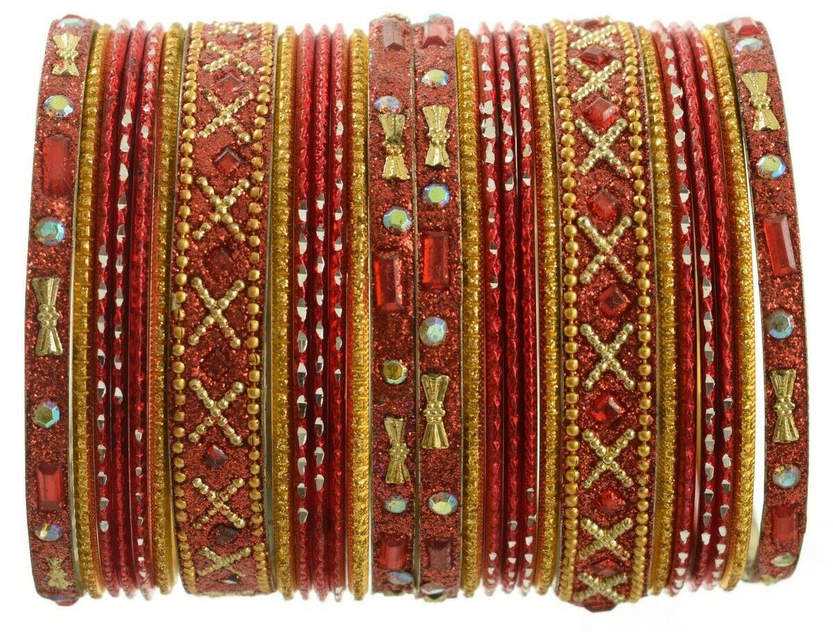 Indian Bangles Set of 26 Ethnic Bracelets Traditional Churi Kangan Red 2-8