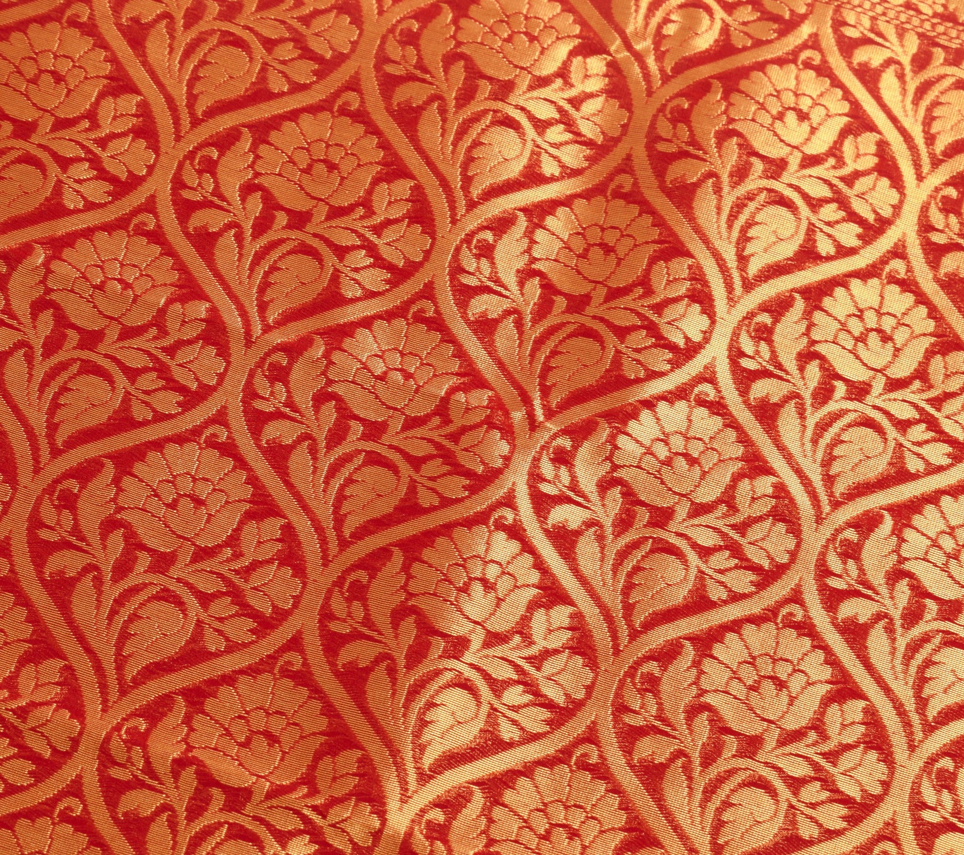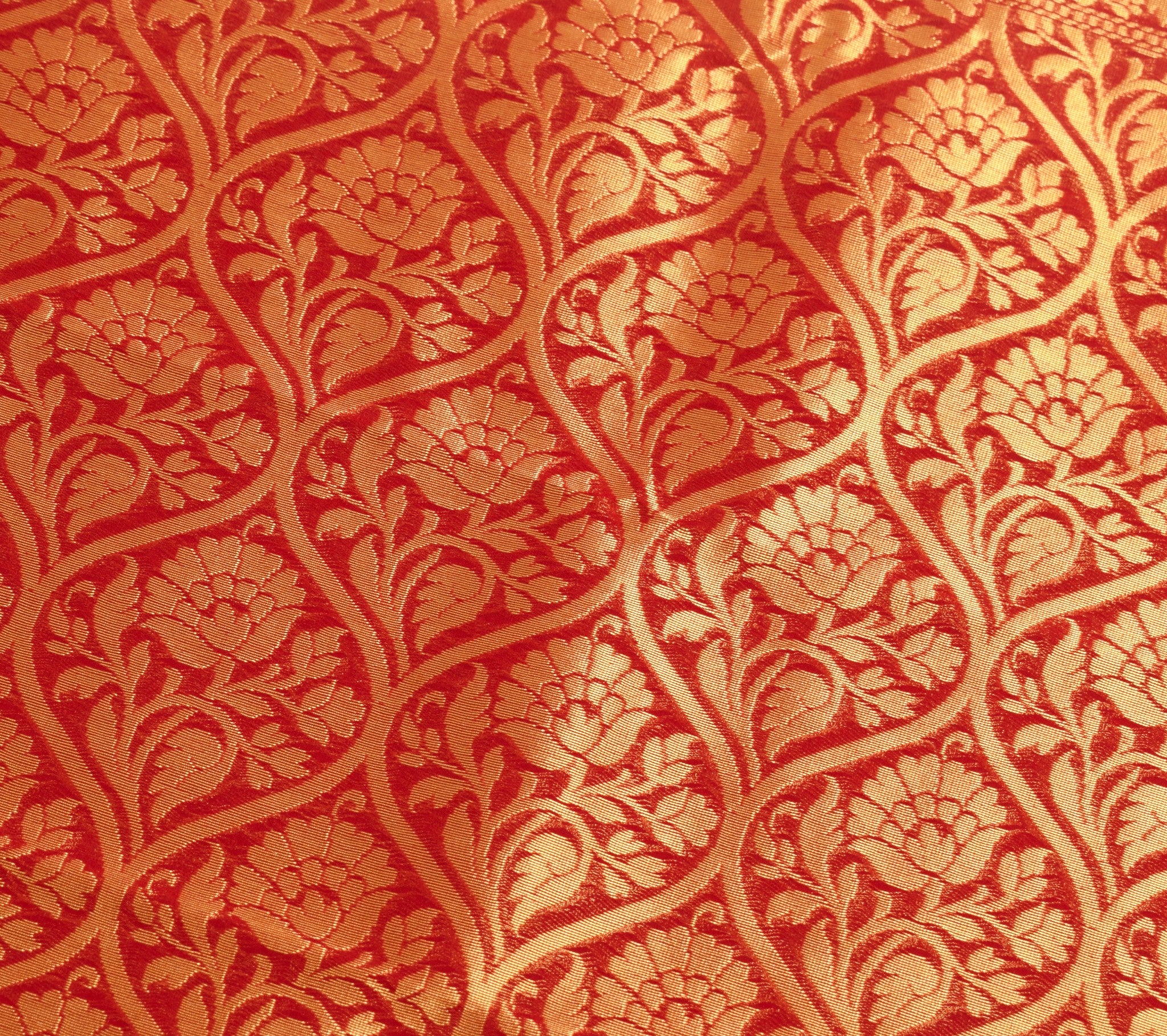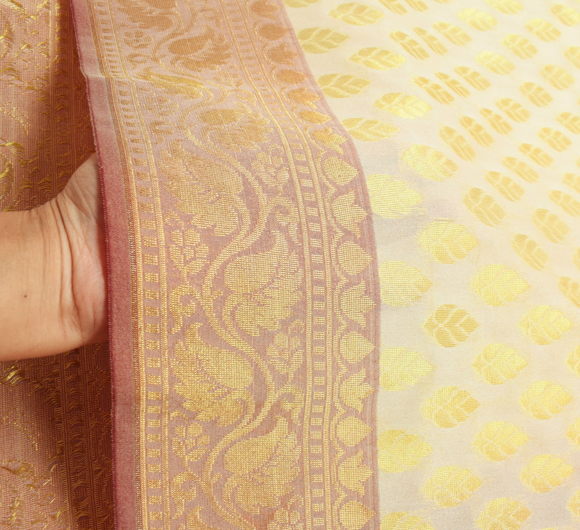 Indian Cream Red Banarasi Sari Art Cotton Saree Blouse Fabric Gold Zari Woven