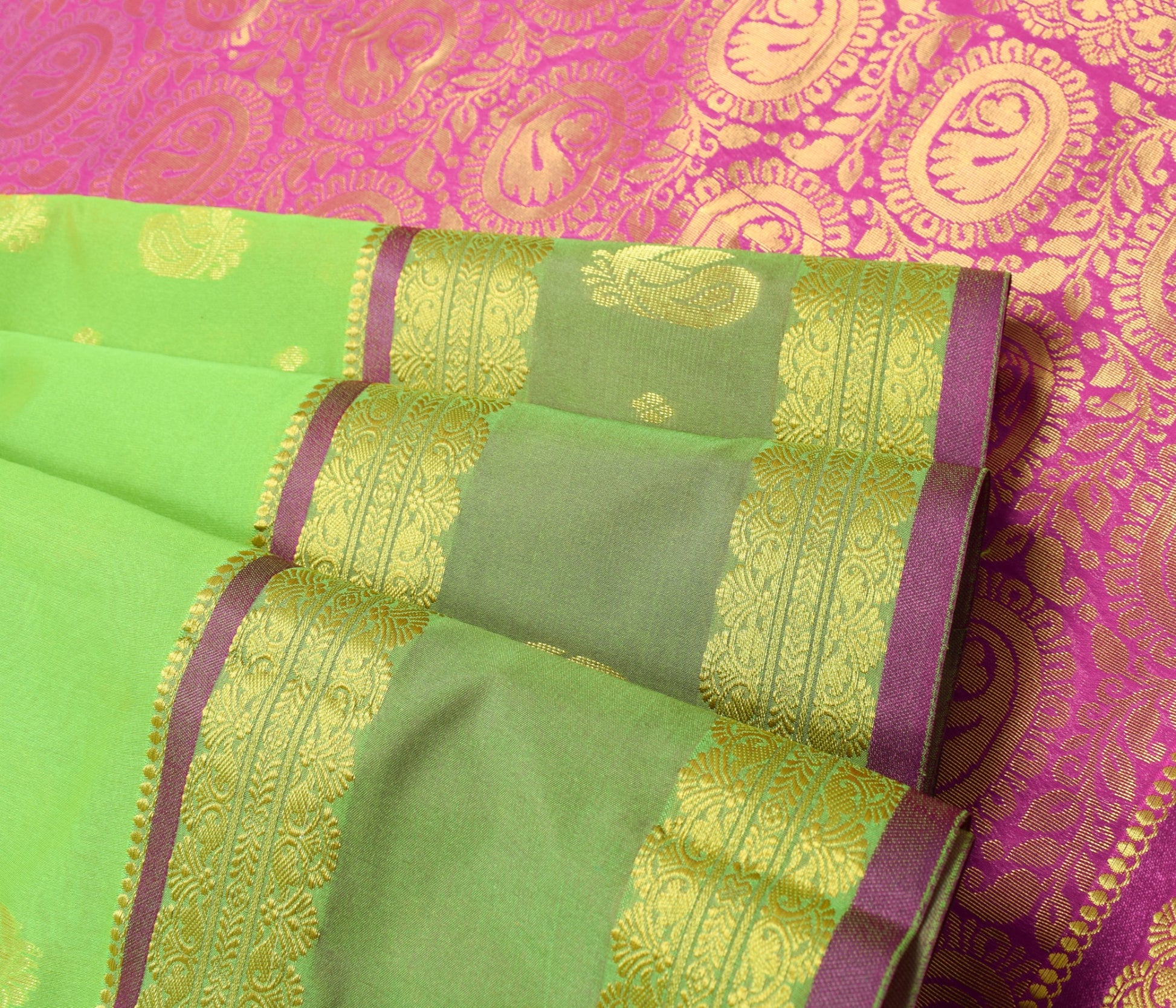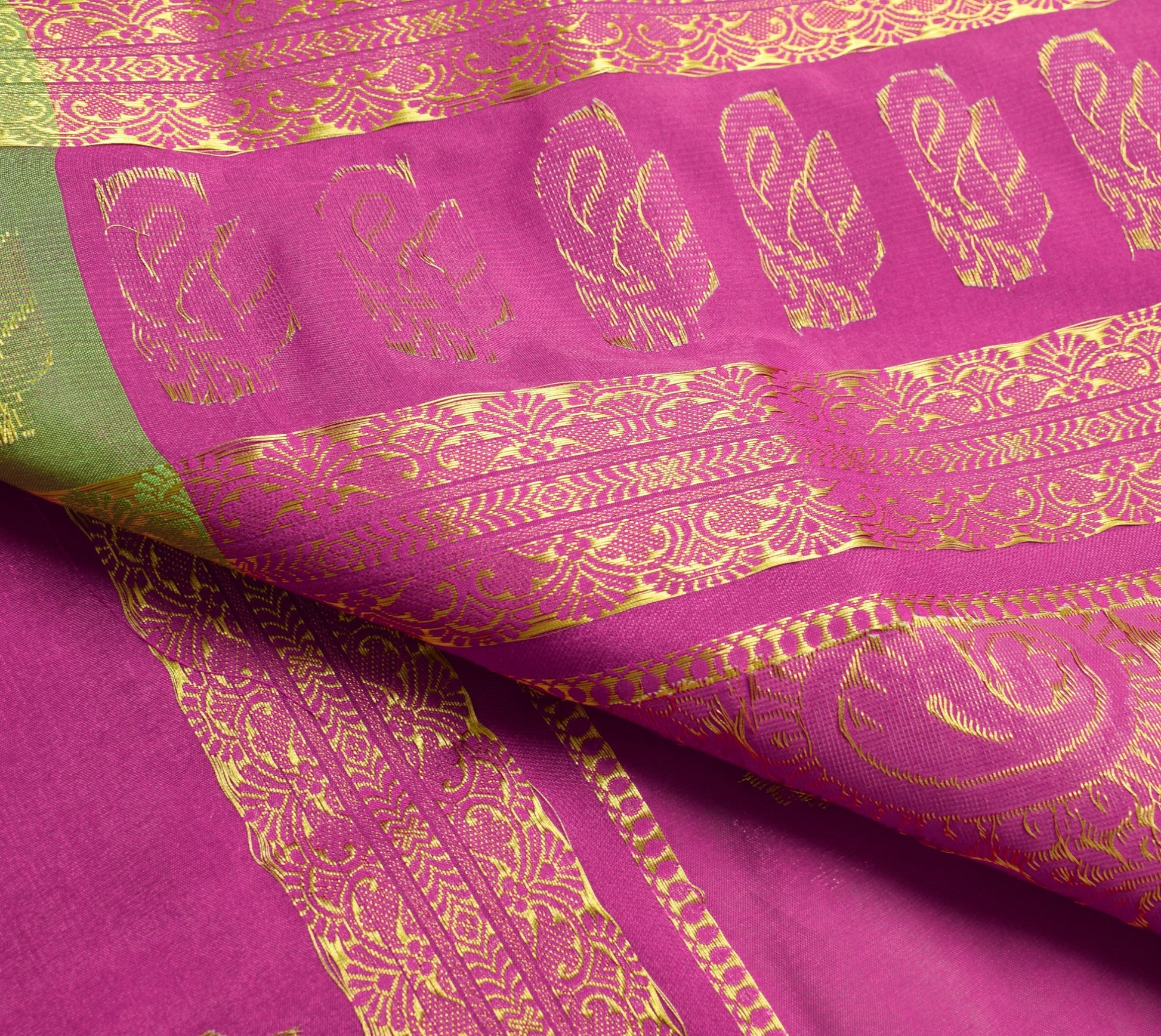Indian Green Purple Sari Banarasi Art Cotton Saree with Blouse Gold Zari Woven