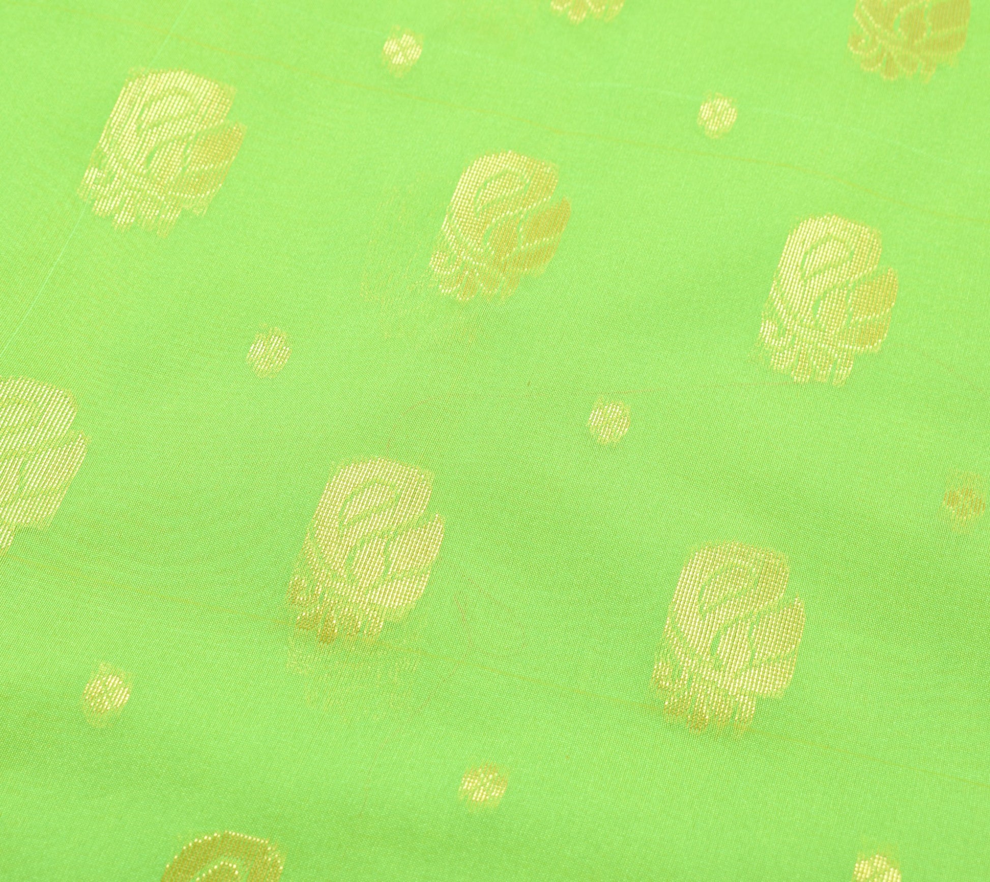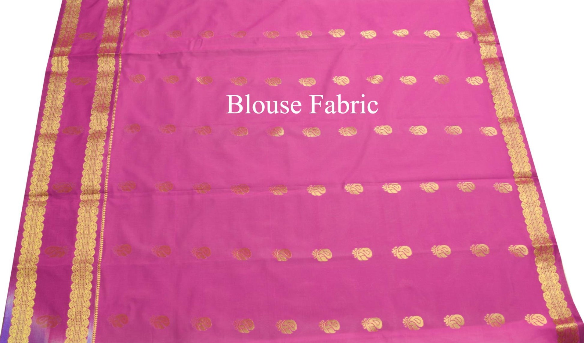 Beautiful Zari Woven Poly Cotton Handloom Saree from Banaras, this sari has all over Zari Woven Motifs with Floral Rich Pallu and one side 7 inches and another side 2.25 inches broad Zari Woven Border. This Saree comes with Matching (UN-Stitched) Blouse Fabric which need to cut before the Anchal/Pallu. This Saree is great for wearing purpose or can be used for making beautiful Dress or Home Decorative items.