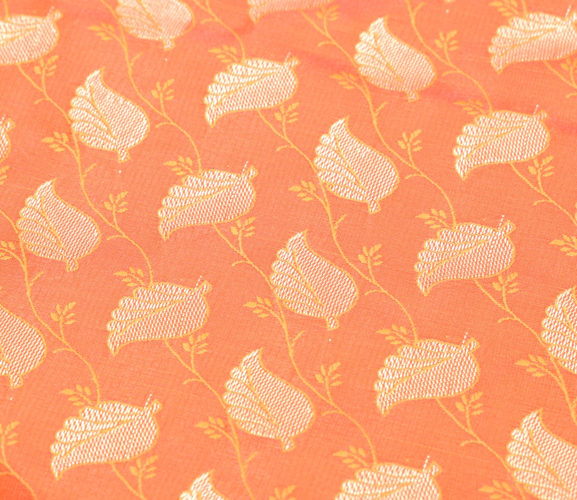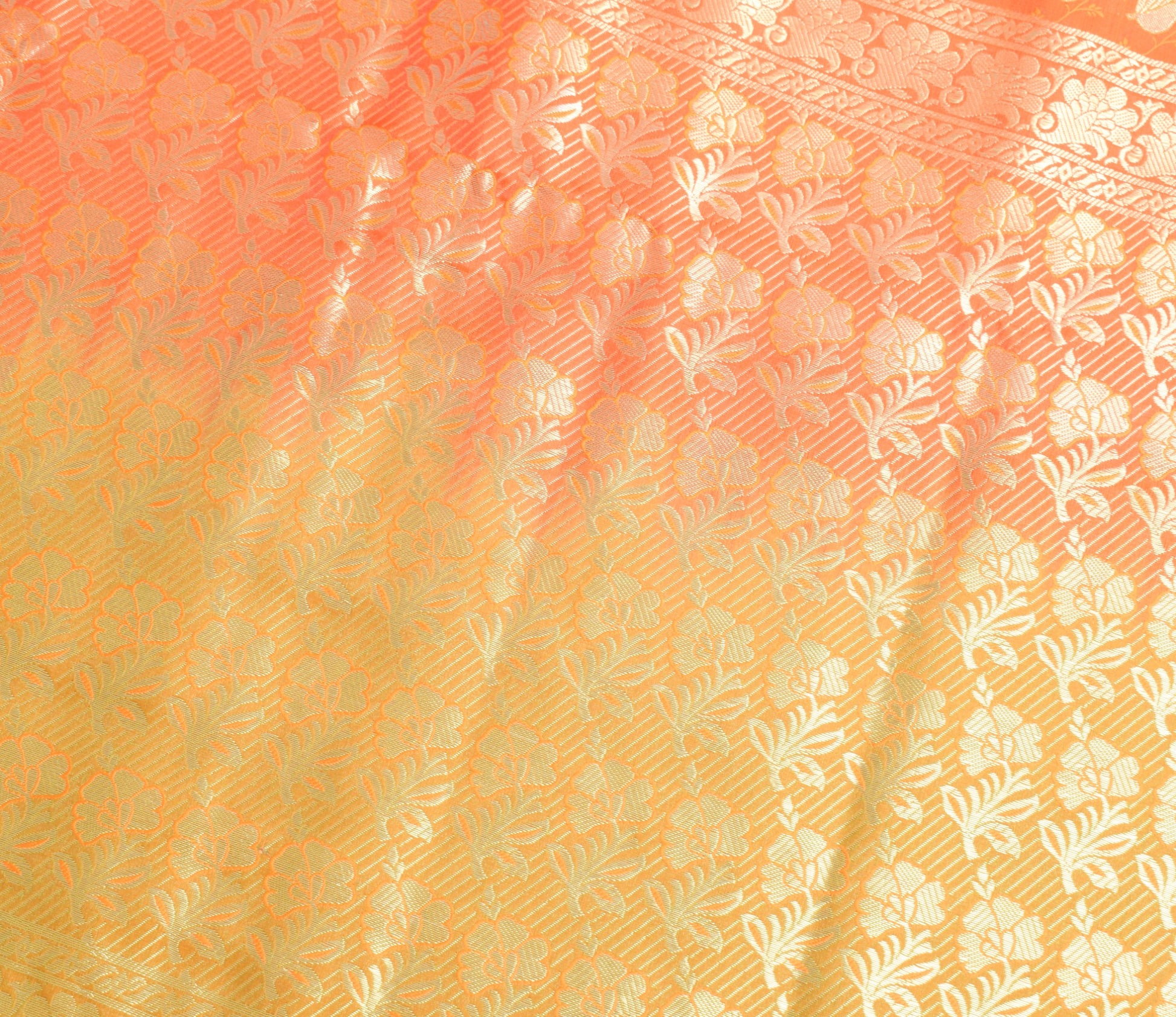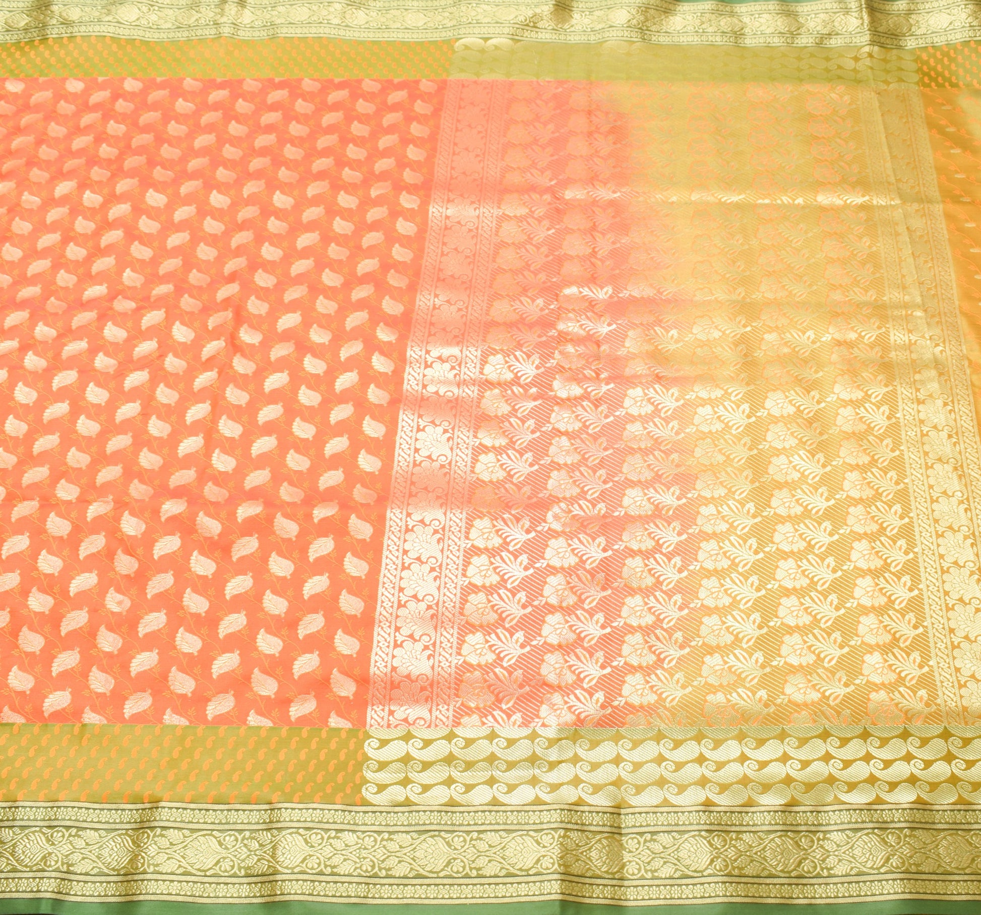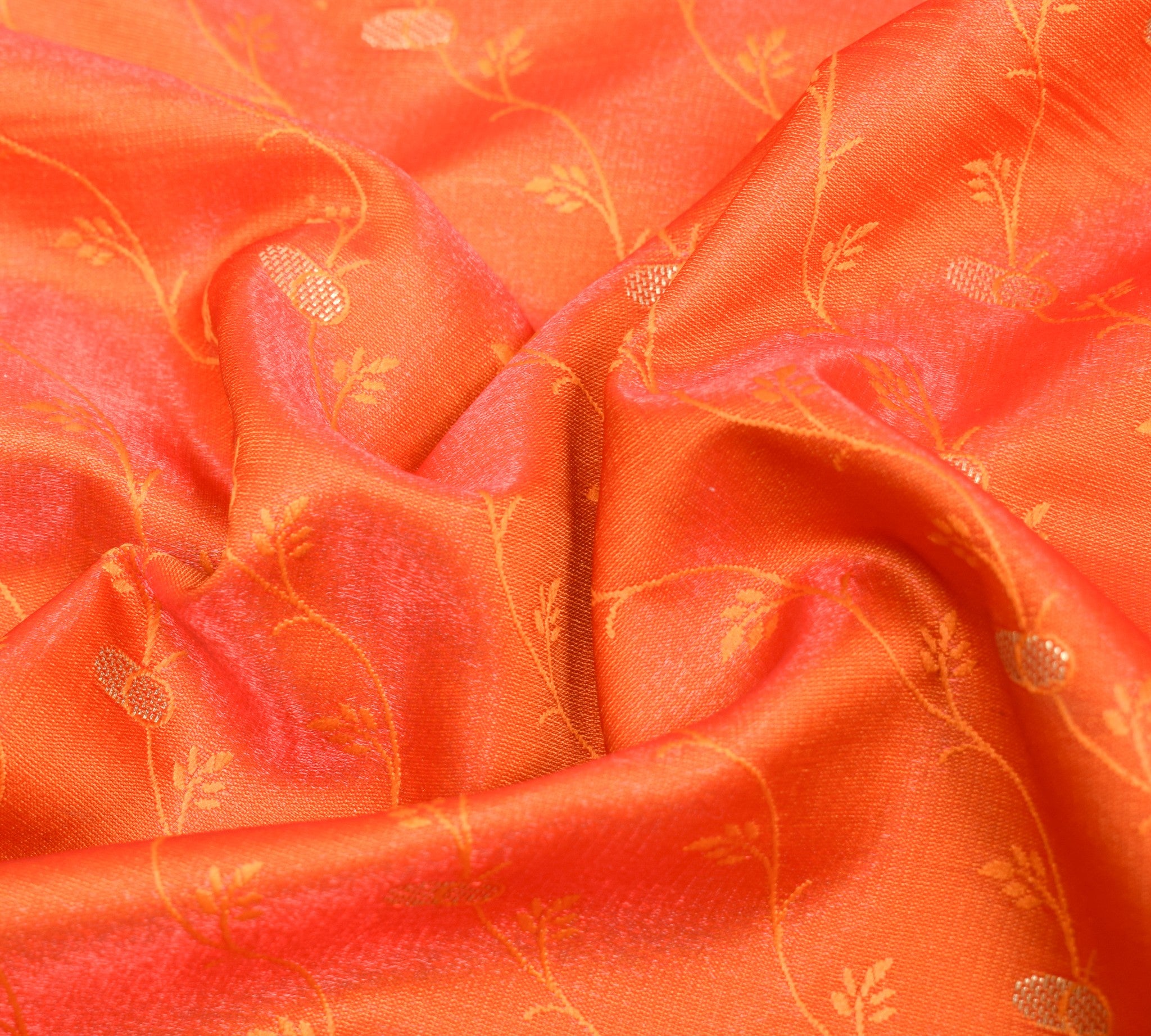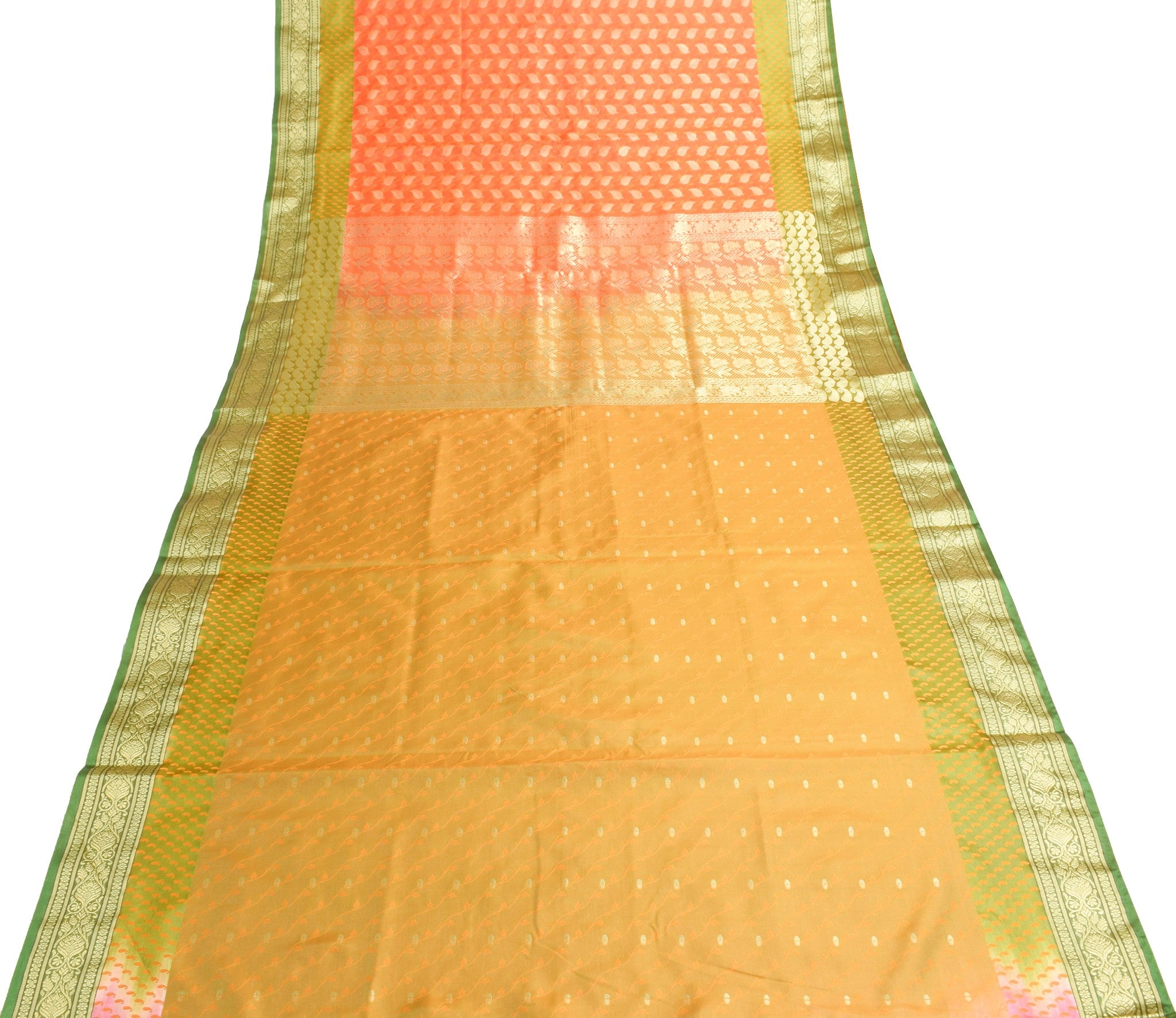 Indian Orange Dual Tone Sari Art Silk Banarasi Saree Blouse Gold Zari Woven