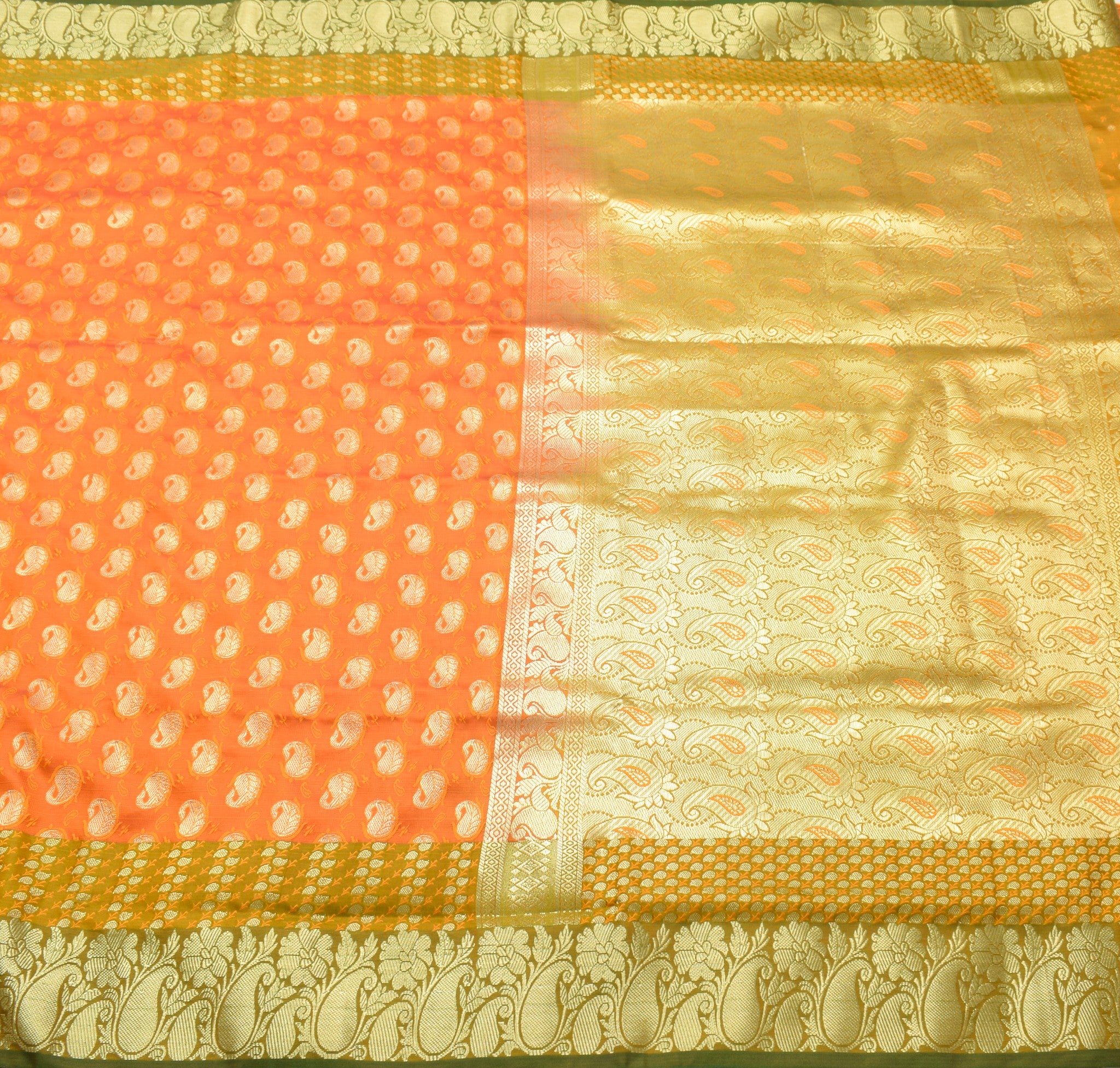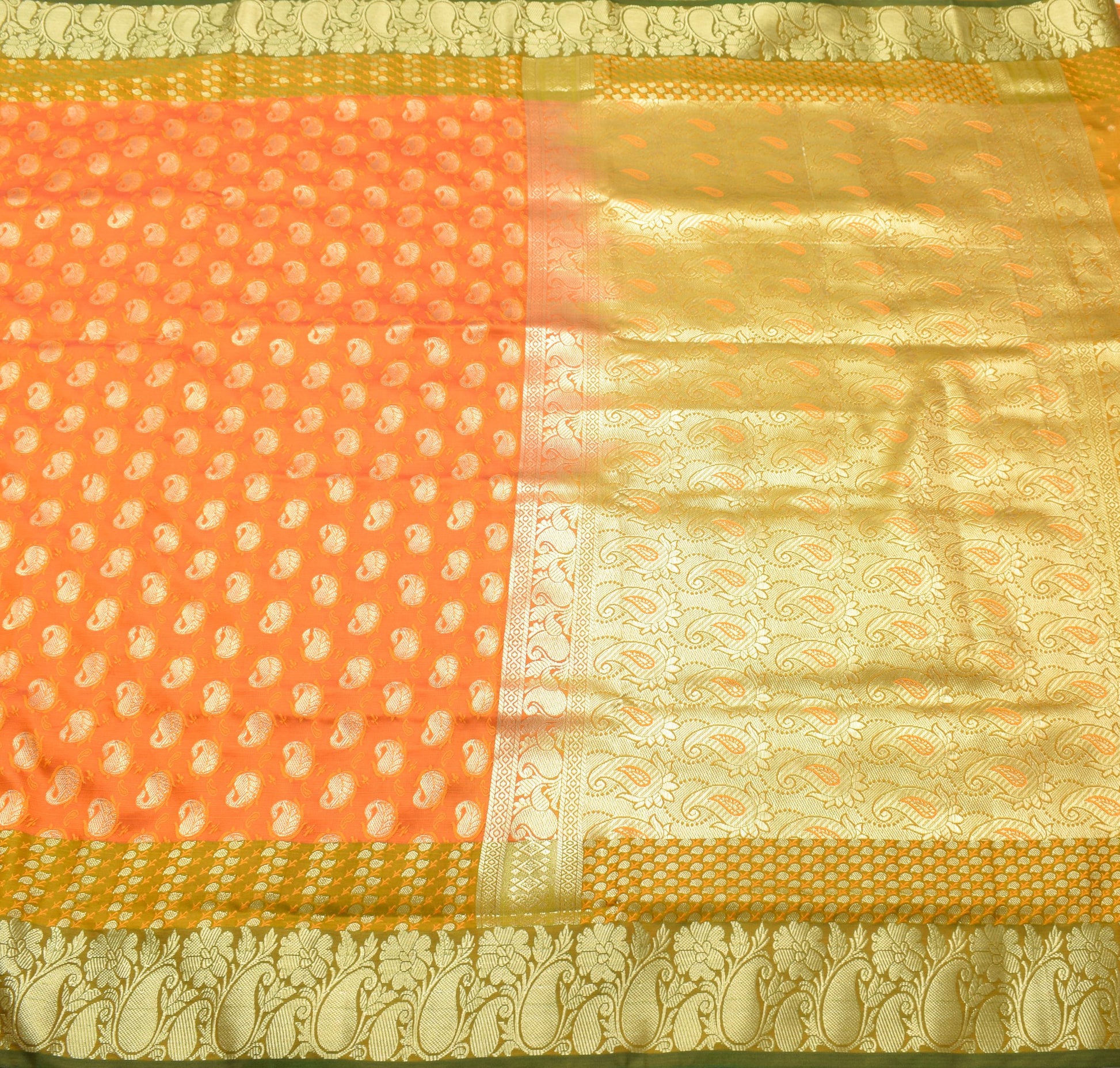 Indian Orange Dual Tone Sari Banarasi Art Silk Saree with Blouse Gold Zari Woven