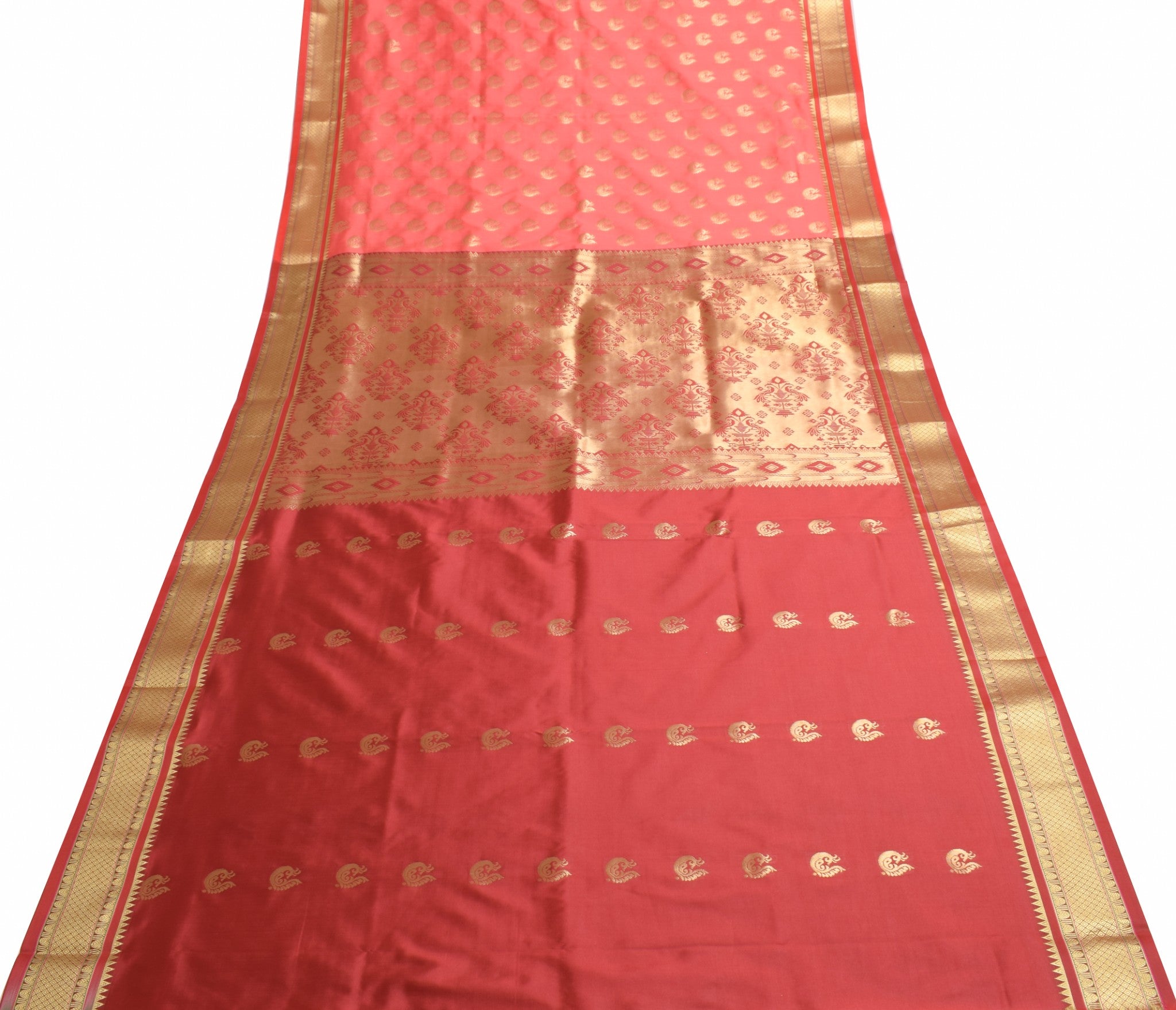 Indian Peach Maroon Sari Banarasi Art Silk Saree with Blouse Gold Zari Weaving