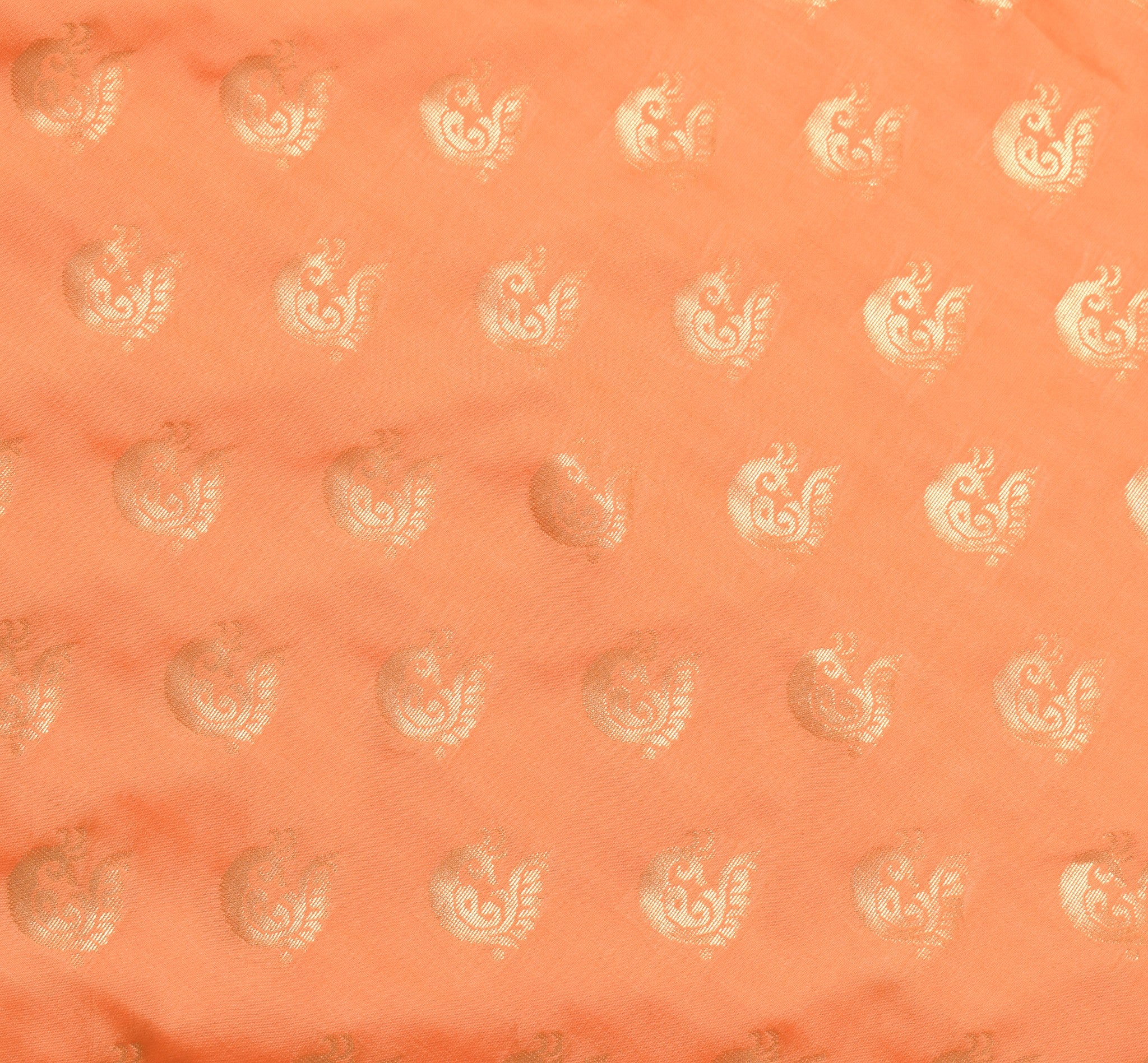 Indian Peachy Orange Sari Banarasi Art Silk Saree with Blouse Gold Zari Weaving