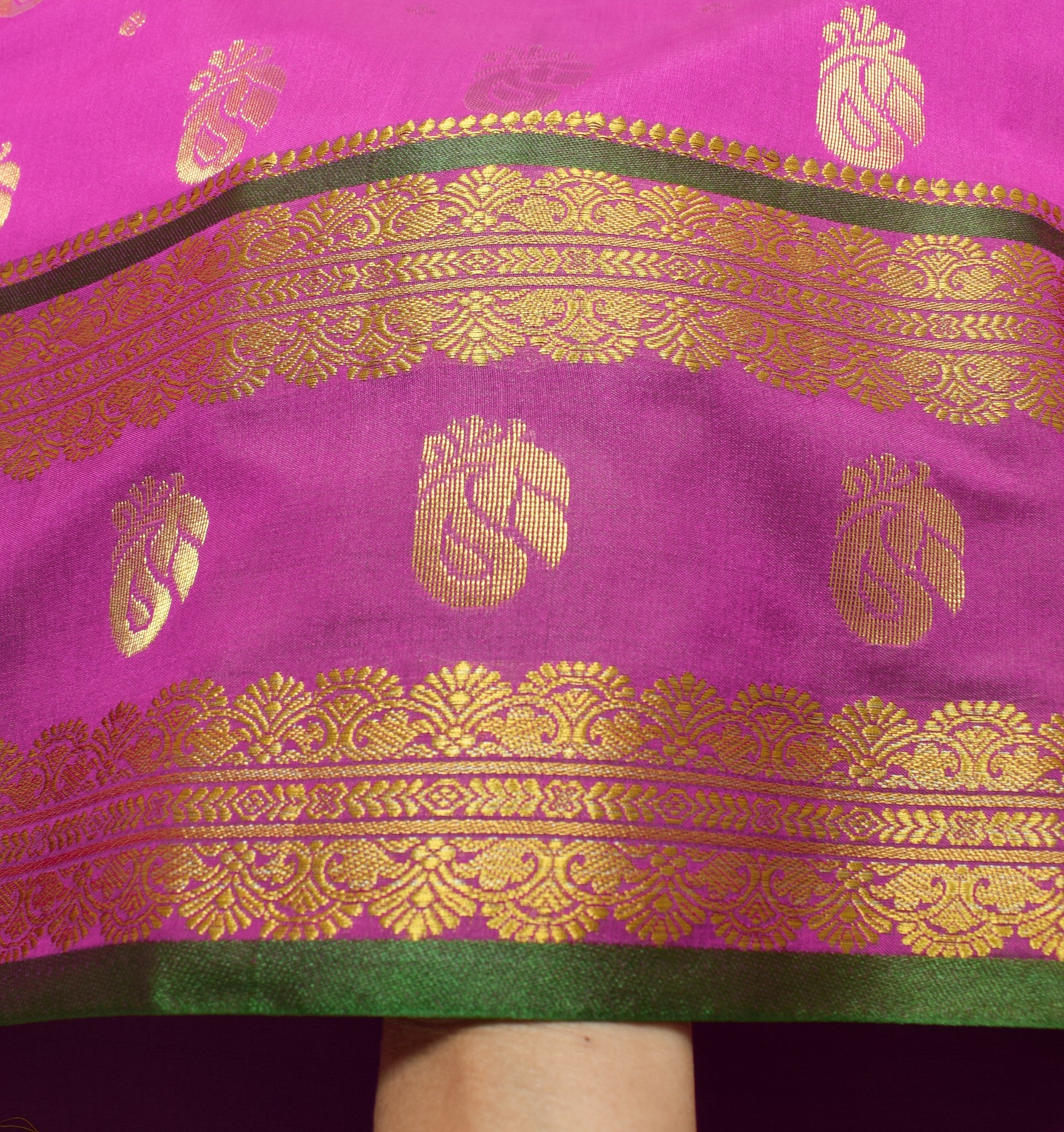 Indian Purple Sari Banarasi Art Cotton Saree with Green Blouse Gold Zari Weaving