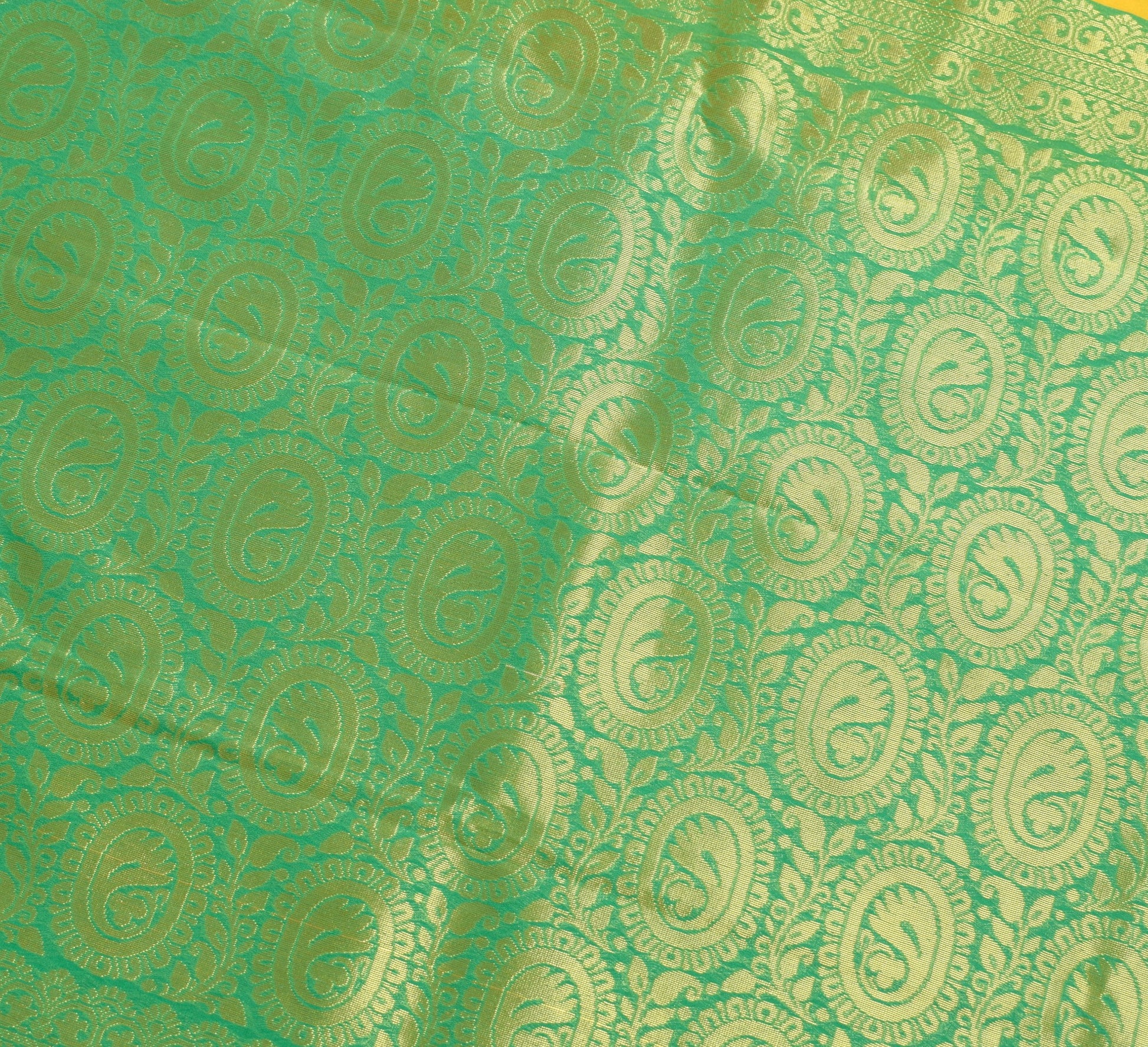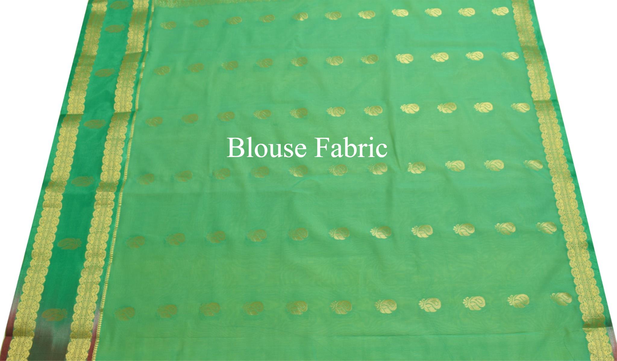 Beautiful Zari Woven Poly Cotton Handloom Saree from Banaras, this sari has all over Zari Woven Motifs with Floral Rich Pallu and one side 7 inches and another side 2.25 inches broad Zari Woven Border. This Saree comes with Matching (UN-Stitched) Blouse Fabric which need to cut before the Anchal/Pallu. This Saree is great for wearing purpose or can be used for making beautiful Dress or Home Decorative items.