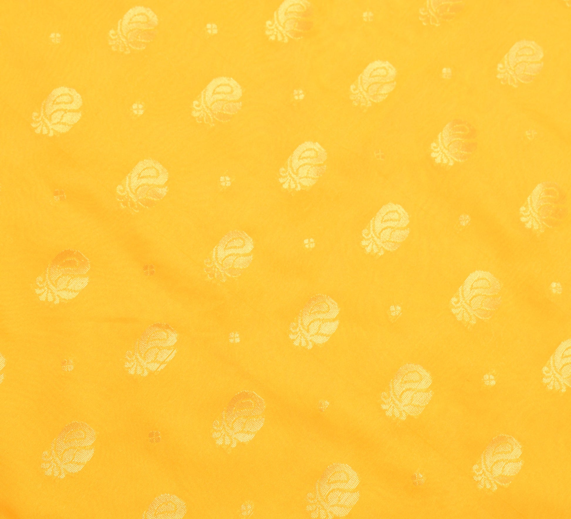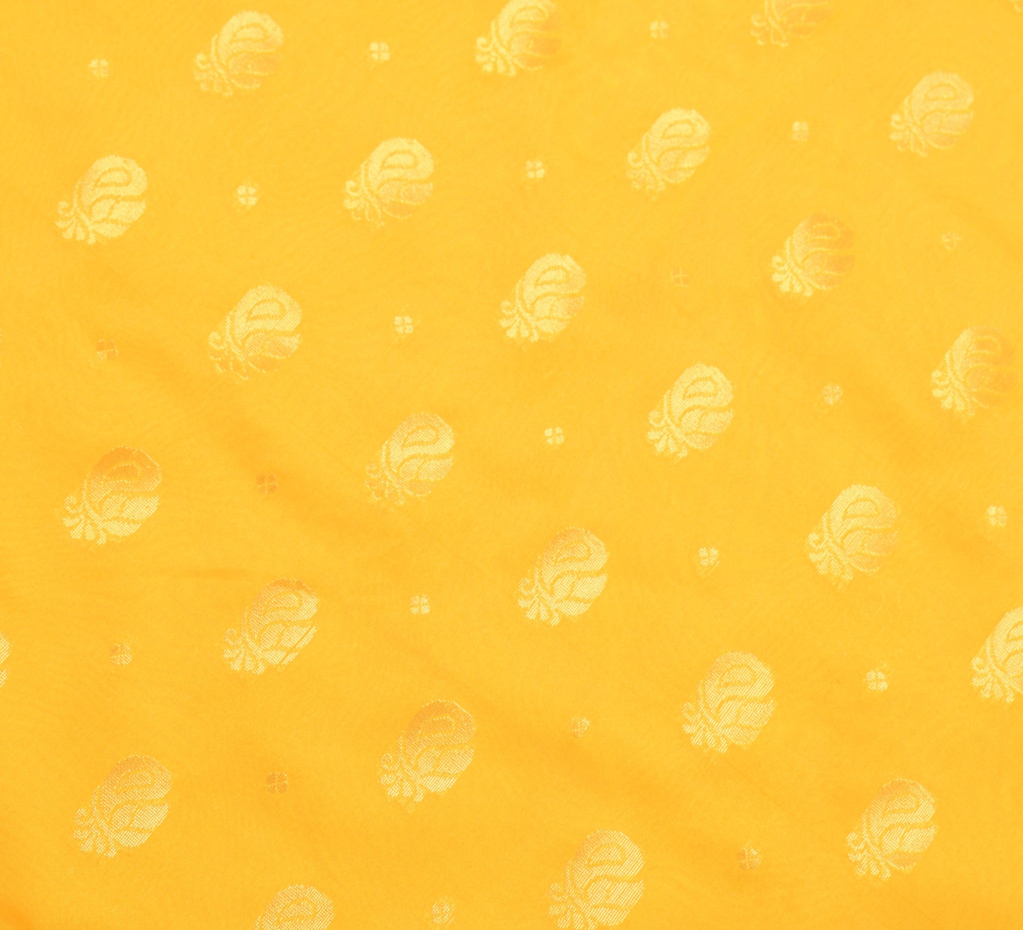 Indian Yellow Banarasi Sari Art Cotton Saree with Blouse Fabric Gold Zari Woven