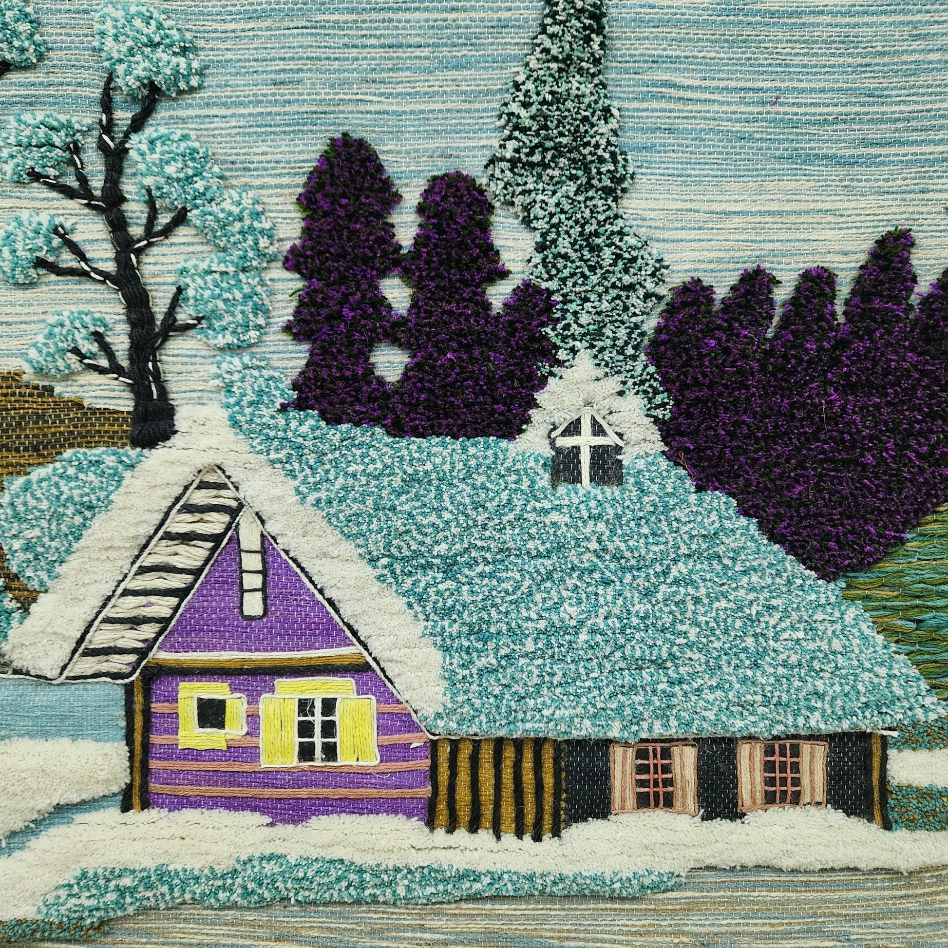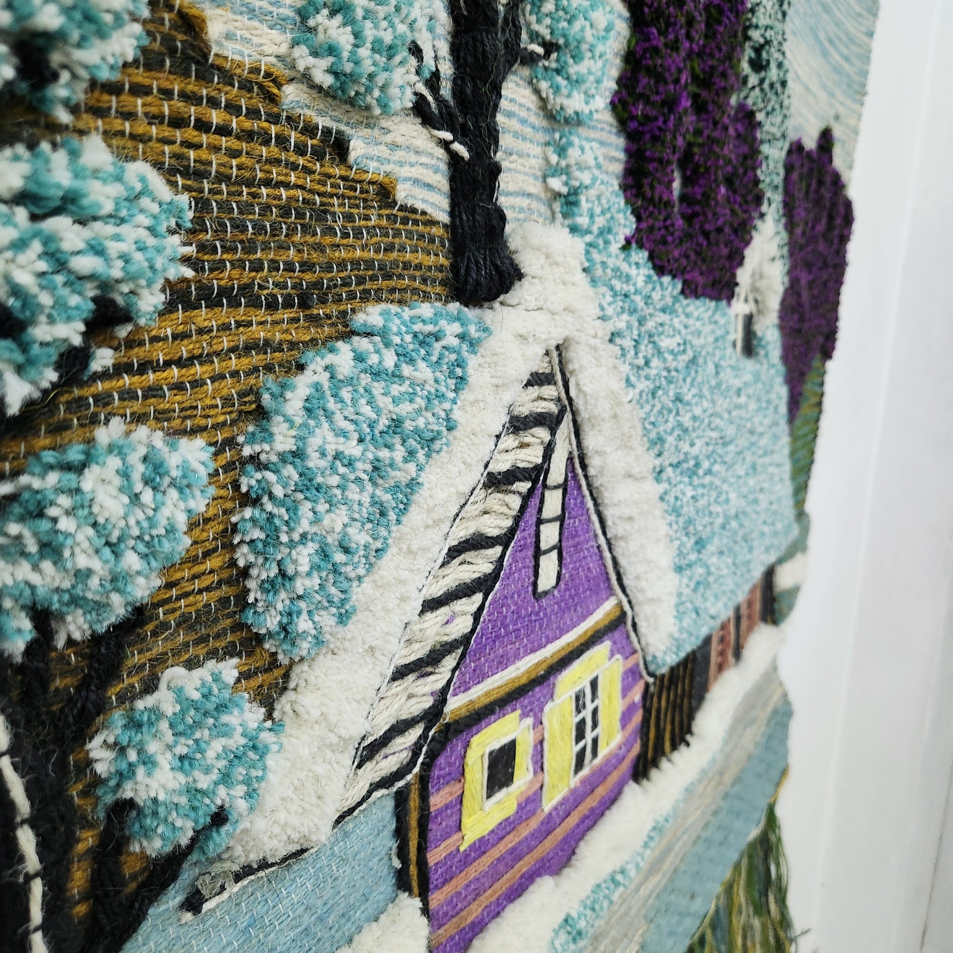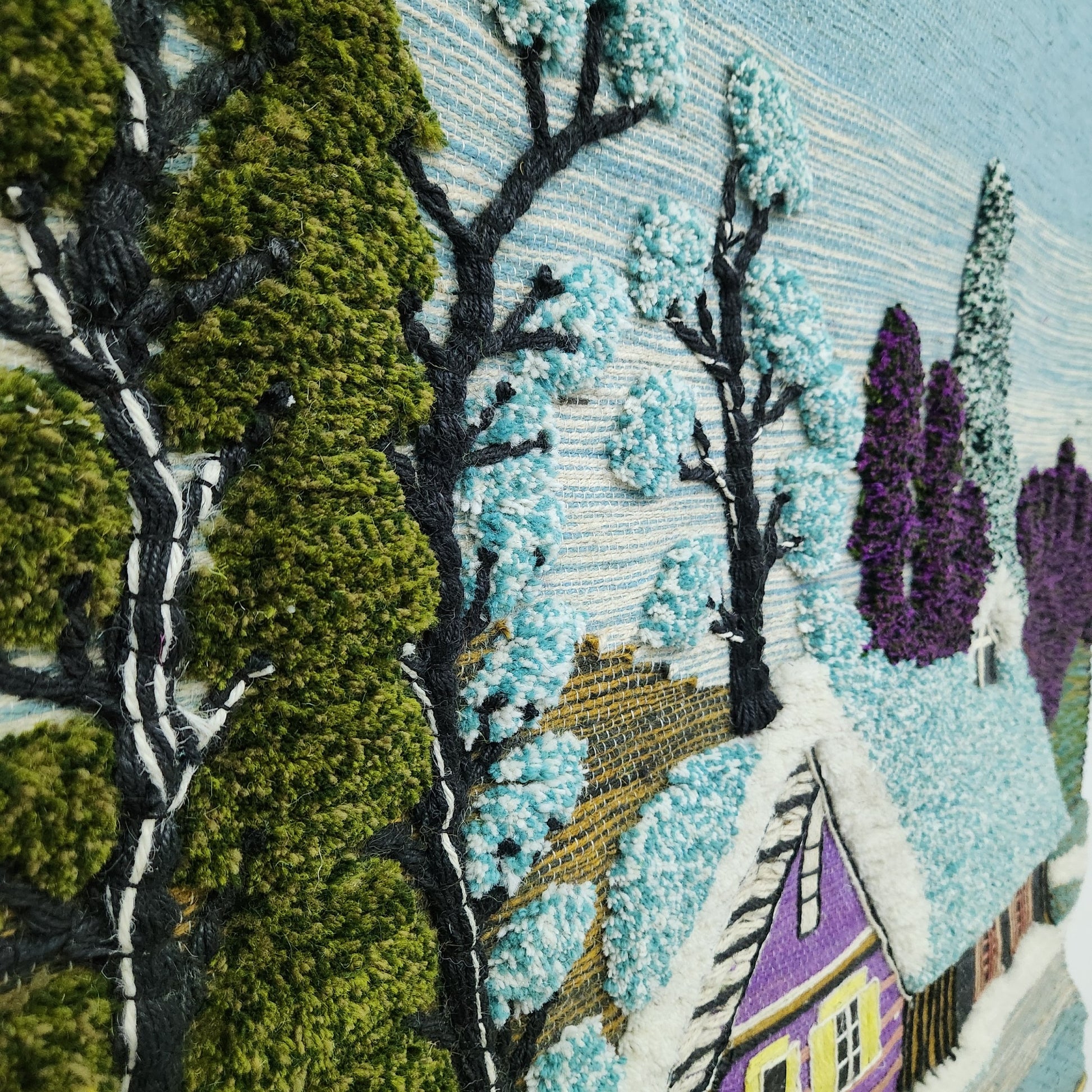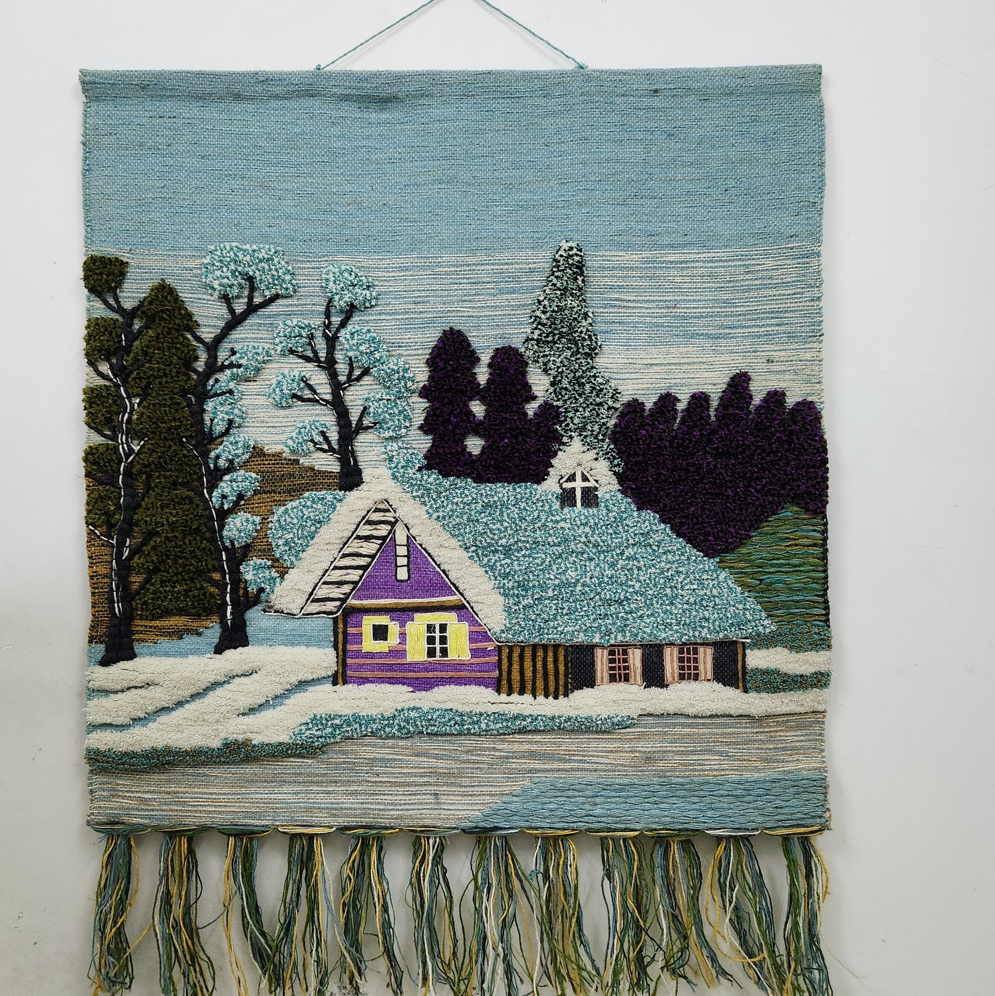 Jute & Wool Wall Hanging HandMade Indian Tapestry 3D Hut Tree Ice Decor