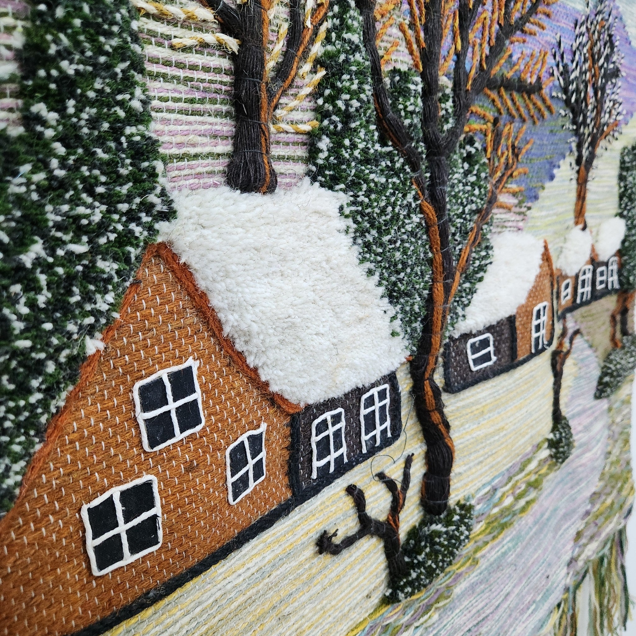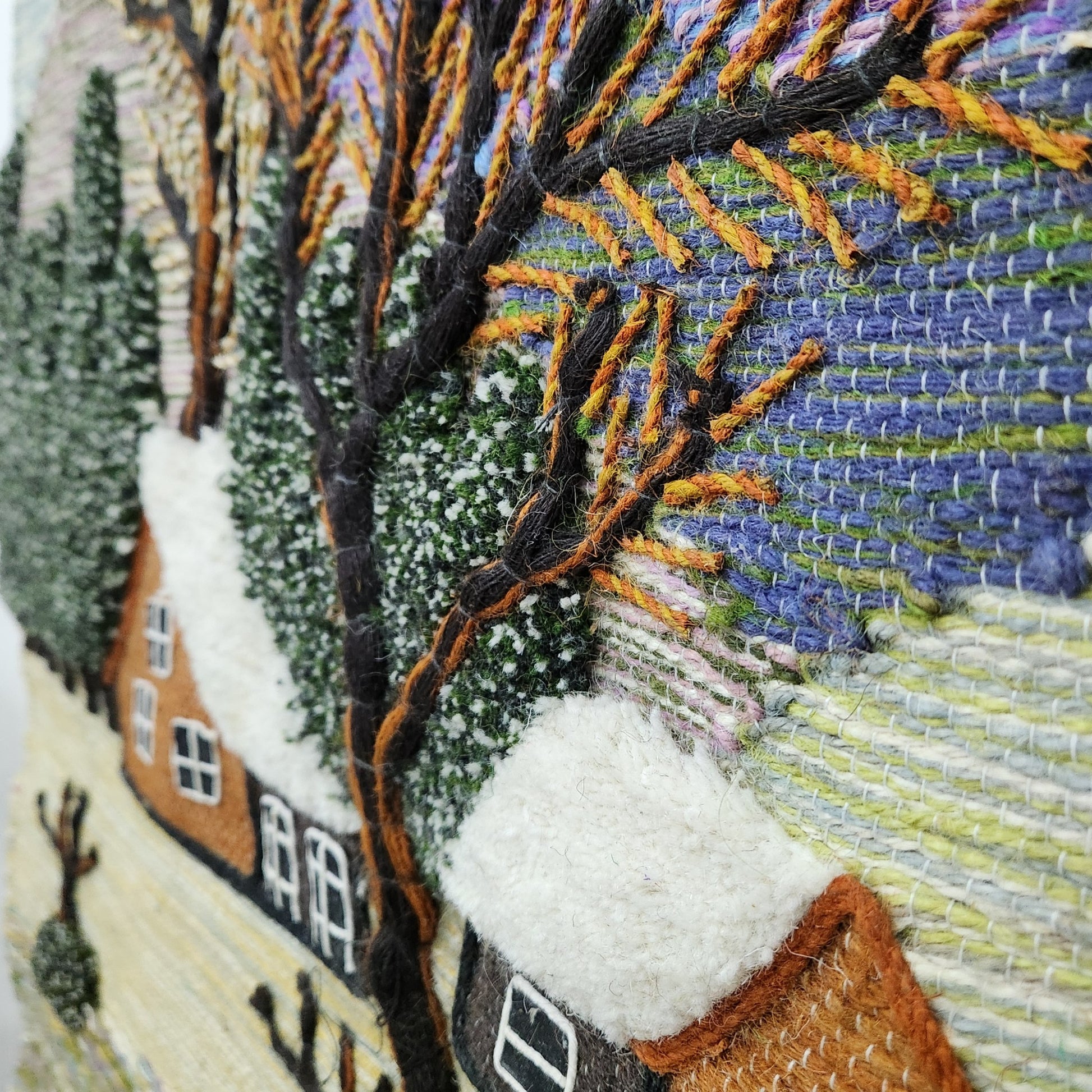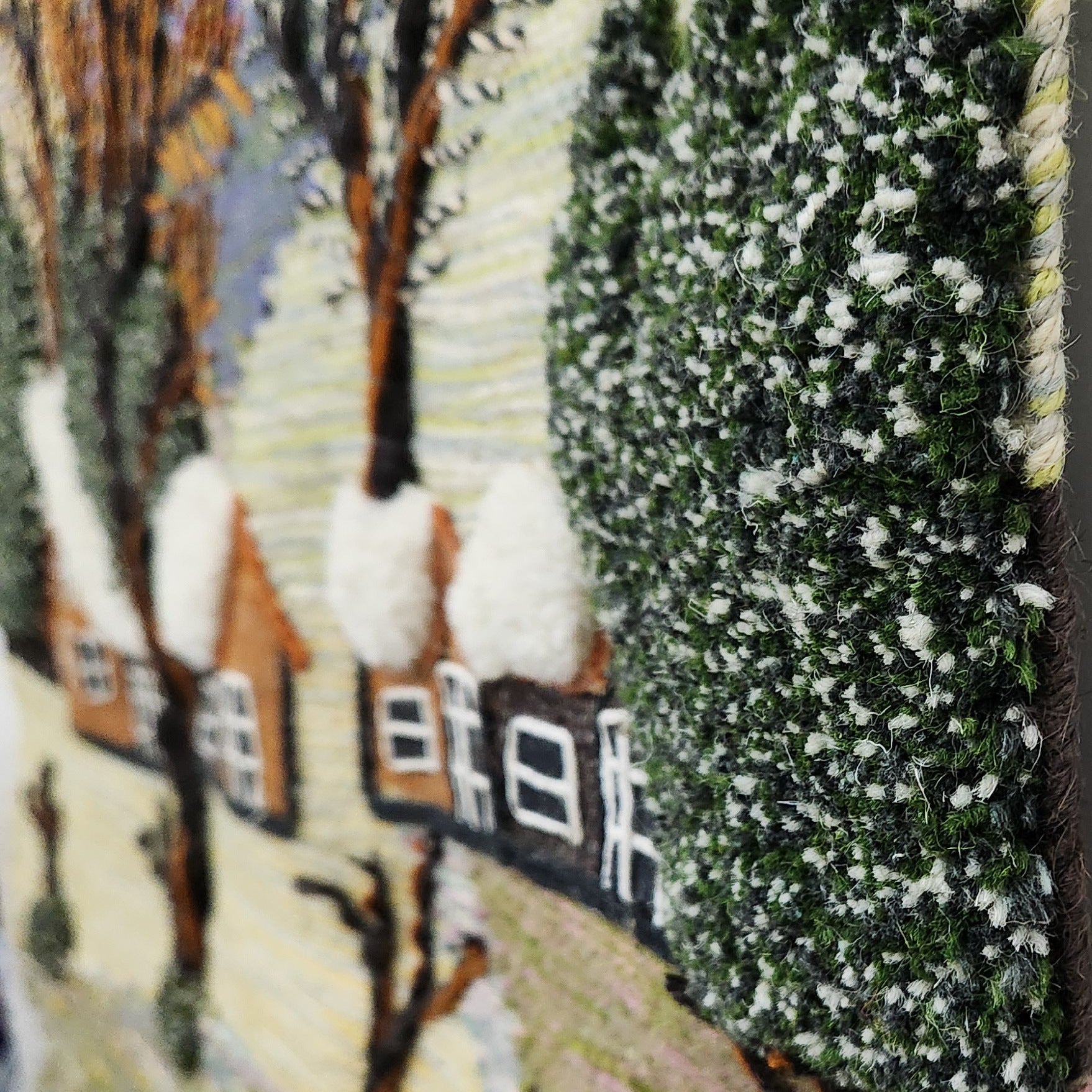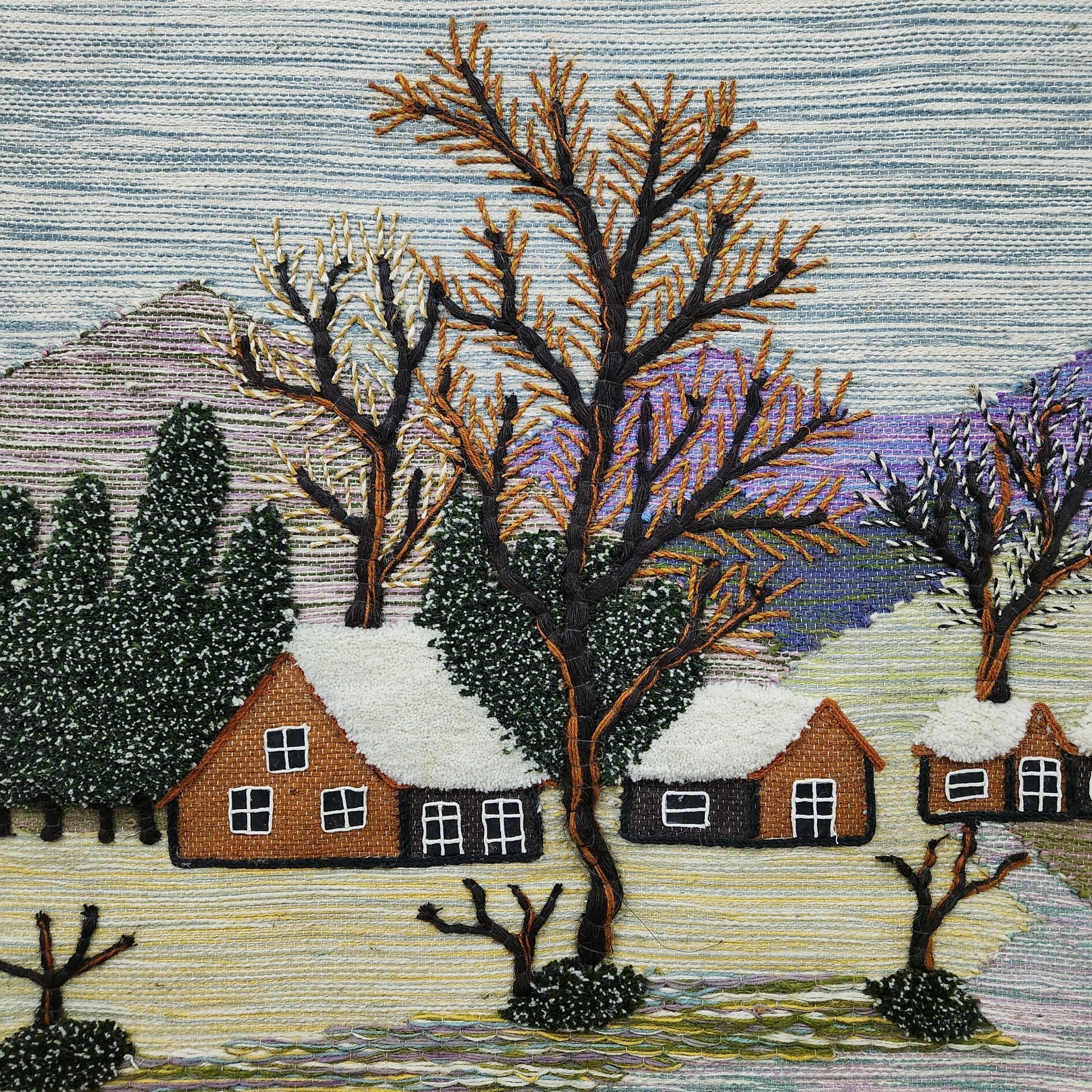 Jute & Wool Wall Hanging HandMade Indian Tapestry 3D Village Scenery Tree Nature
