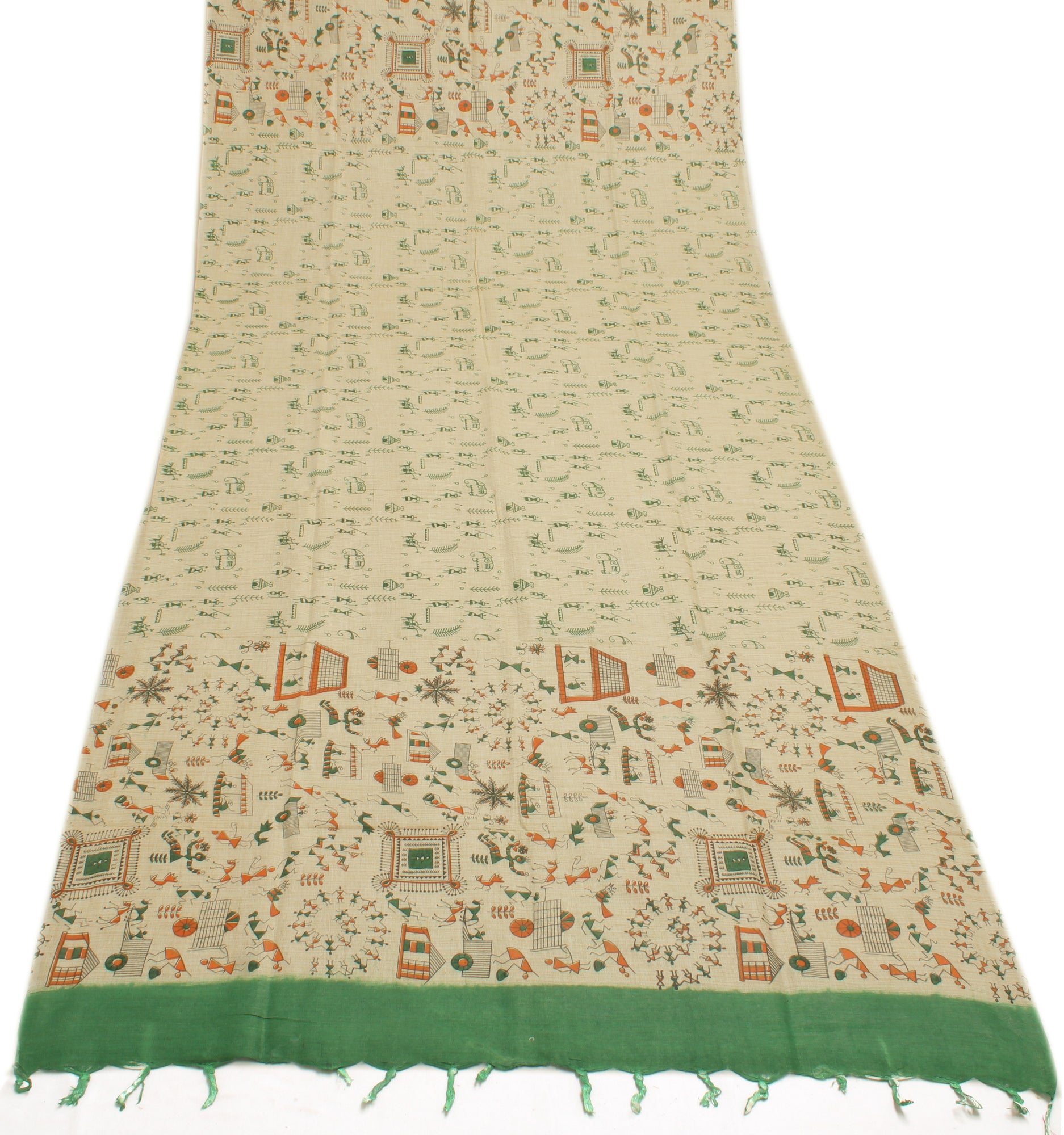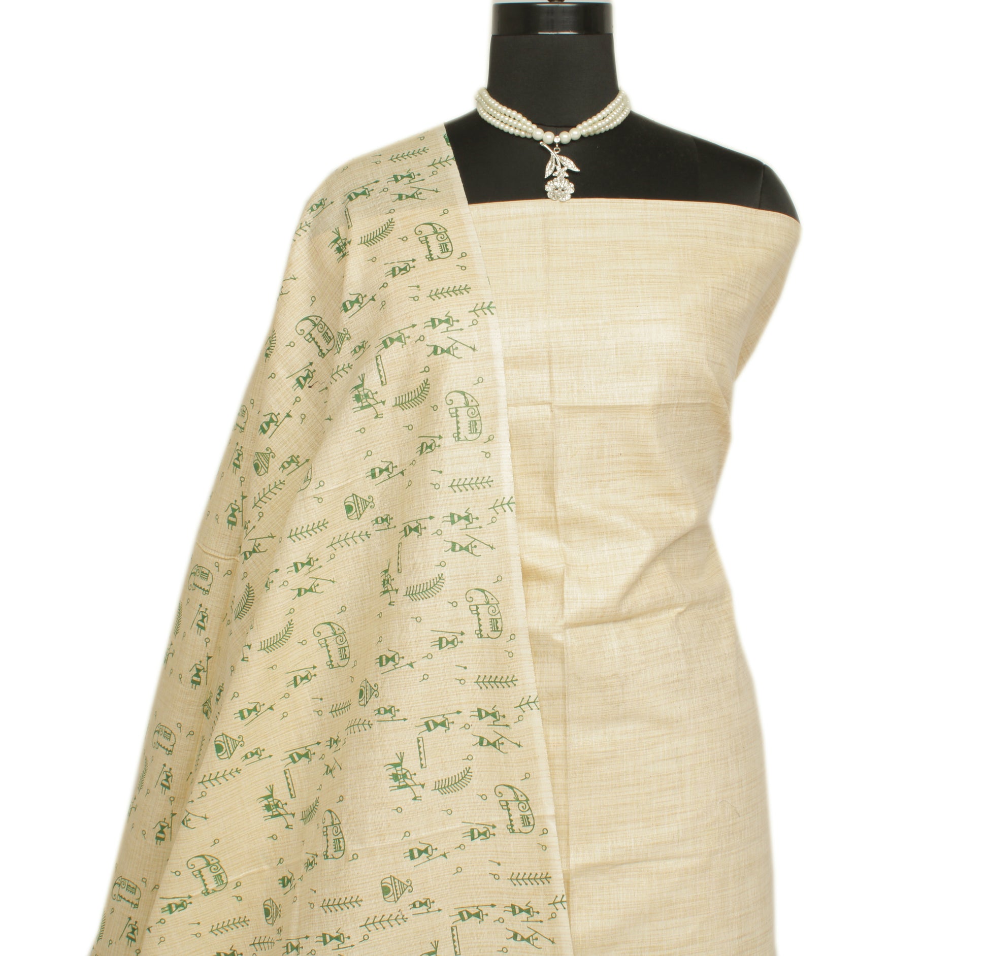 Banarasi Vastra Presents Bhagalpuri Salwar, Kameez Dupatta Set in Pure Khadi Cotton Silk with Printed Human & Birds Design.