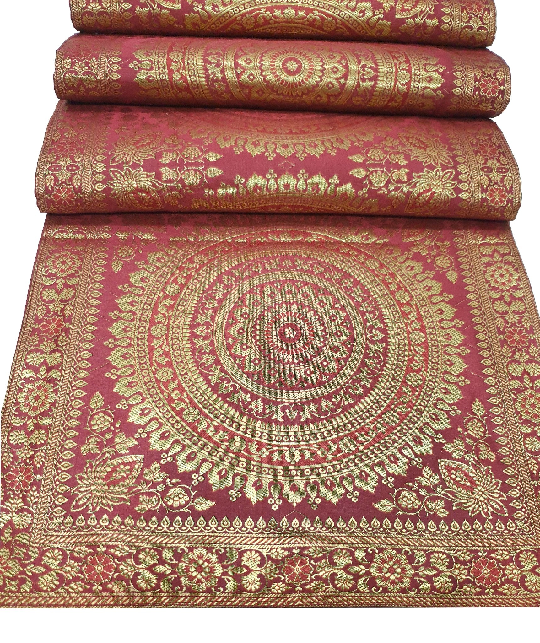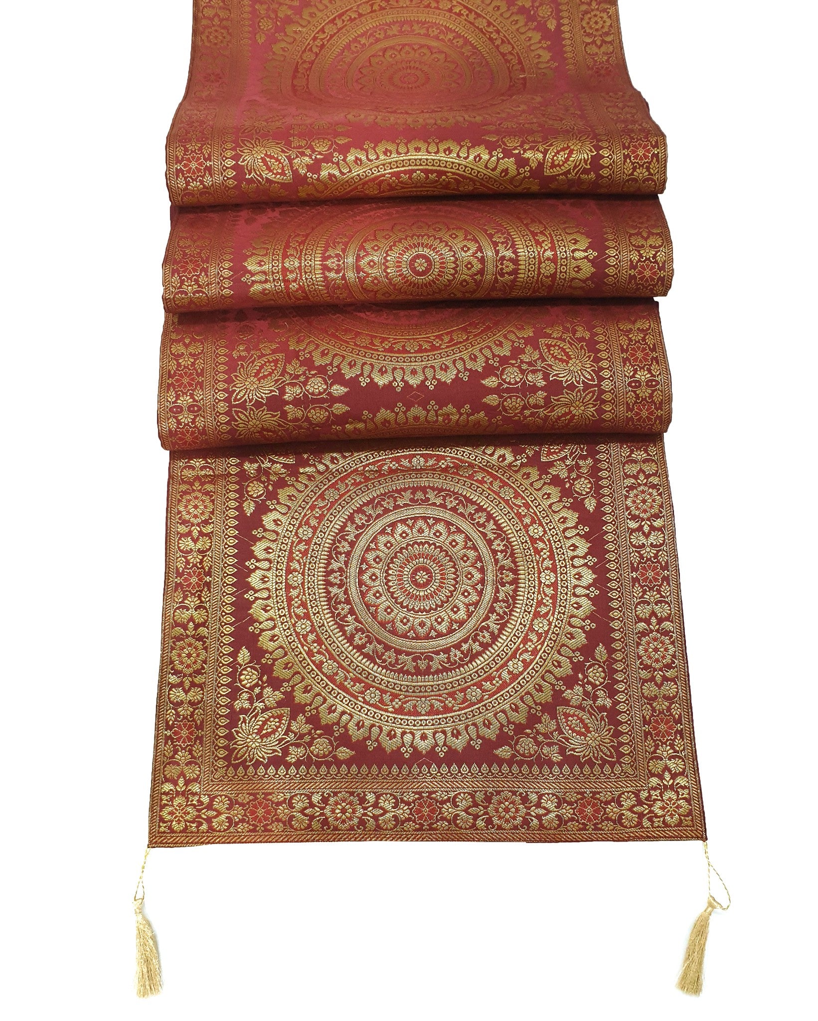 Maroon Banarasi Table Runner 72x16" Silk Brocade Mandala Dining Decor Cloth Gift