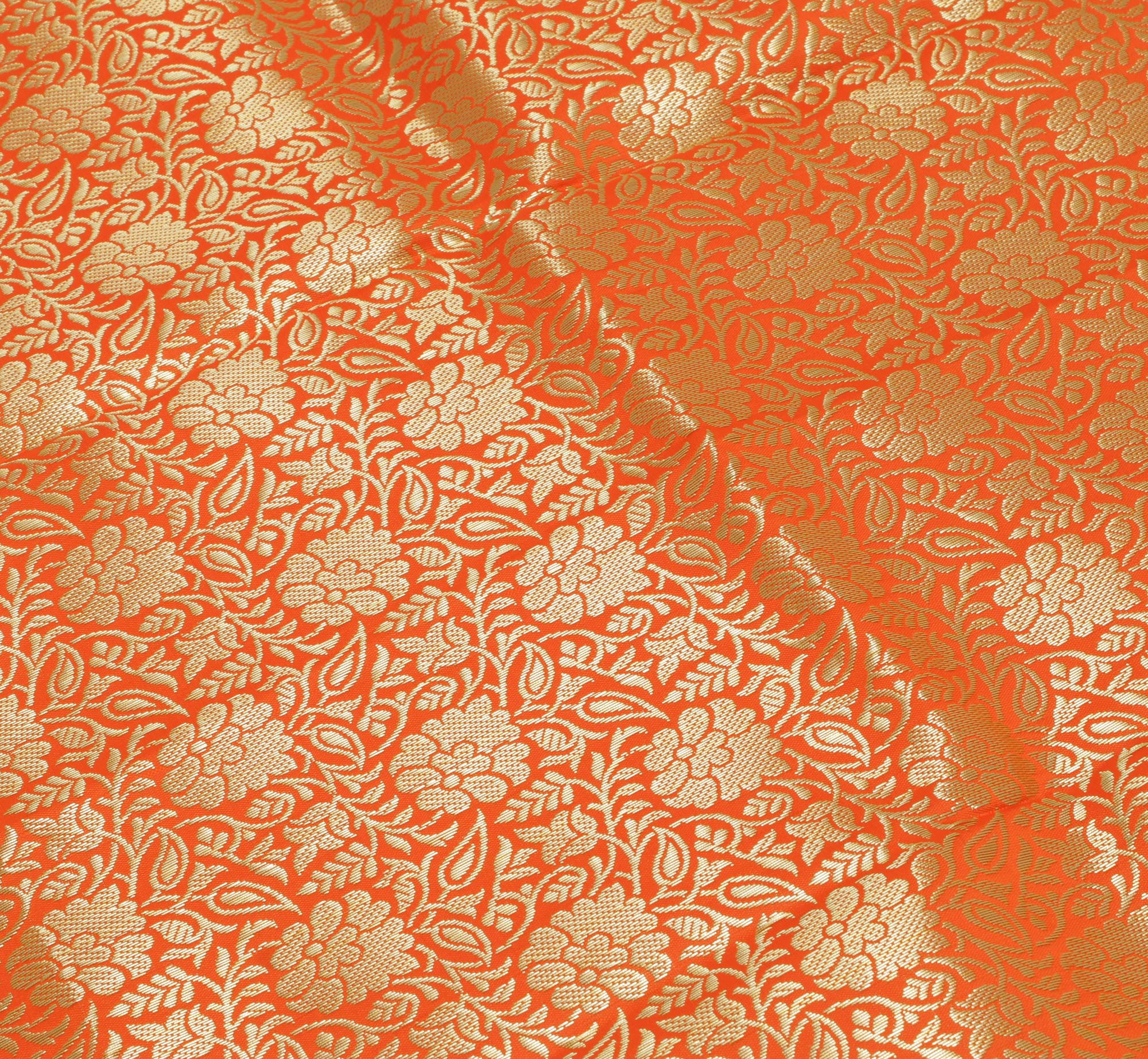 Orange Banarasi Dupatta Indian Art Silk Woven Zari Brocade Long Stole Scarves