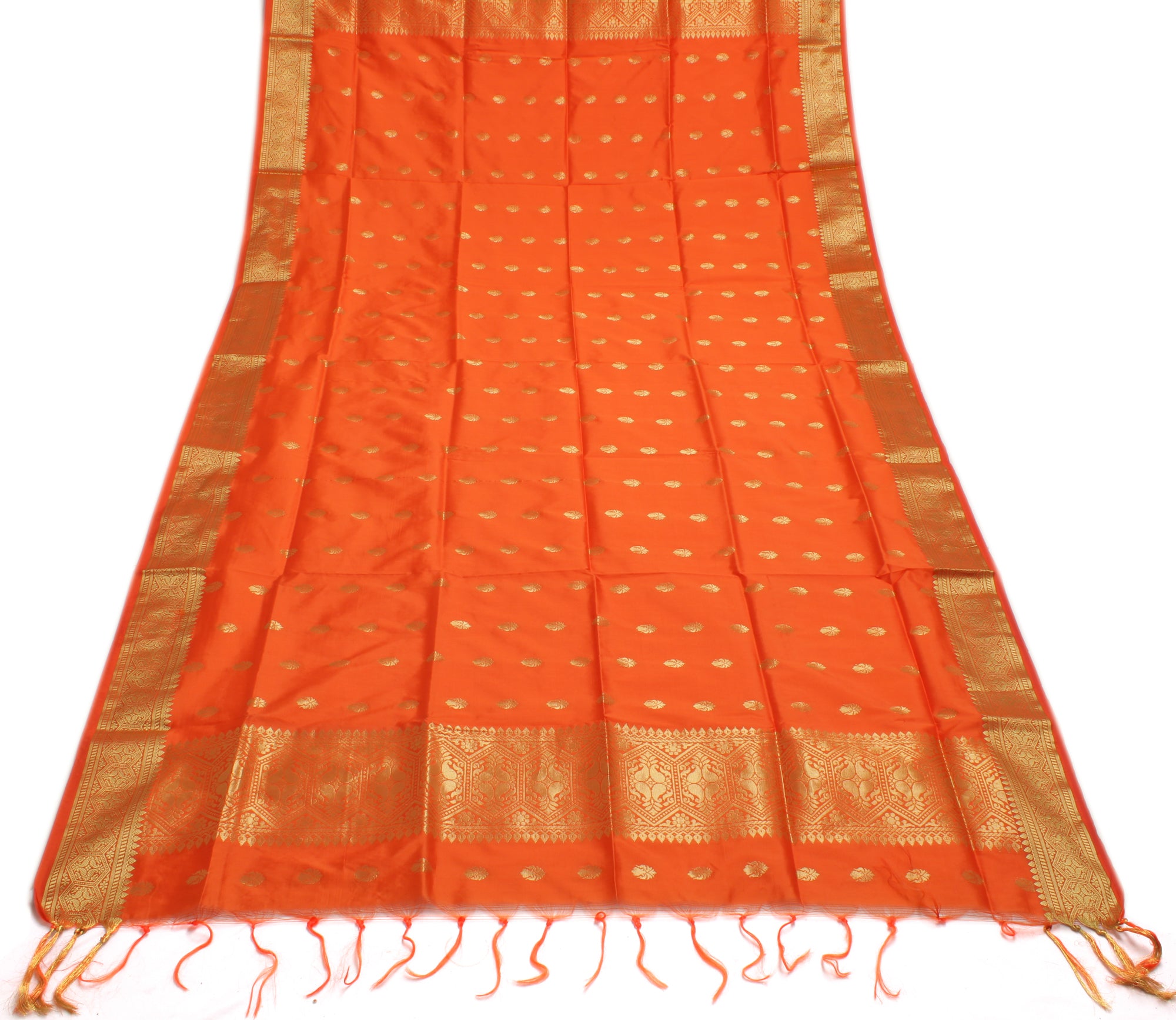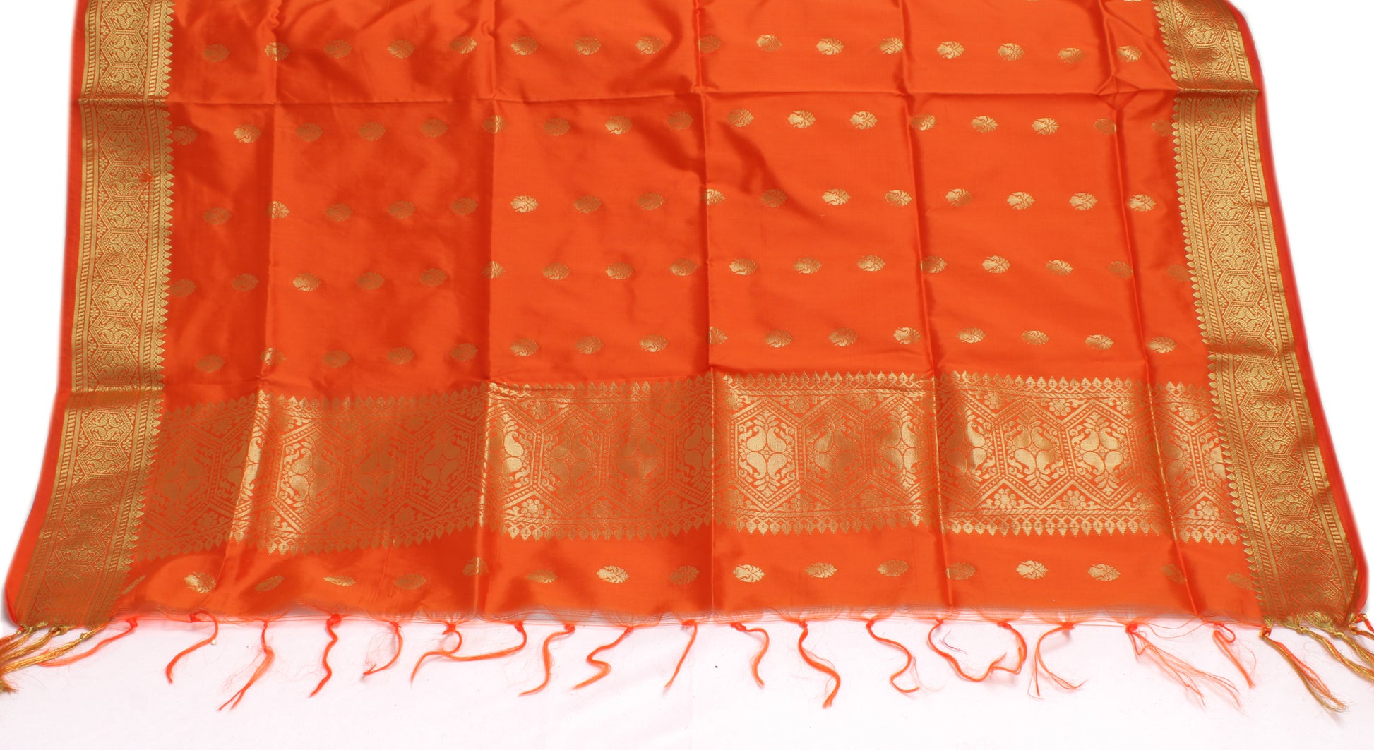 Orange Banarasi Dupatta Indian Art Silk Woven Zari Brocade Long Stole Scarves
