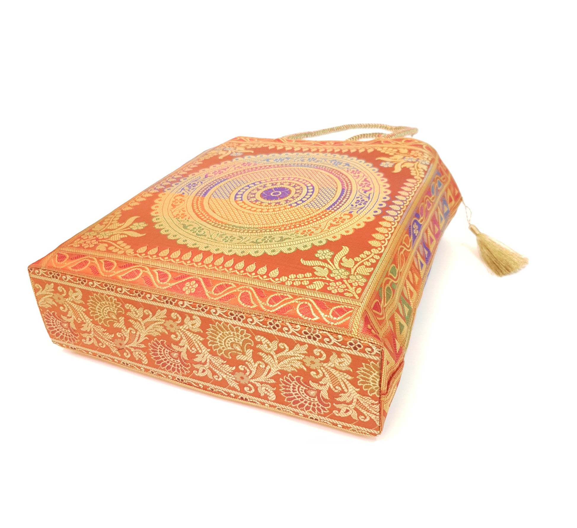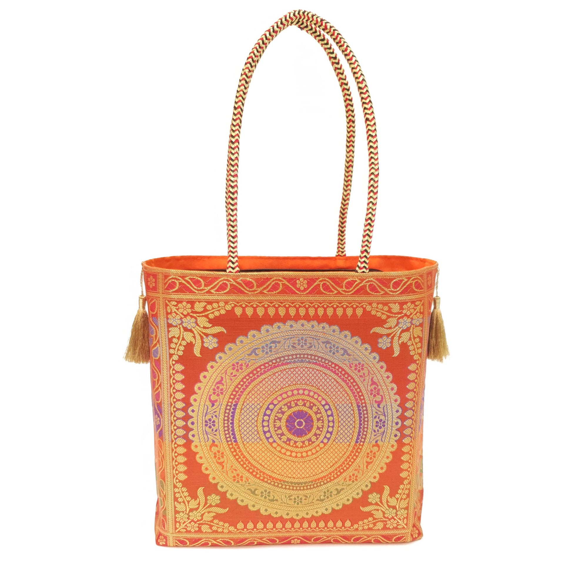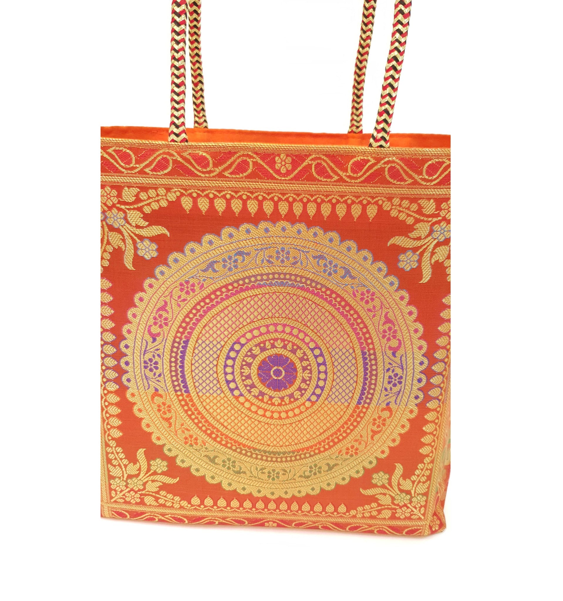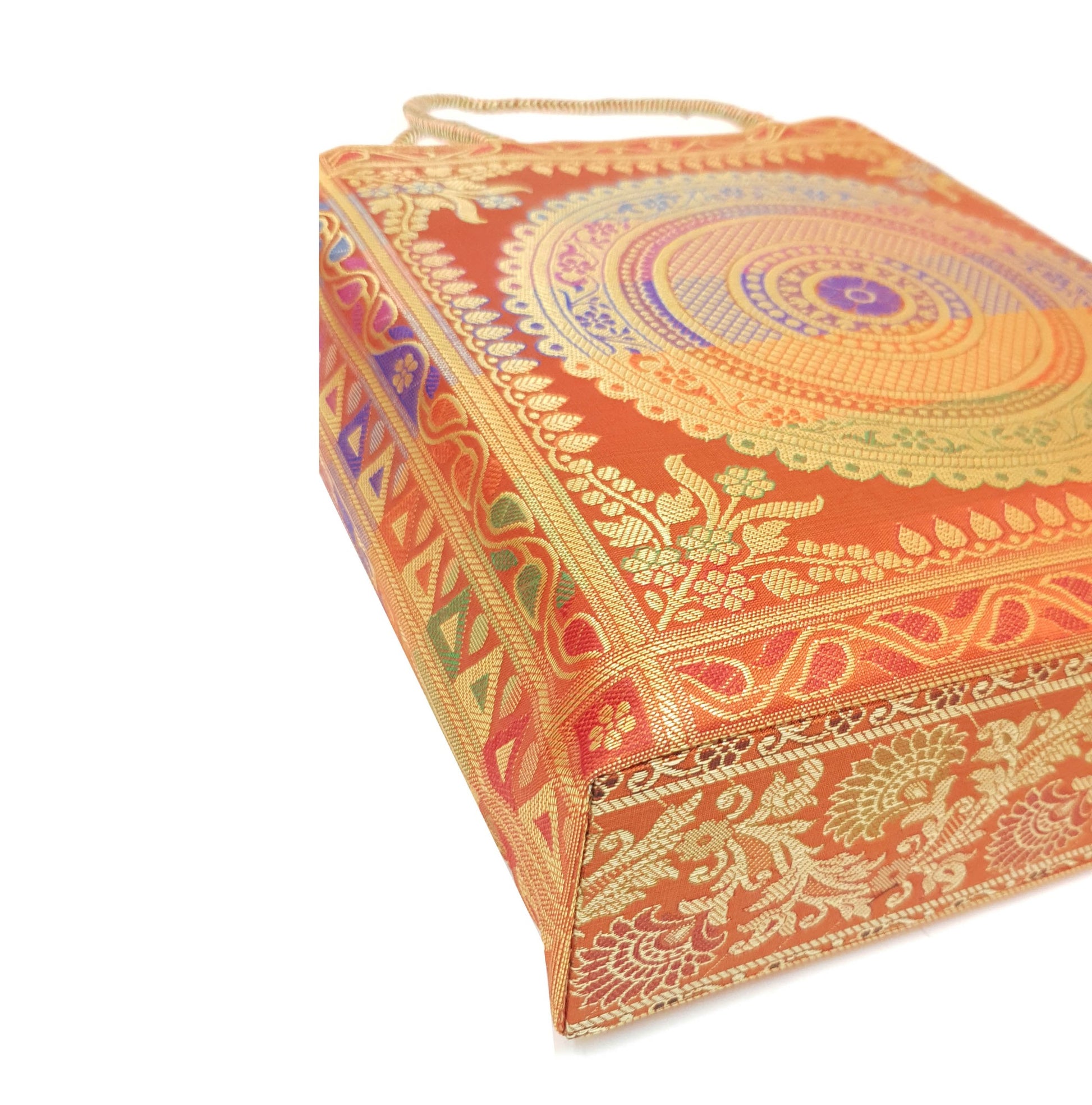 Orange Mandala Handbag Indian Ethnic Woven Zari Brocade Shoulder Hand Bag