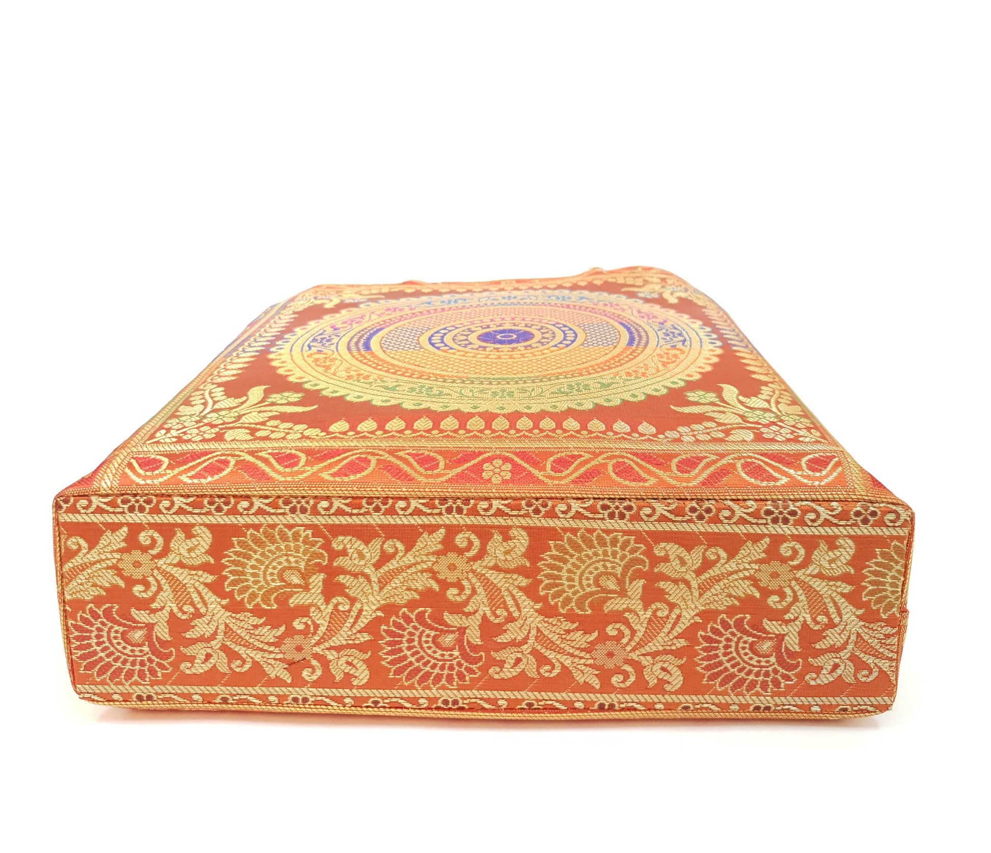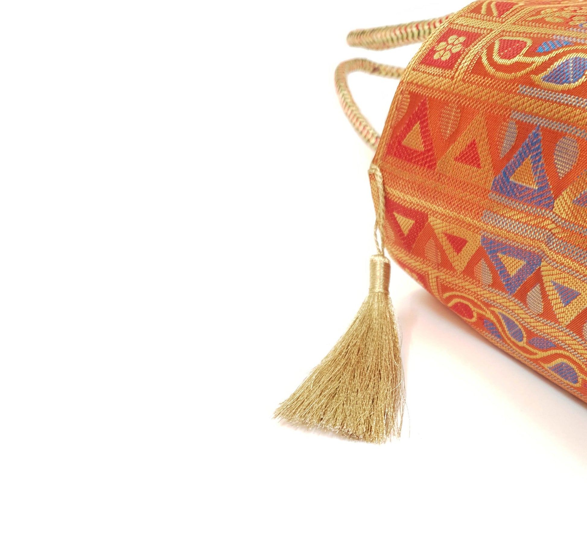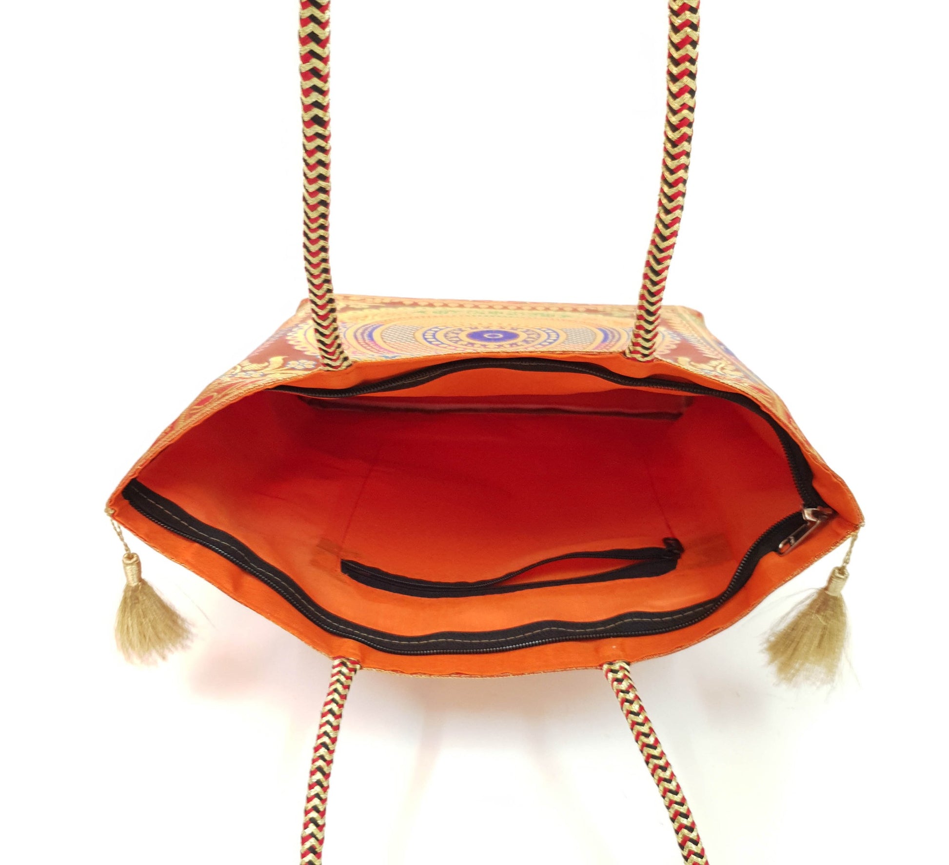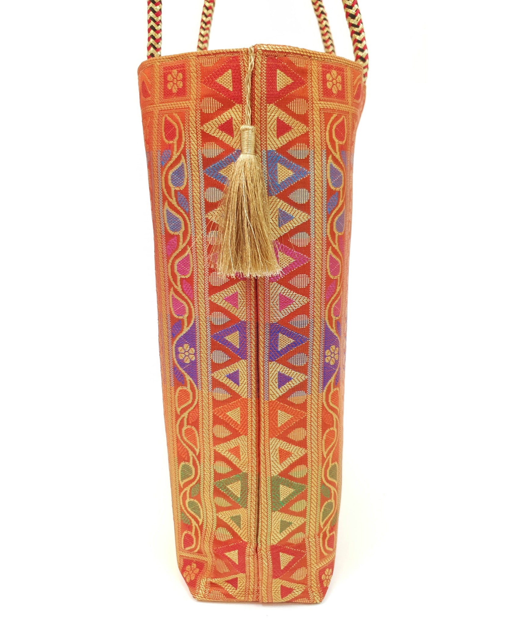 Orange Mandala Handbag Indian Ethnic Woven Zari Brocade Shoulder Hand Bag