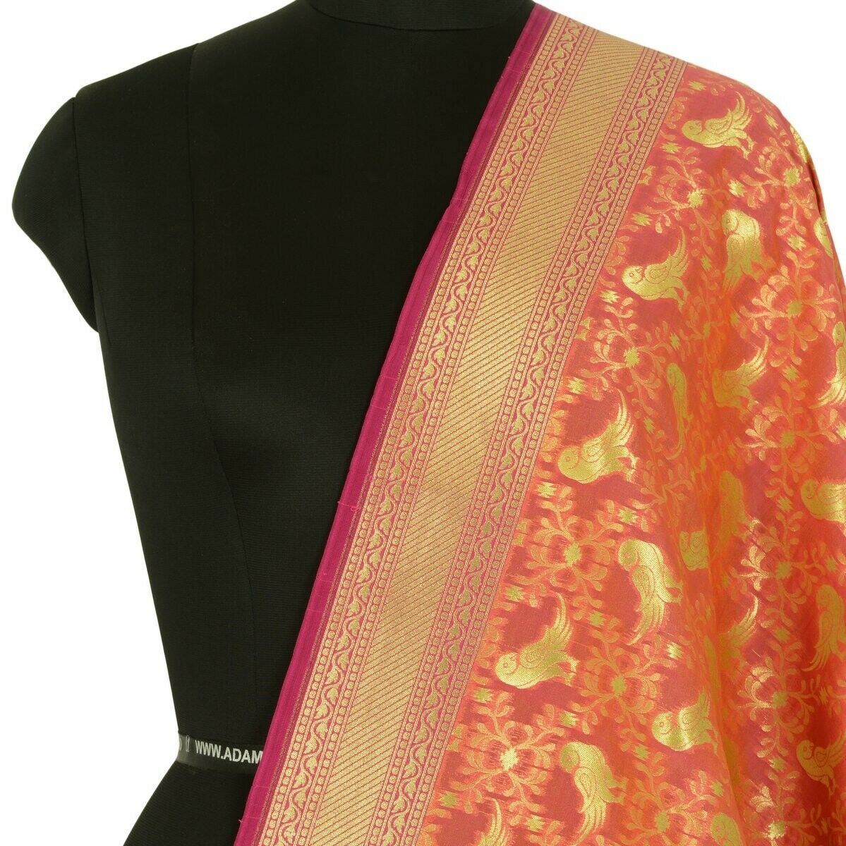 Peach Banarasi Dupatta Birds Woven Zari Brocade Indian Long Stole Wrap Scarves