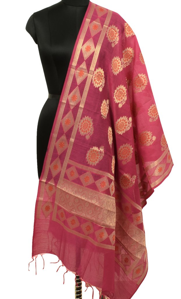 Pink Banarasi Dupatta Indian Art Silk Woven Zari Brocade Long Stole Scarves