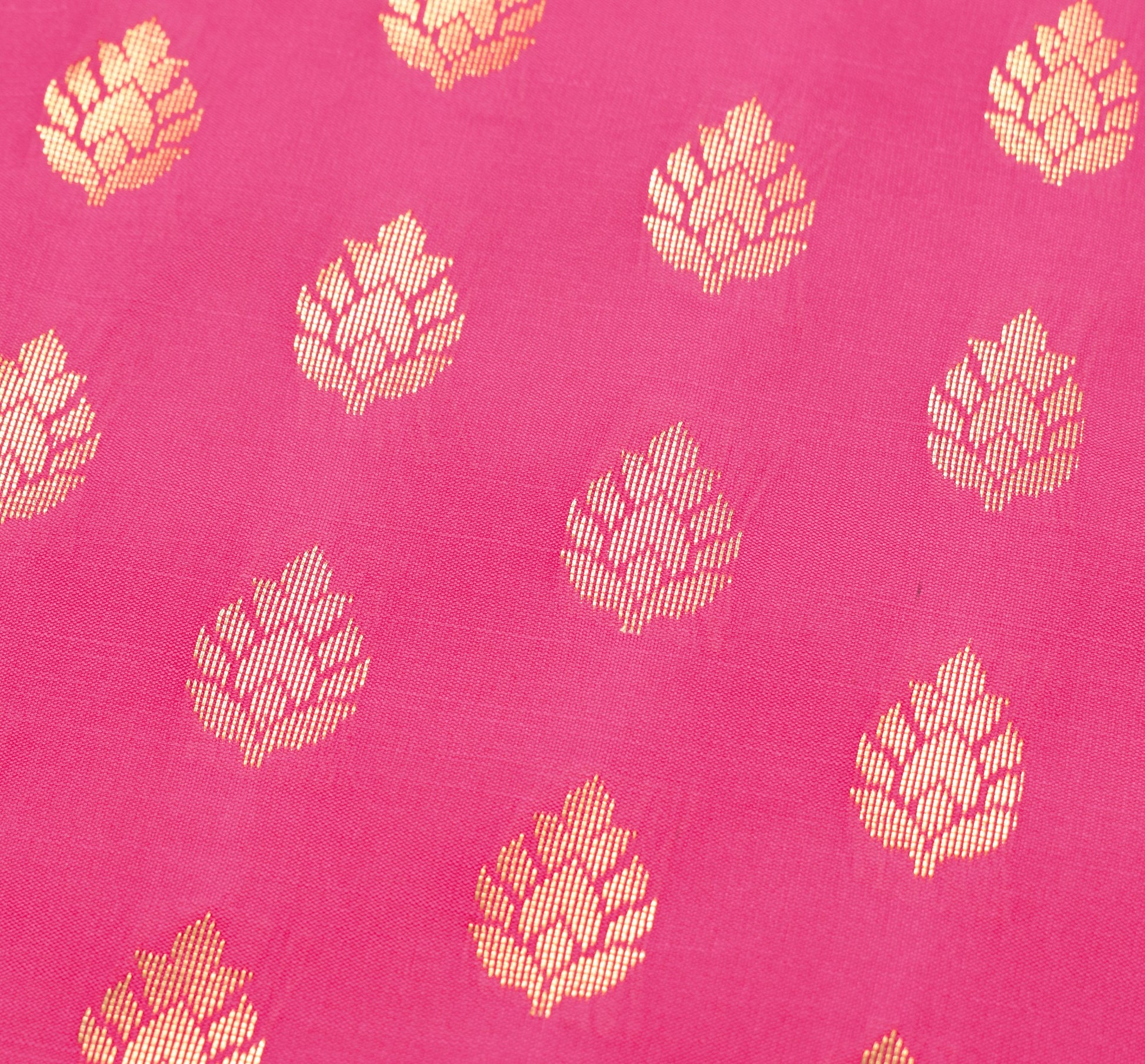Pink Blue Banarasi Sari Art Silk Zari Woven Leaf Motifs Saree with Blouse Fabric