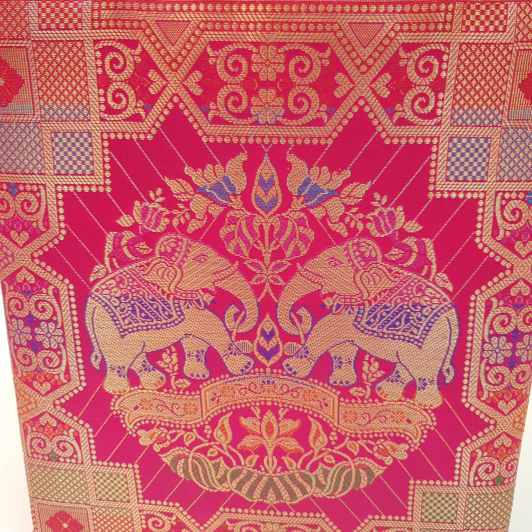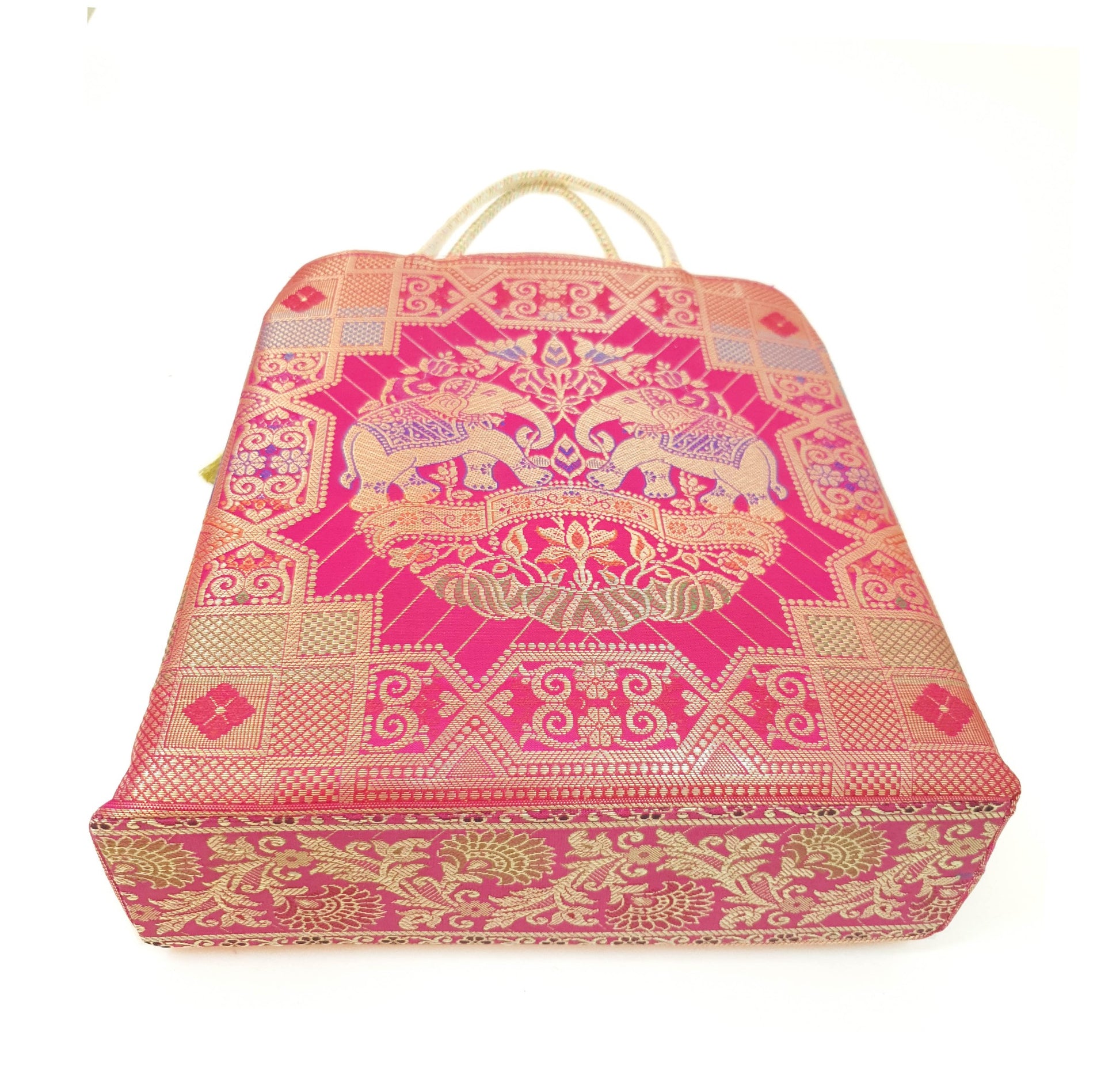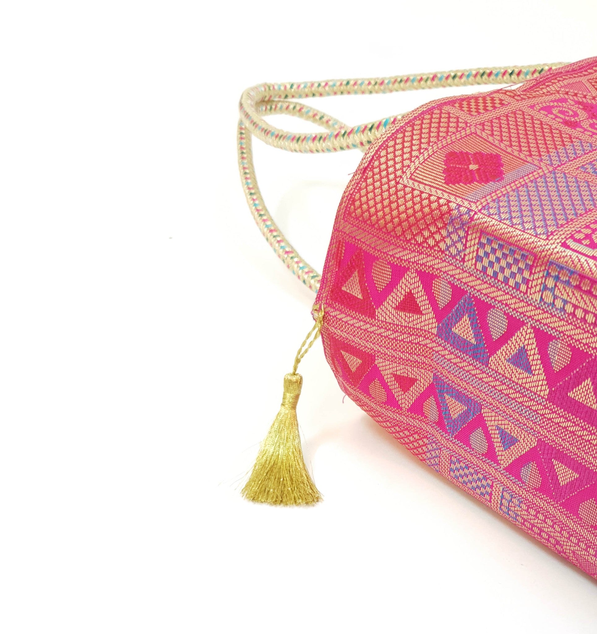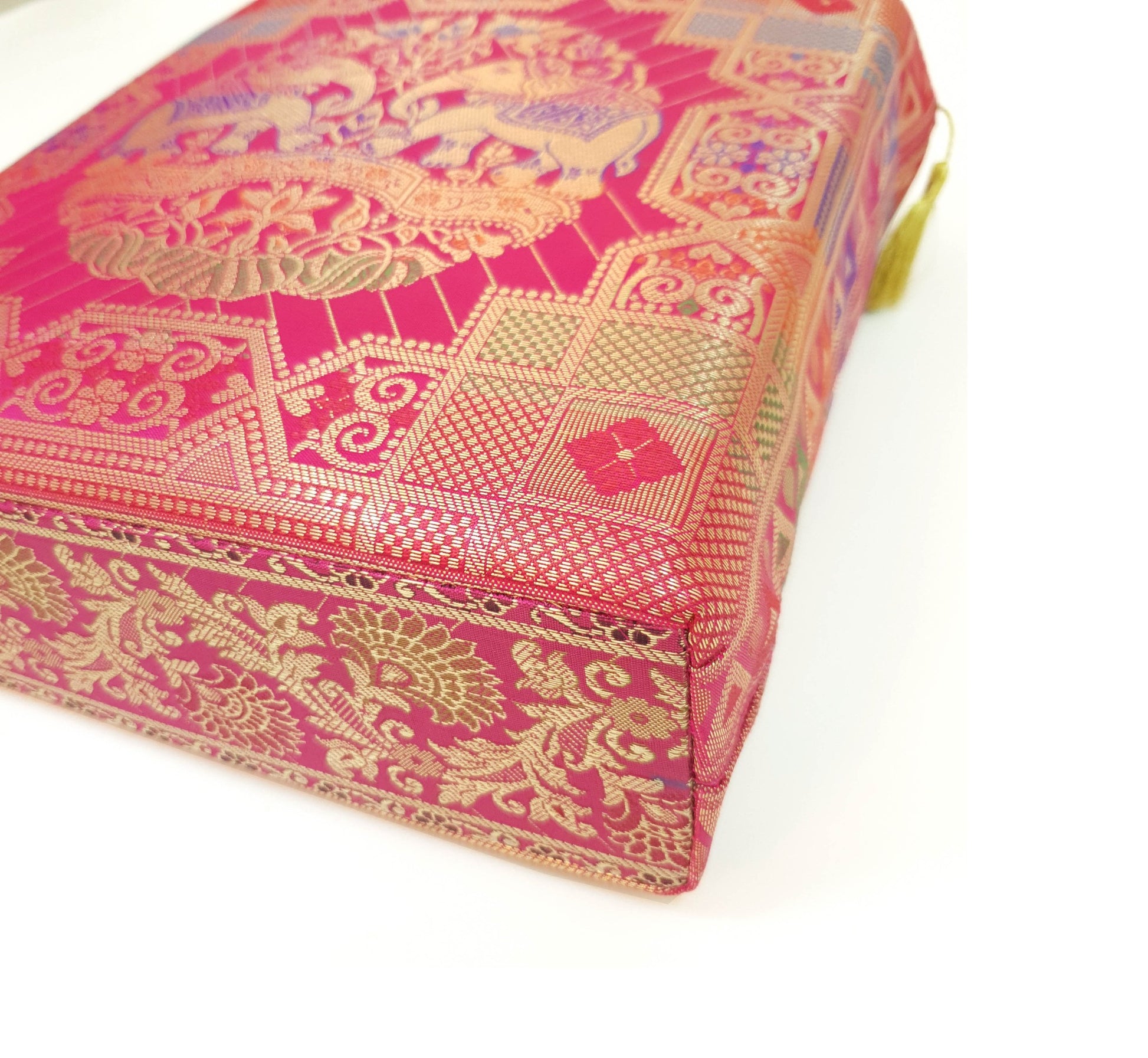 Pink Hand Bag Banarasi Zari Brocade Traditional Golden Tassels in Elephant Motif
