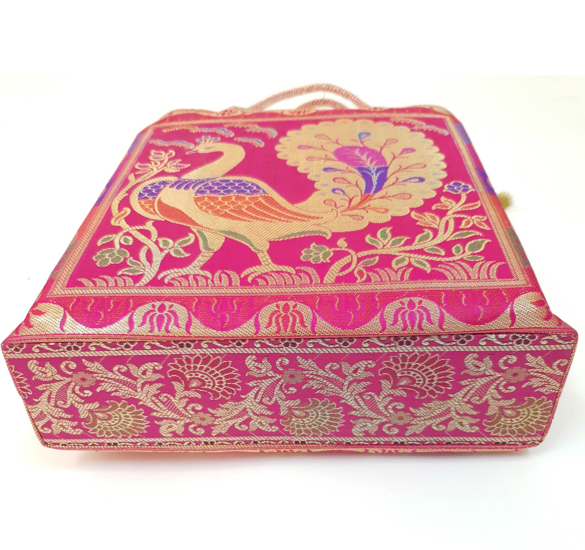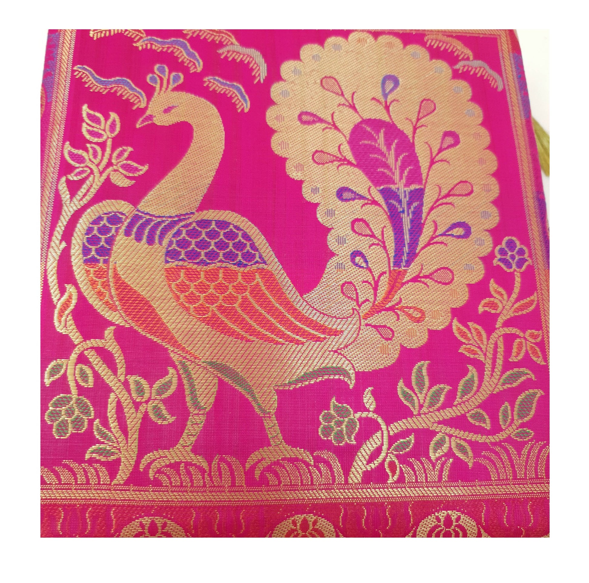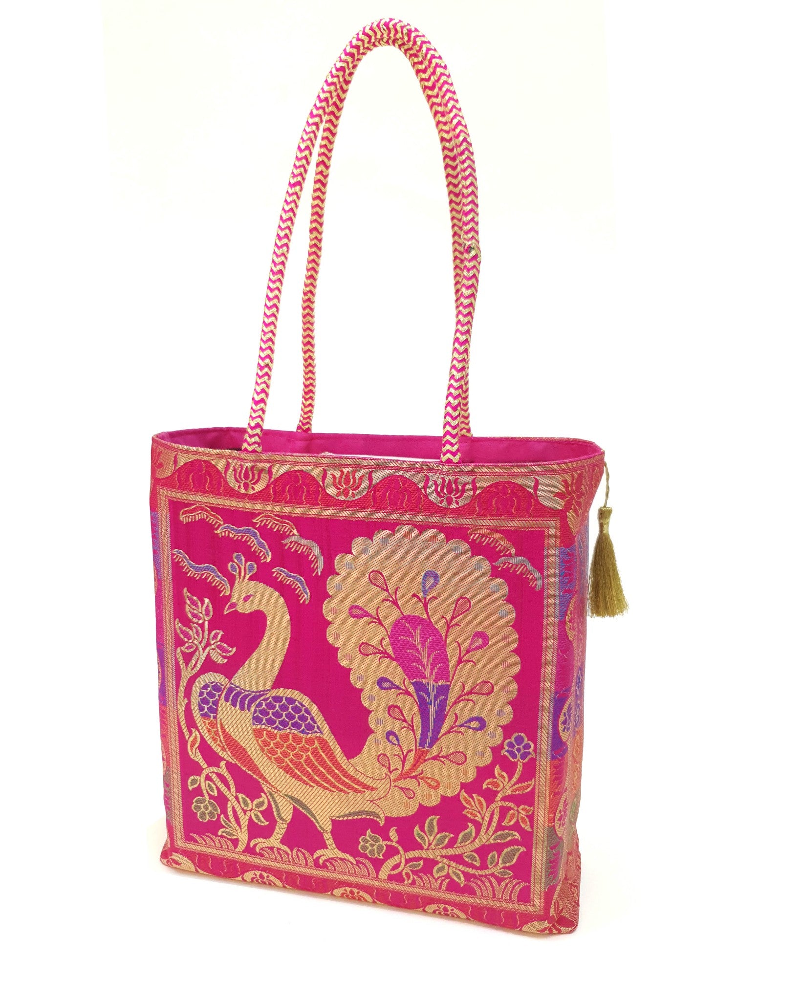Pink Handbag Indian Ethnic Woven Zari Brocade Fabric Peacock Shoulder Hand Bag