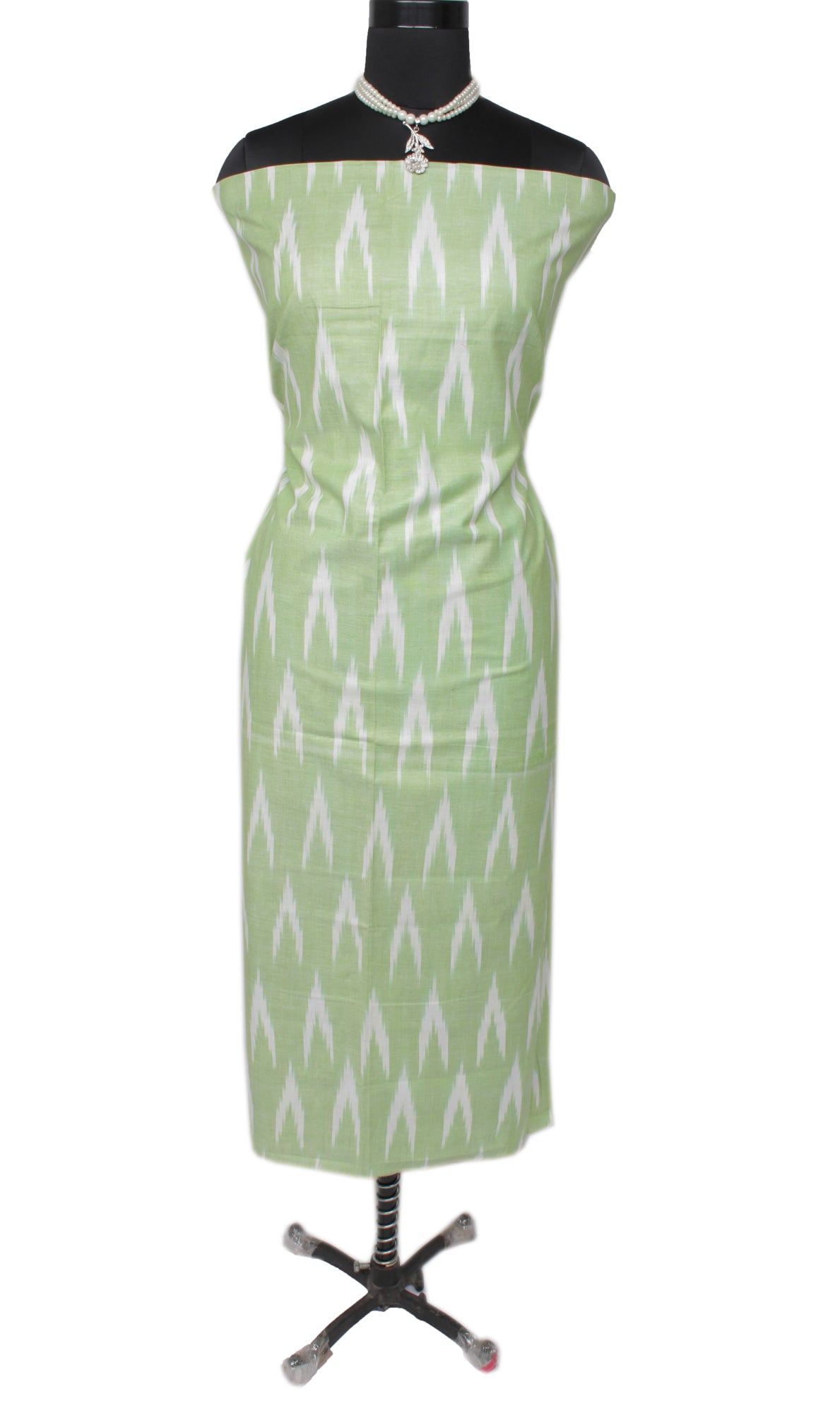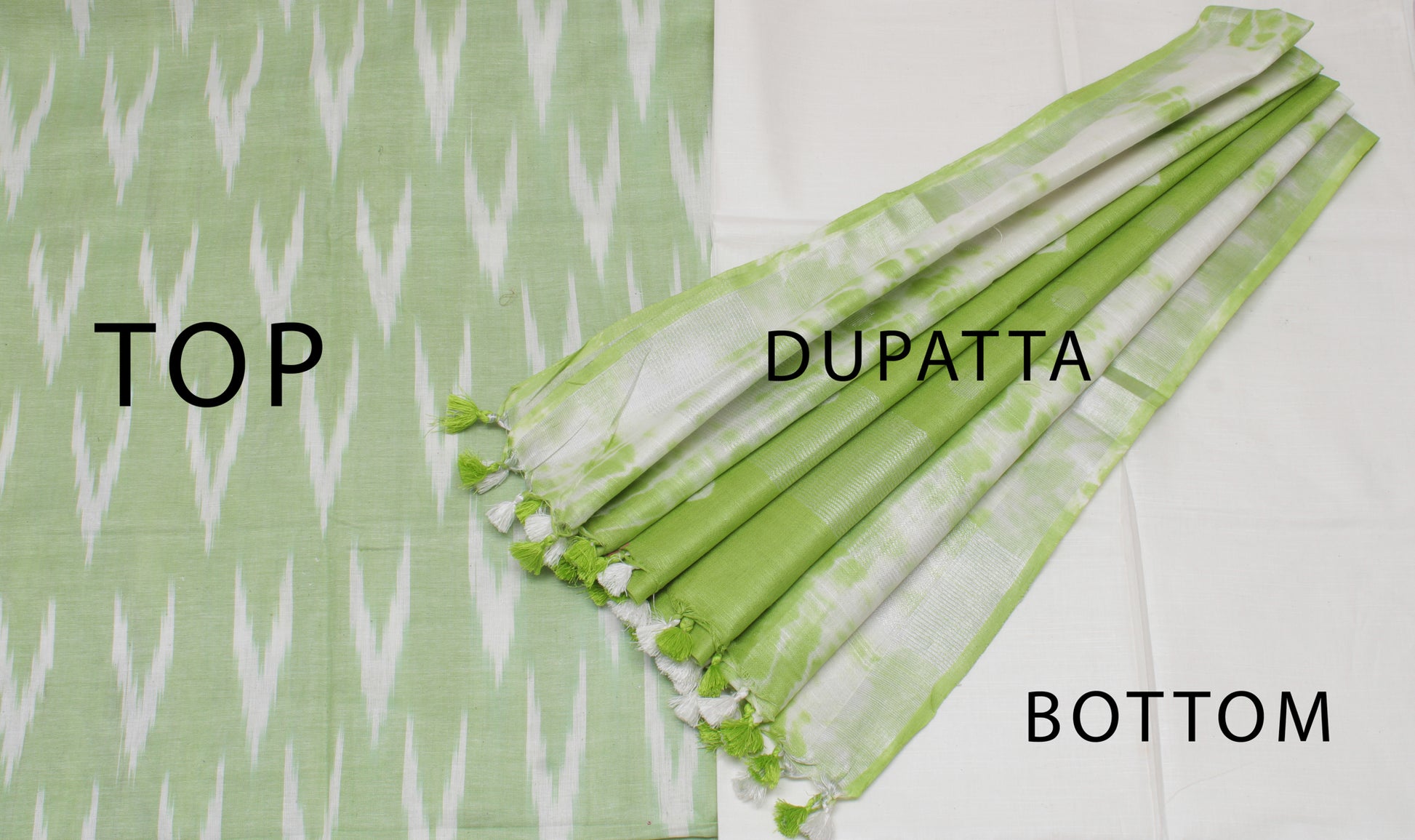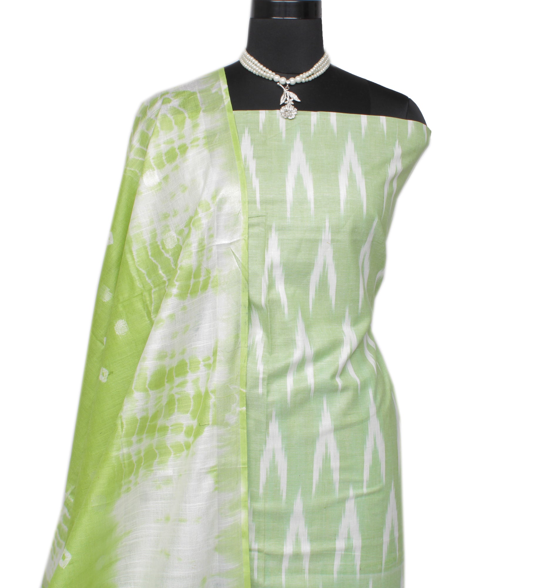 Pure Cotton Green Dress Material Woven Ikaat Bhagalpuri Salwar Kameez Dupatta
