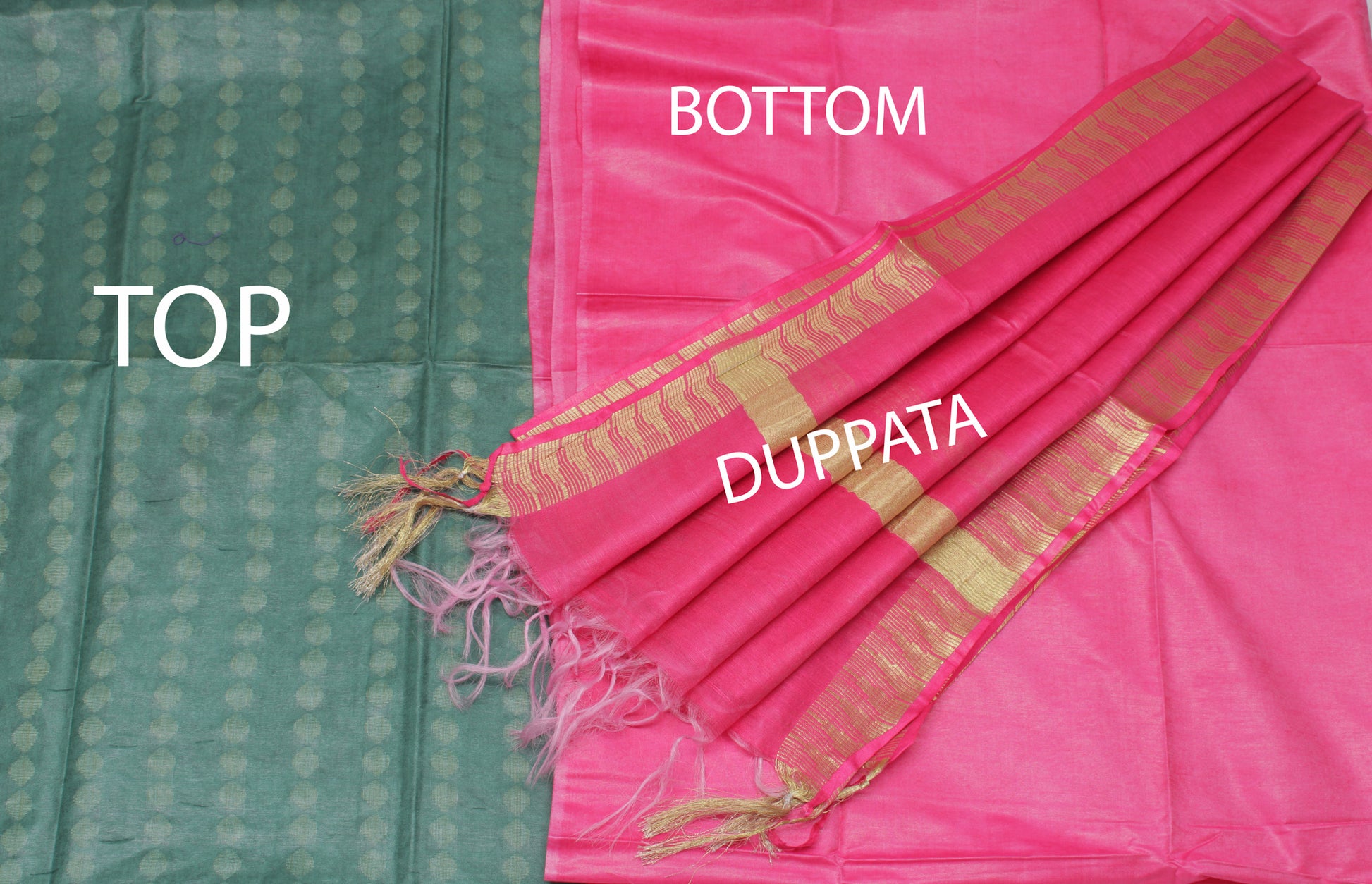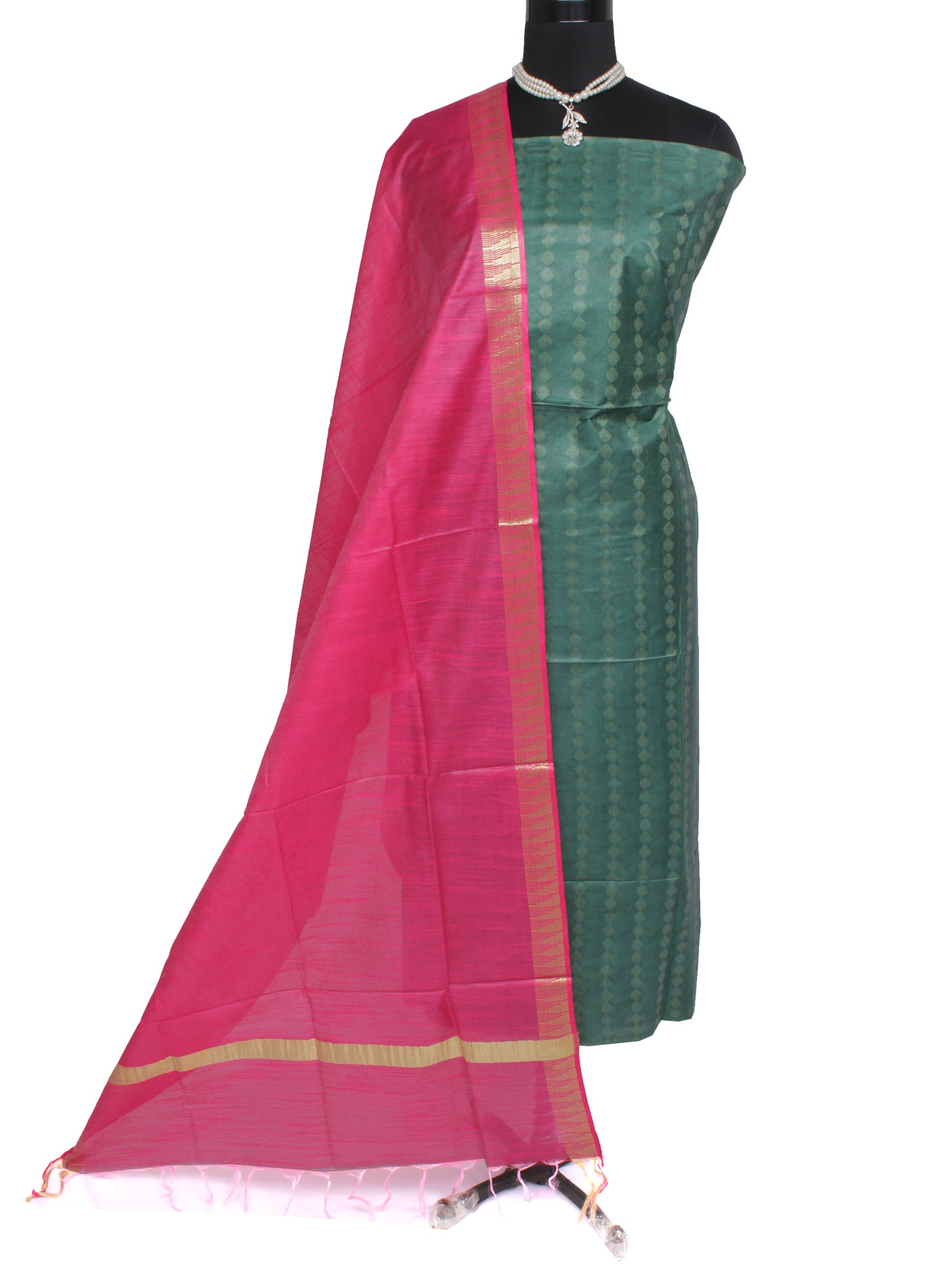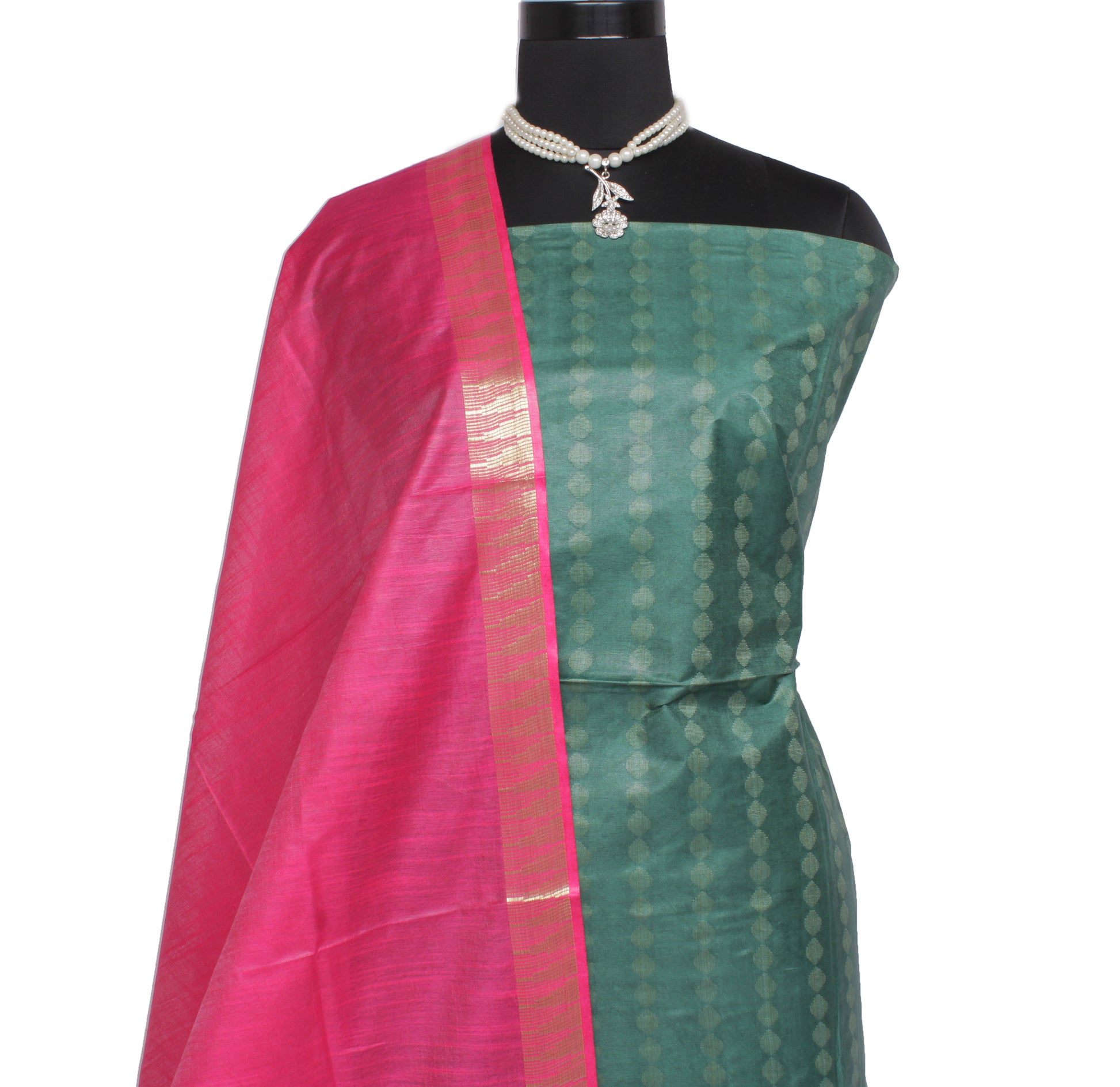 Pure Cotton Silk Teal Dress Material Woven Bhagalpuri Salwar Kameez Dupatta