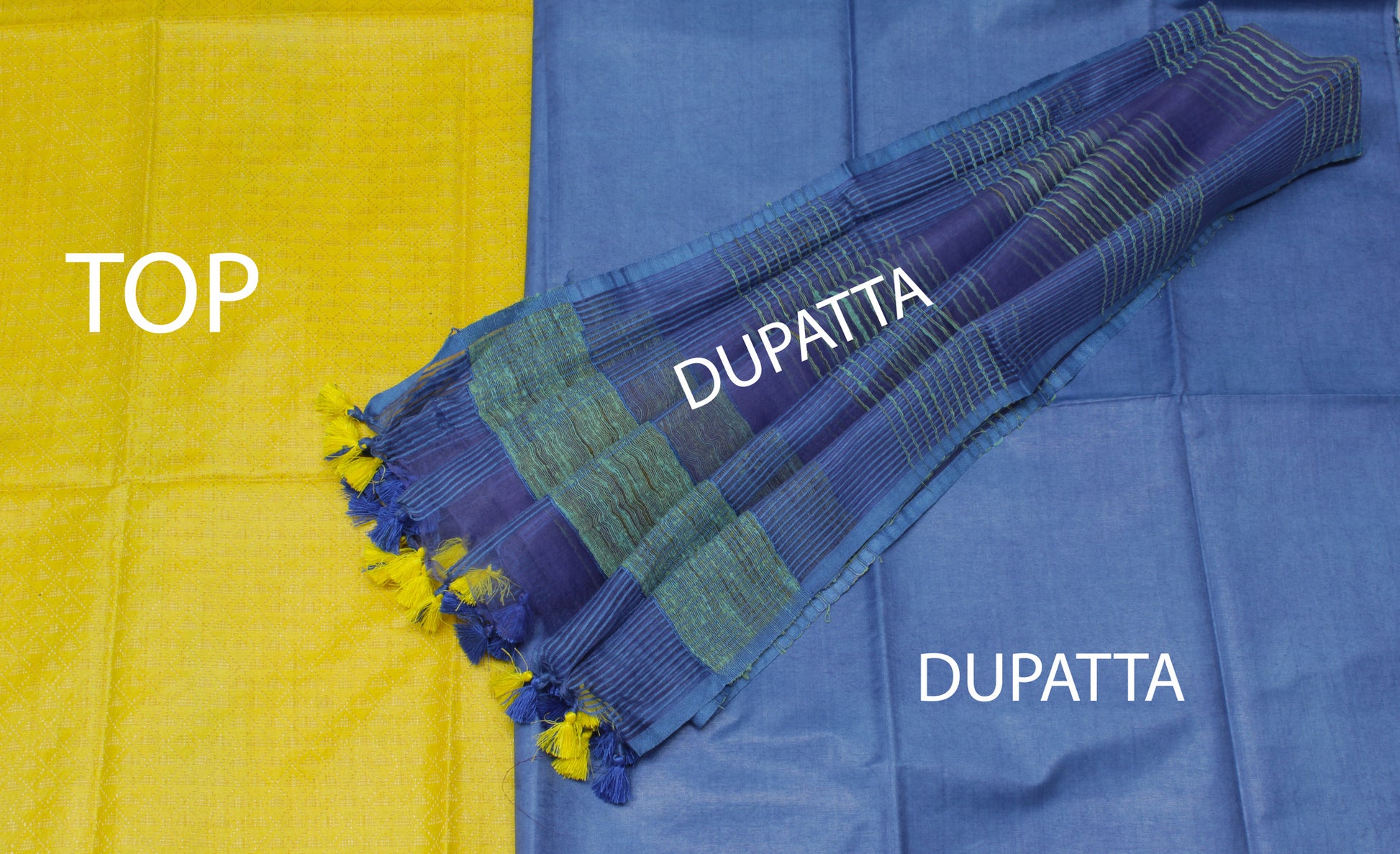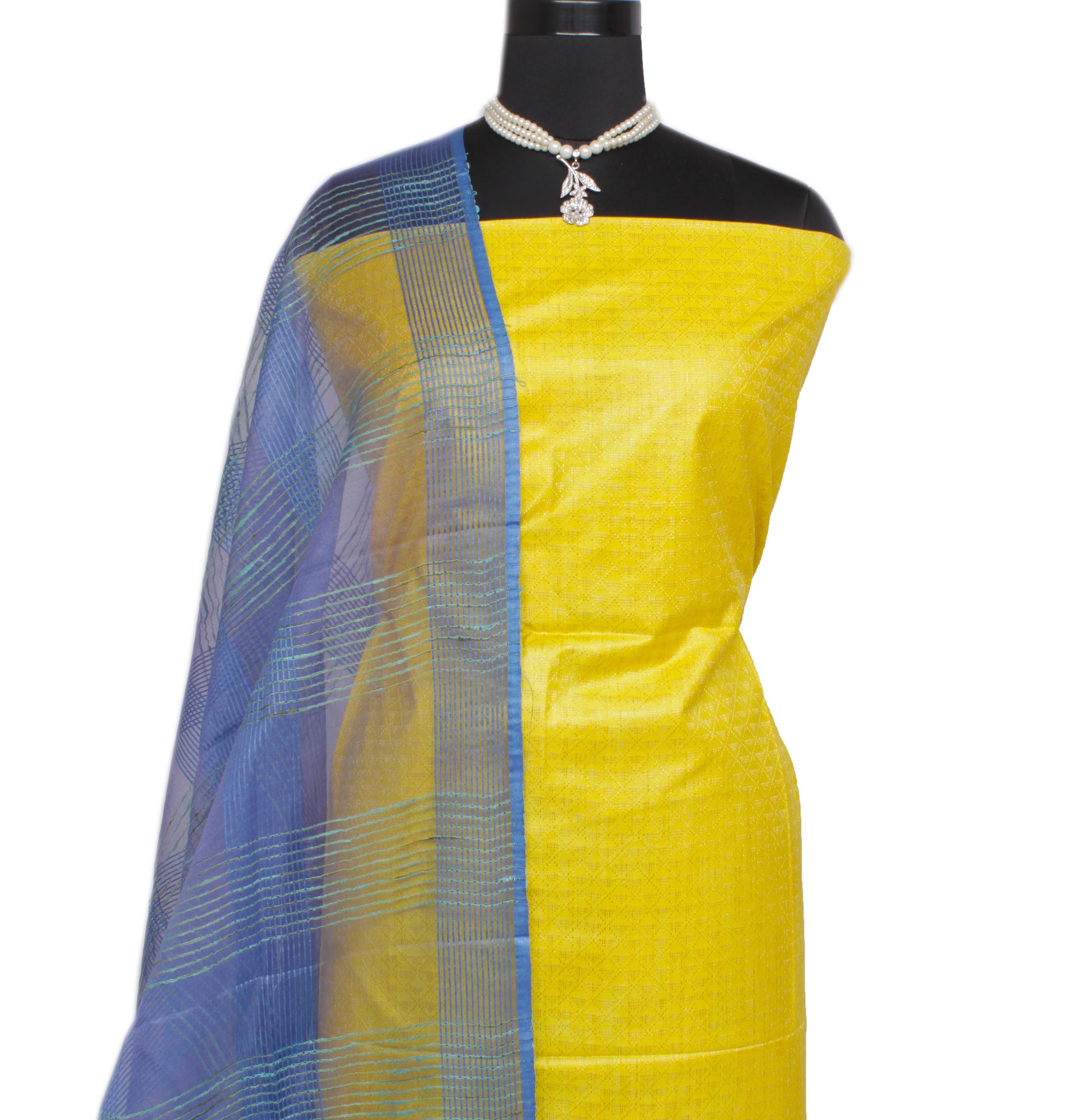 Pure Cotton Silk Yellow Dress Material Woven Bhagalpuri Salwar Kameez Dupatta