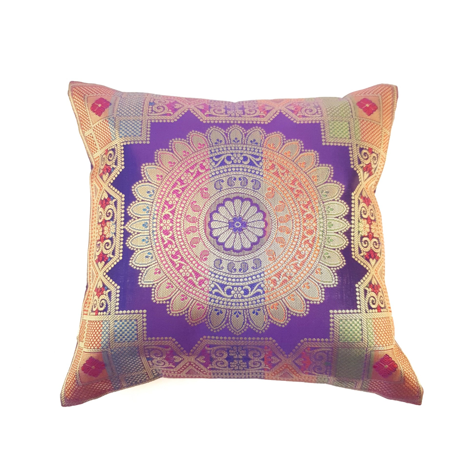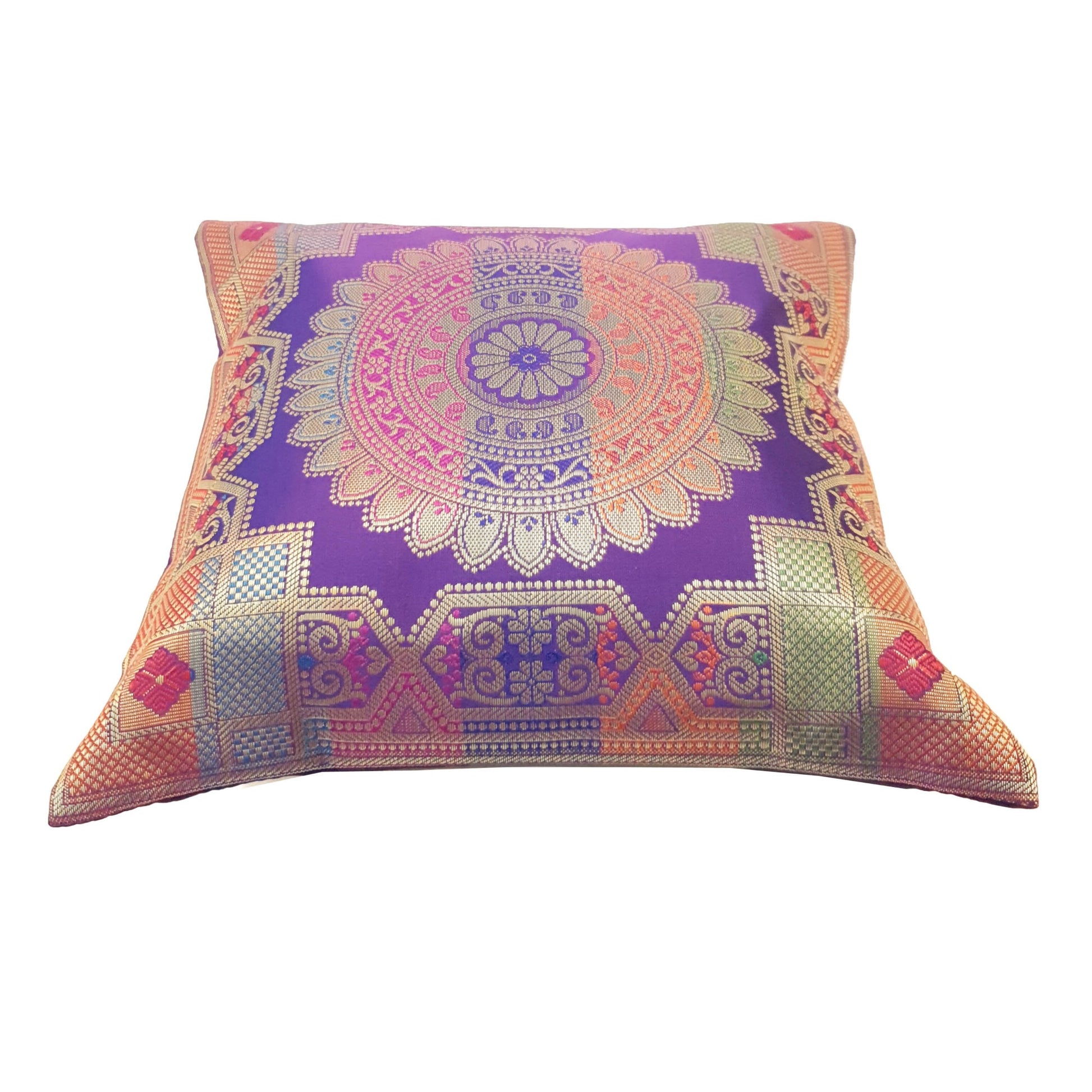 Purple 12x12 Inch Cushion Covers Indian Banarasi Mandala Woven Zari Brocade Silk