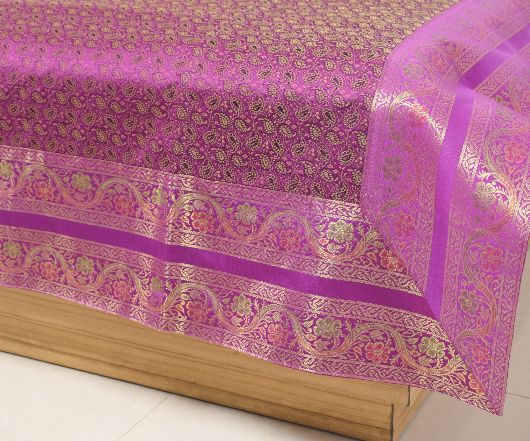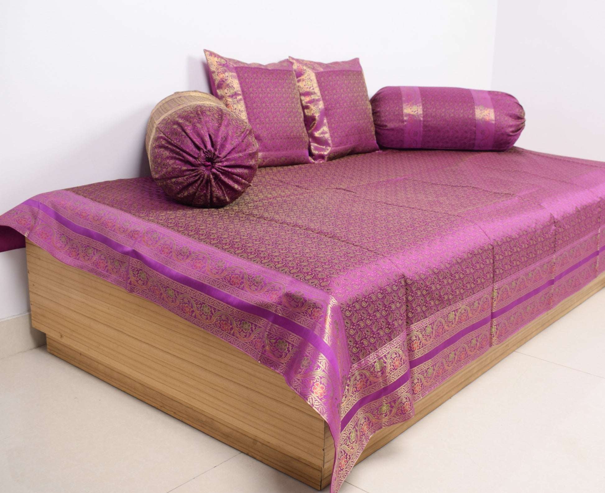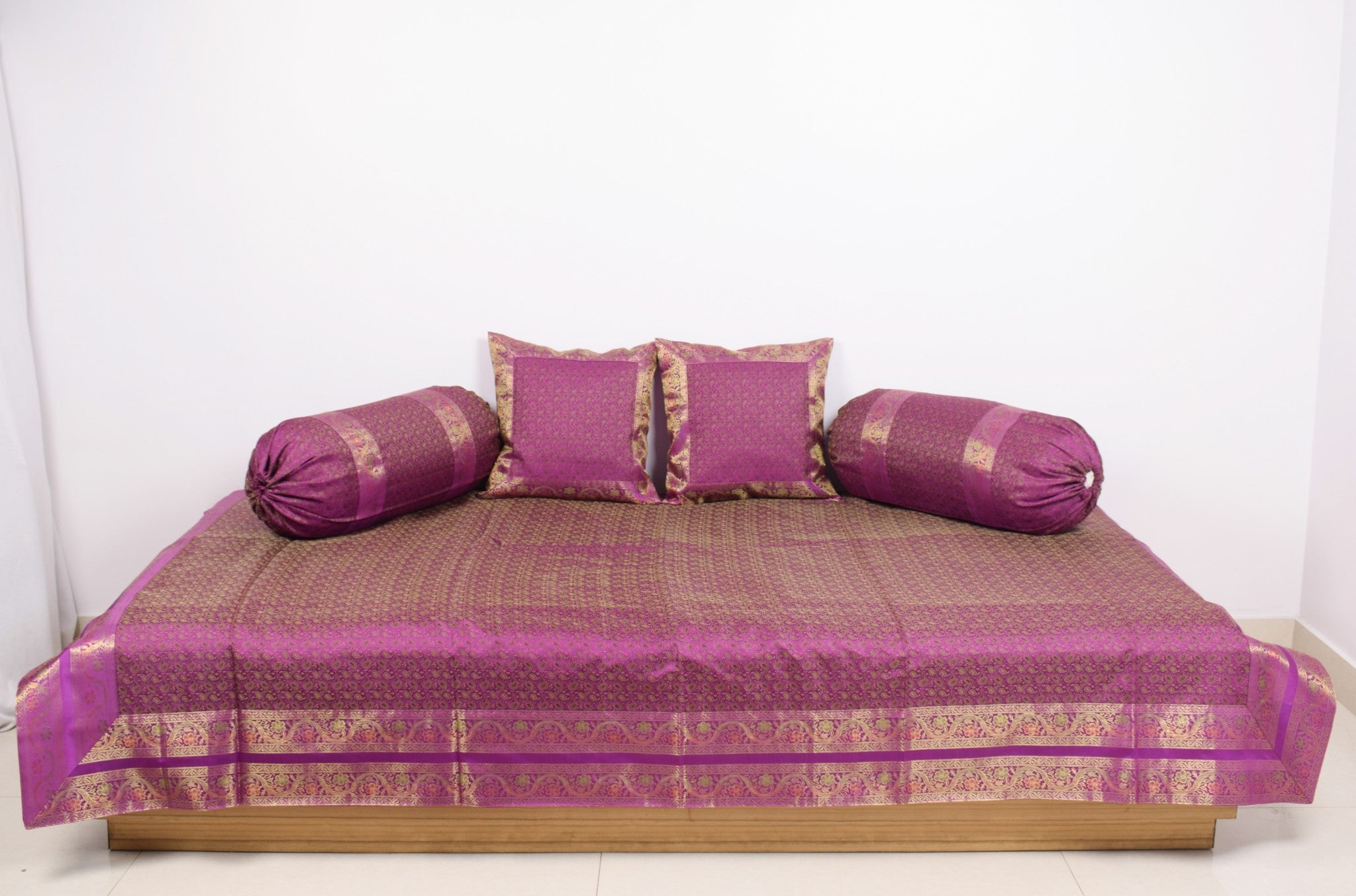 Purple Banarasi Diwan Set – Rich Silk Woven Zari Brocade Cushion & Bolster Cover