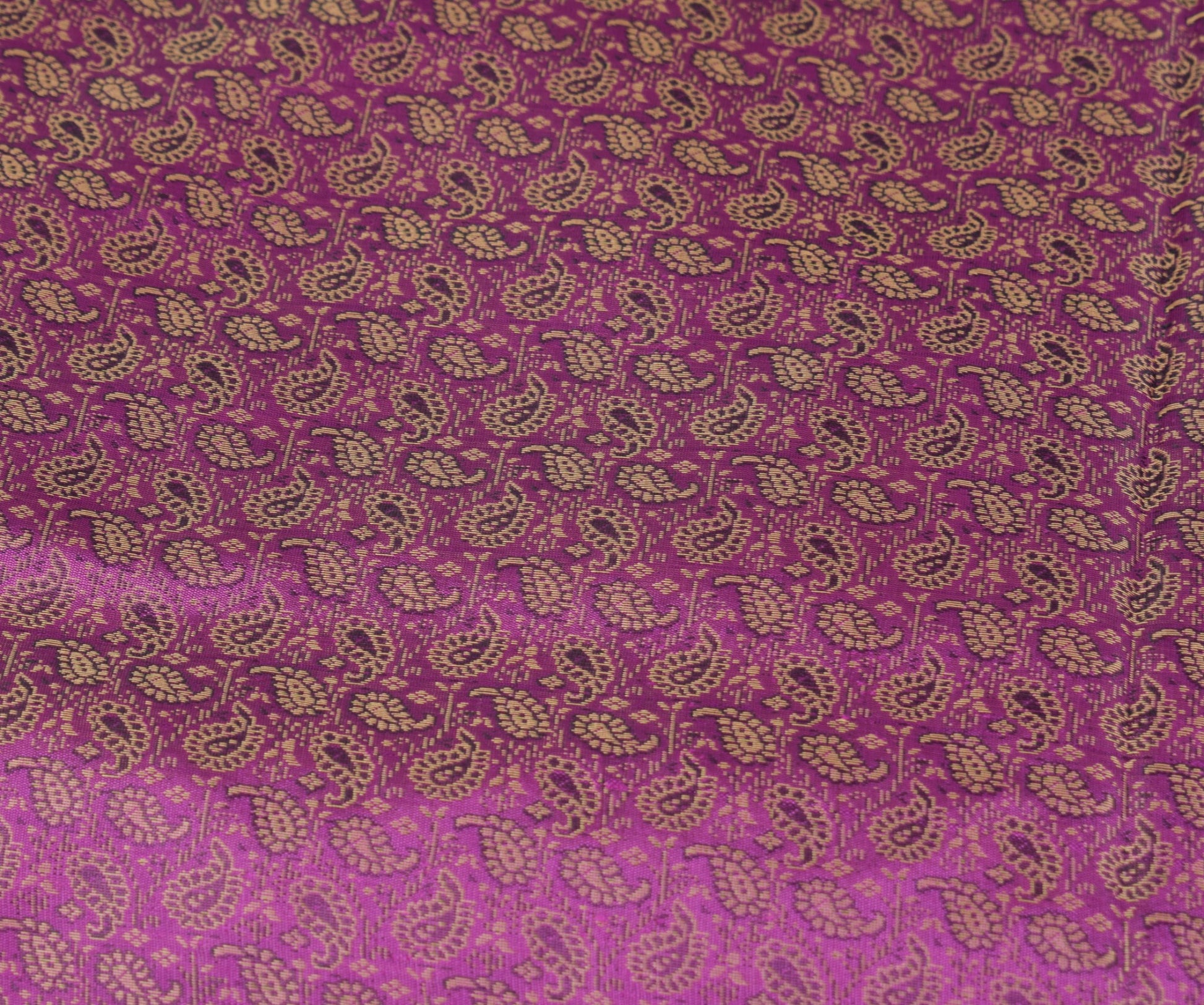 This is a Patch Work Diwan Set in Art Silk Fabric with all side Banarasi Silk Woven Golden Zari Brocade Border, this Diwan Set comes with Matching color Back lining fabric with Hidden Zip which allow you to insert the Blanket in Bed Cover and Pillow in the Cushion Cover & Bolster Cover . The base color of the cover is Purple Color Border & Art or Artificial Silk fabric.