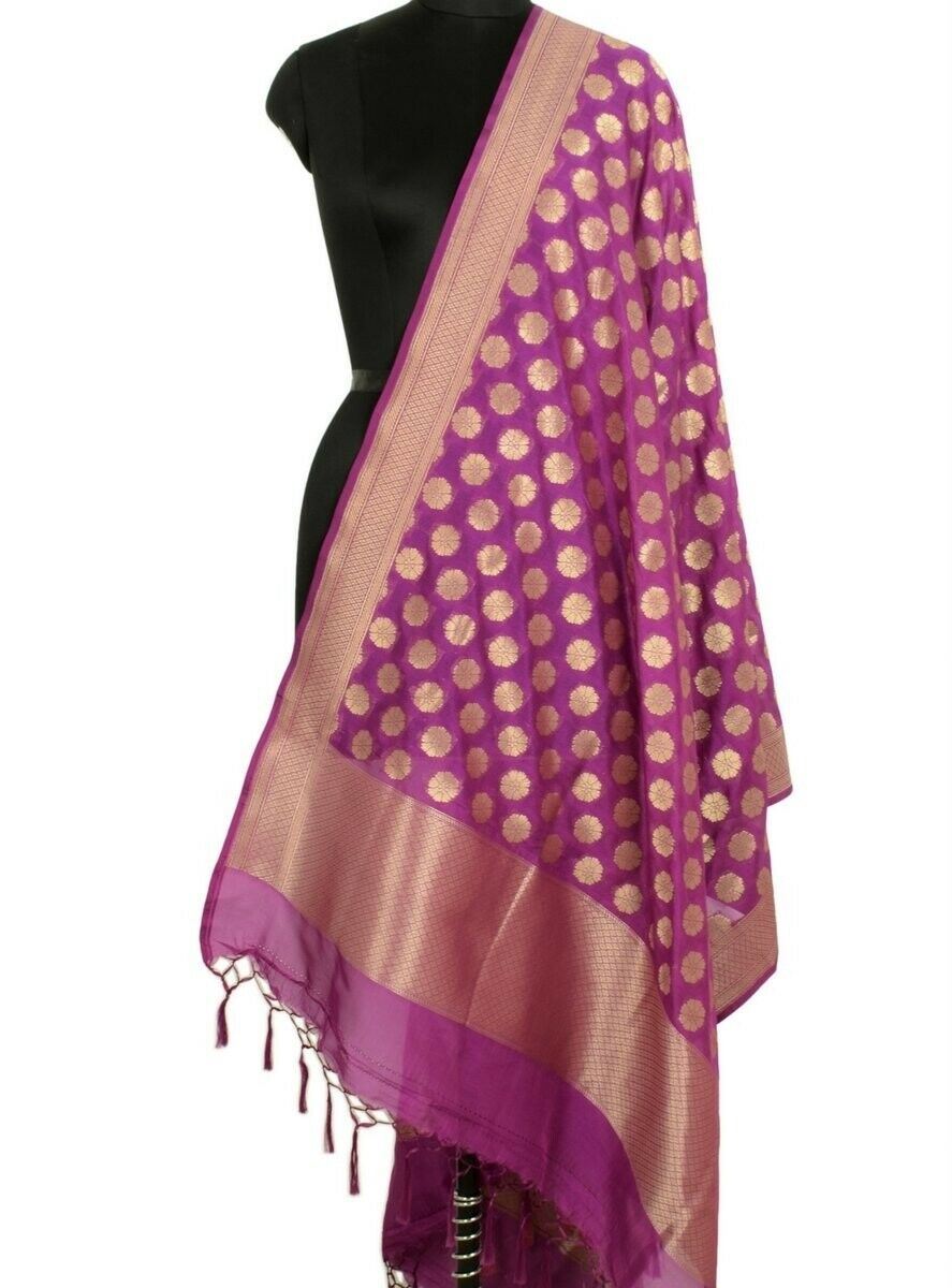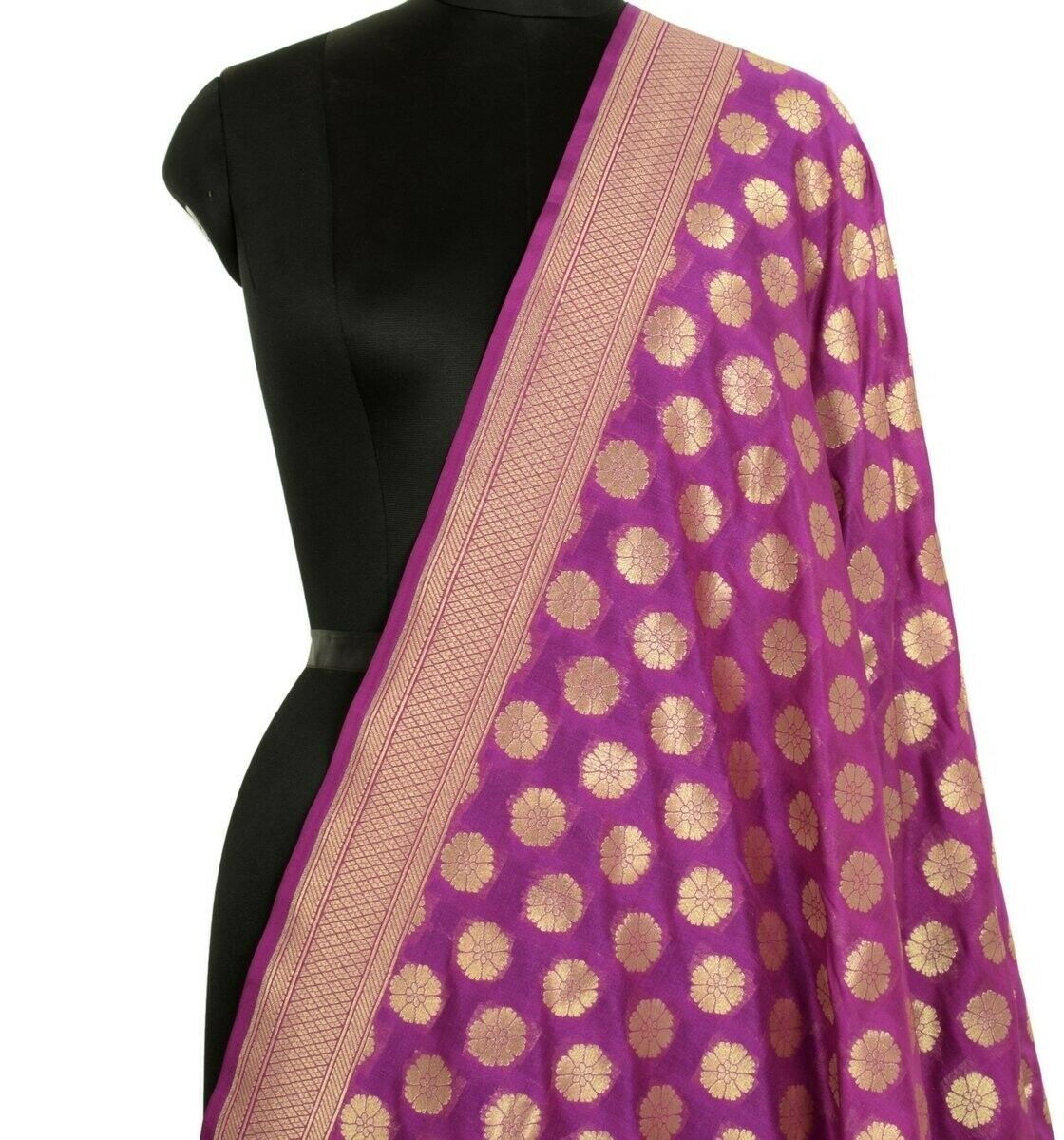 Purple Banarasi Silk Dupatta Woven Zari Brocade Indian Long Stole Wrap Shawl