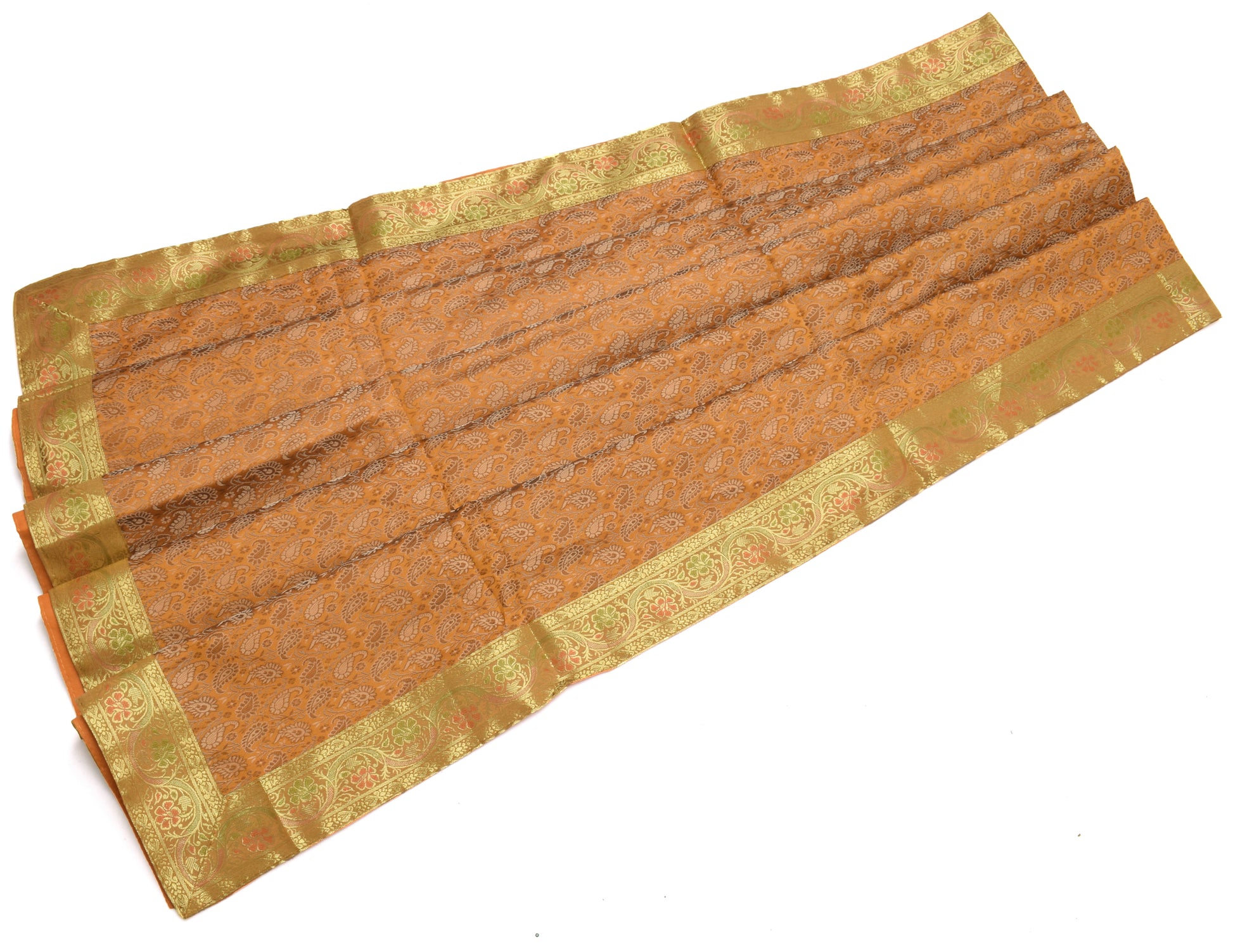 Indian Mustard Table Top Cover Woven Zari Border Art Silk Brocade 88"x47" Cloth