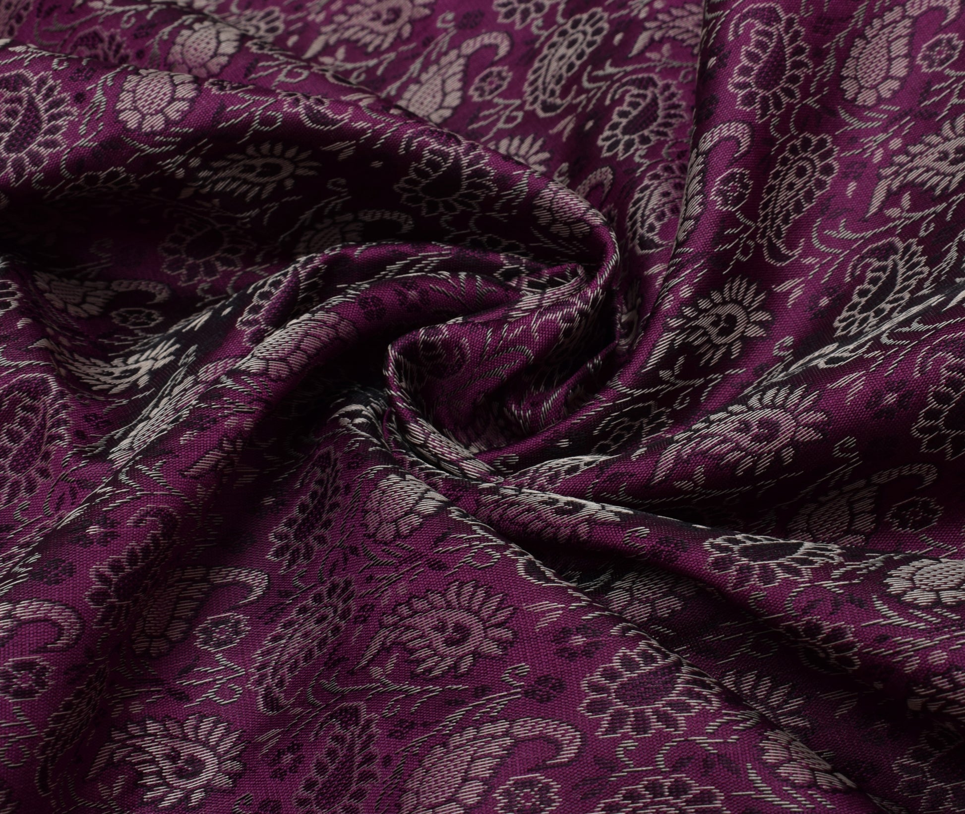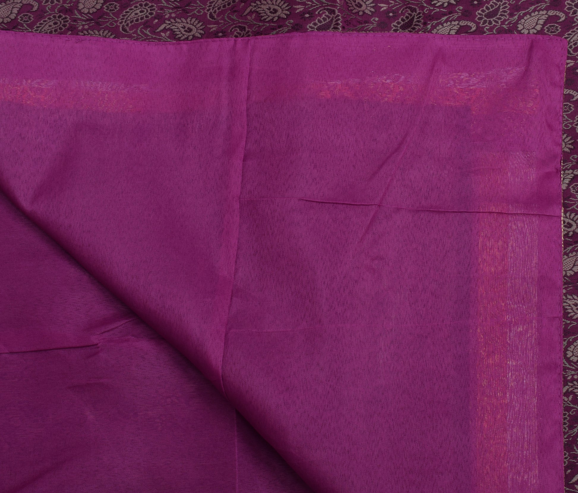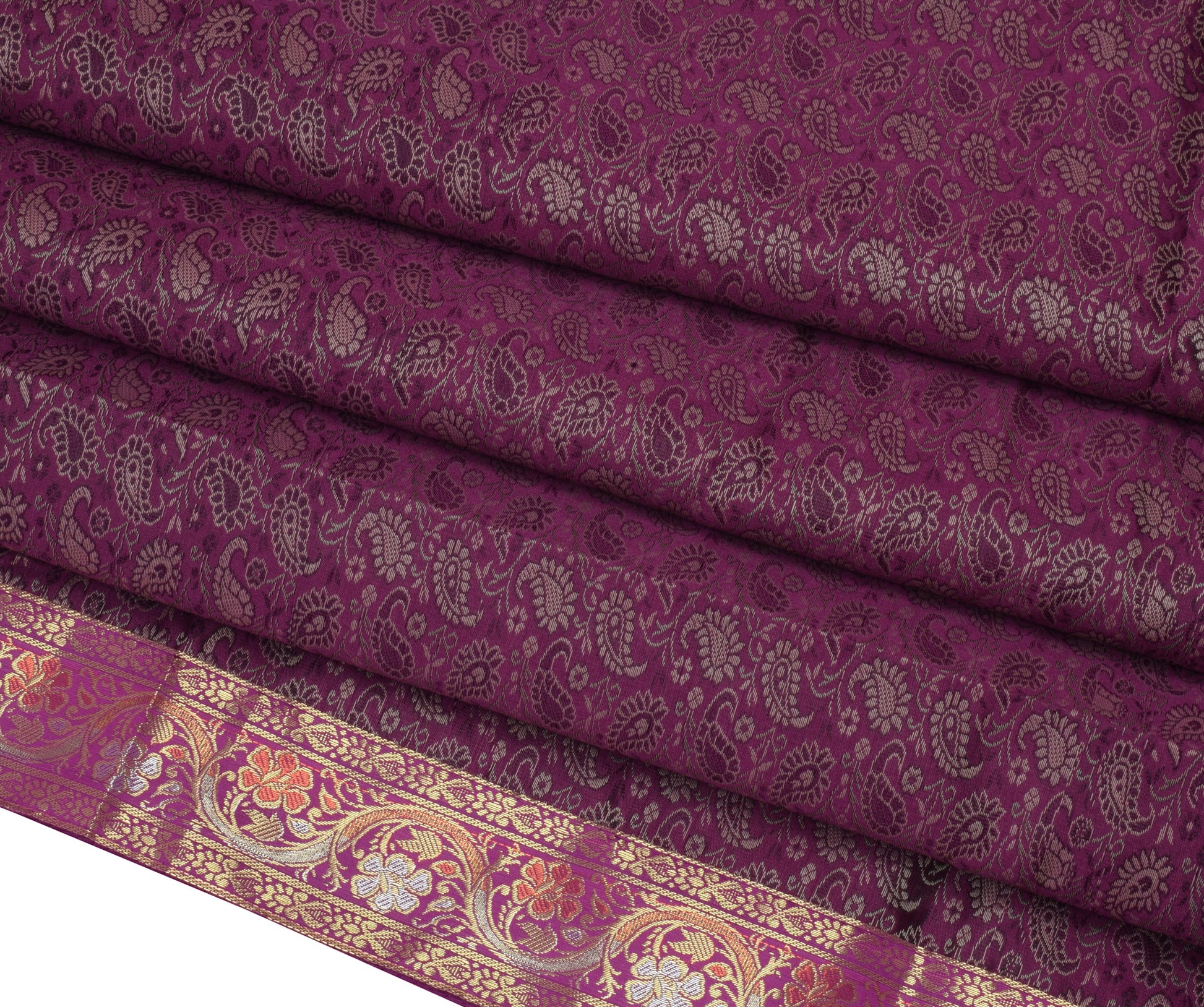 Indian Purple Table Top Cover Woven Zari Border Art Silk Brocade 88" x 47" Cloth
