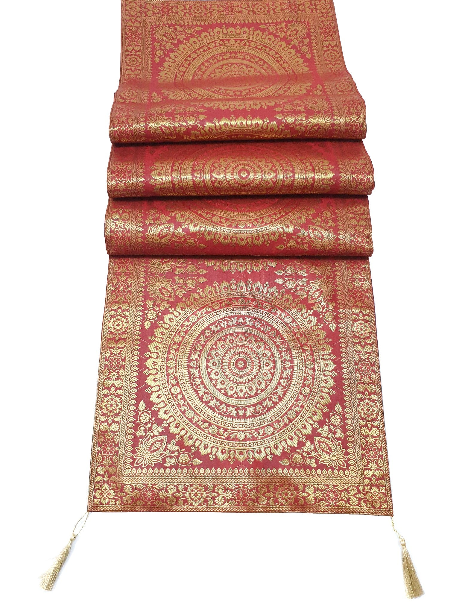 Red Banarasi Table Runner 72x16" Silk Brocade Mandala Dining Decor Cloth Gift
