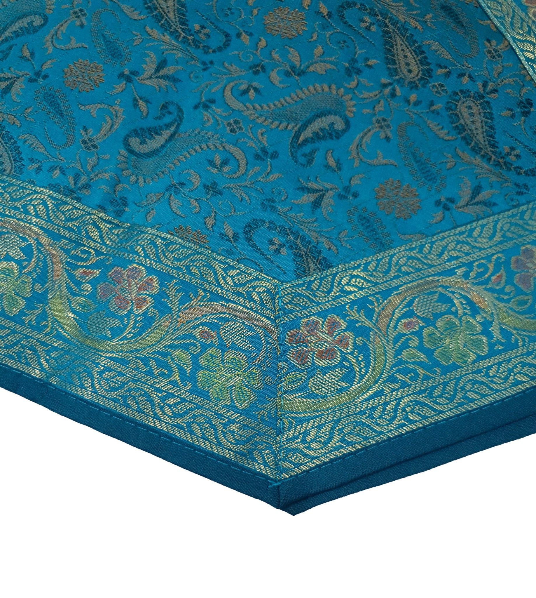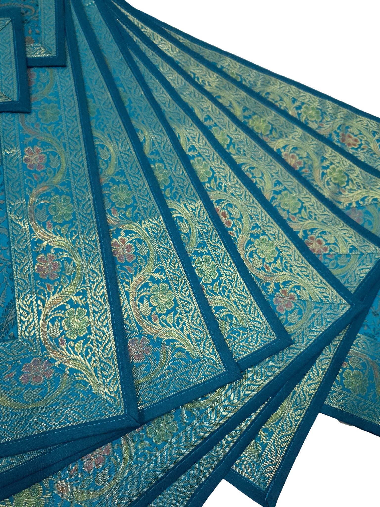 Set of 13 Teal Blue Banarasi Silk Table Runner – Paisley Brocade Decor Gift Item